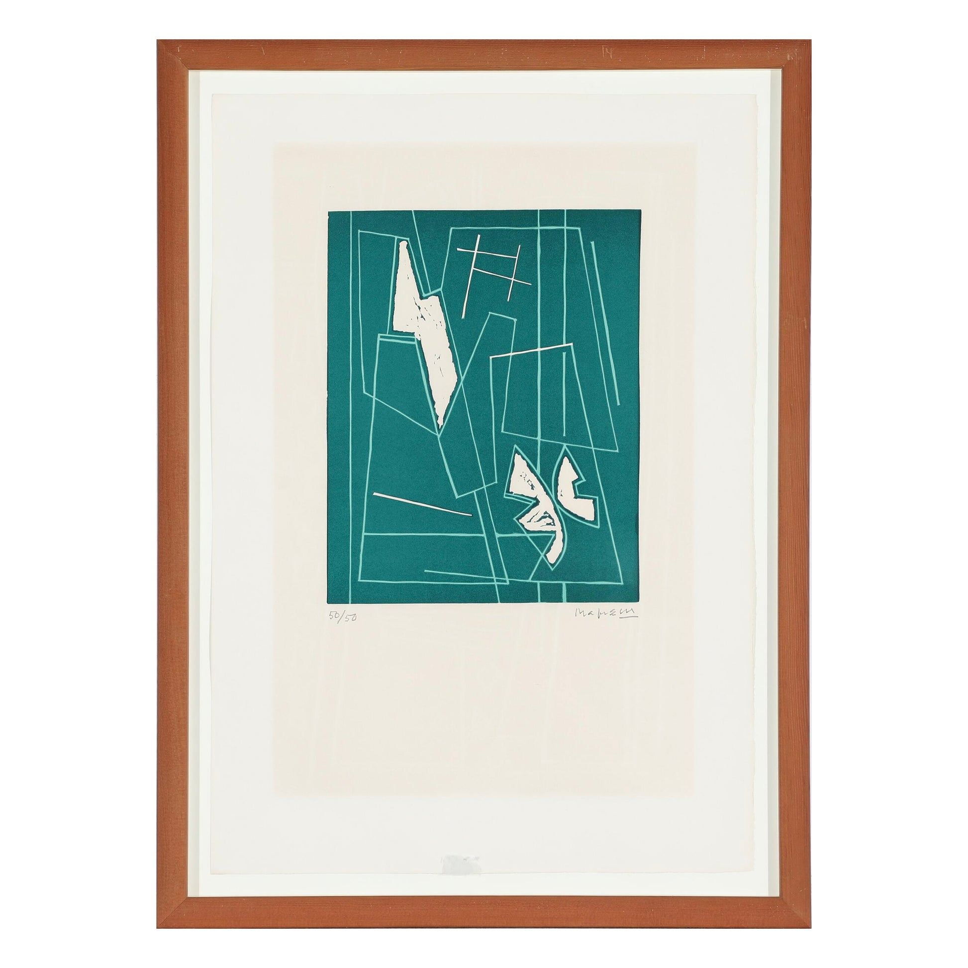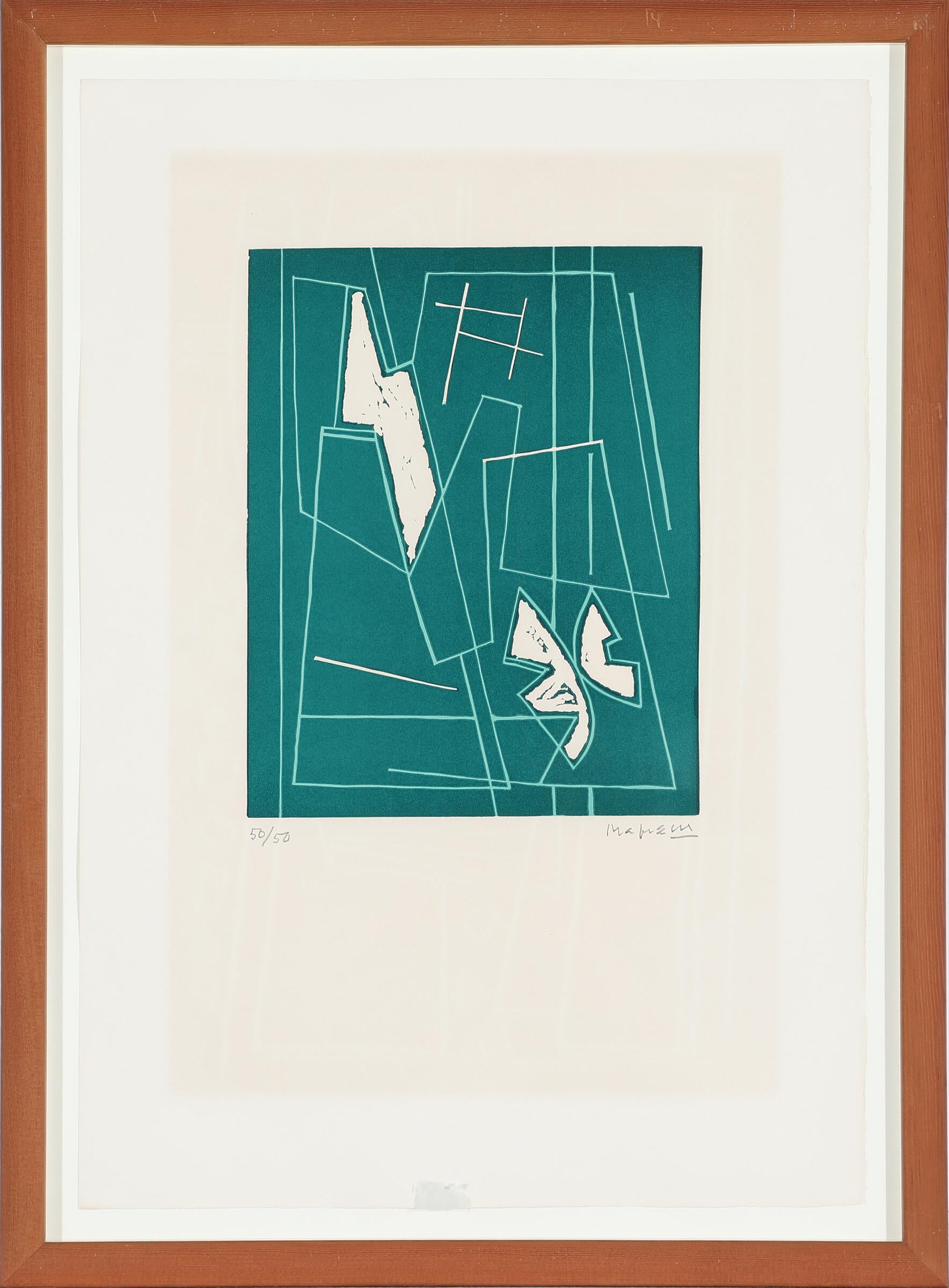 Alberto Magnelli (188-1971). Composition from "L'album de la Ferrage", 1970, linocut, 50/50. Sign. Magnelli. 65 x 45 ( ) cm. Oregon pine frame from Frese & Sønner. Faded.