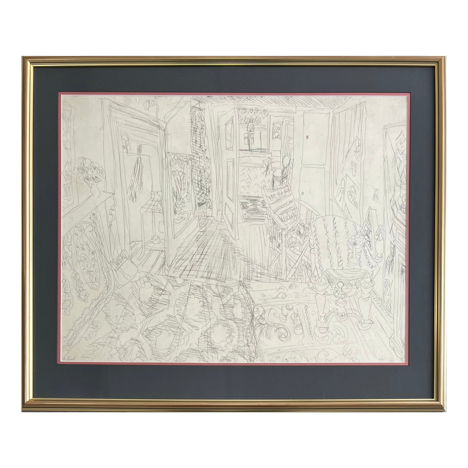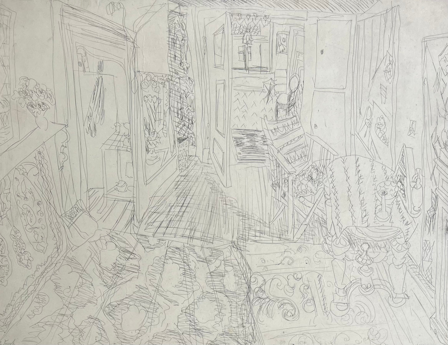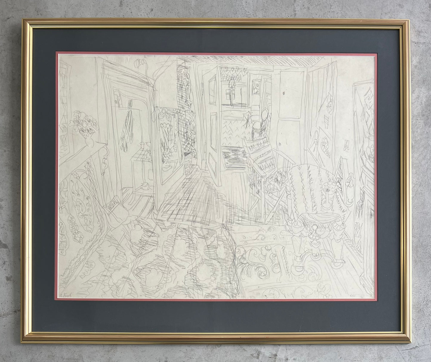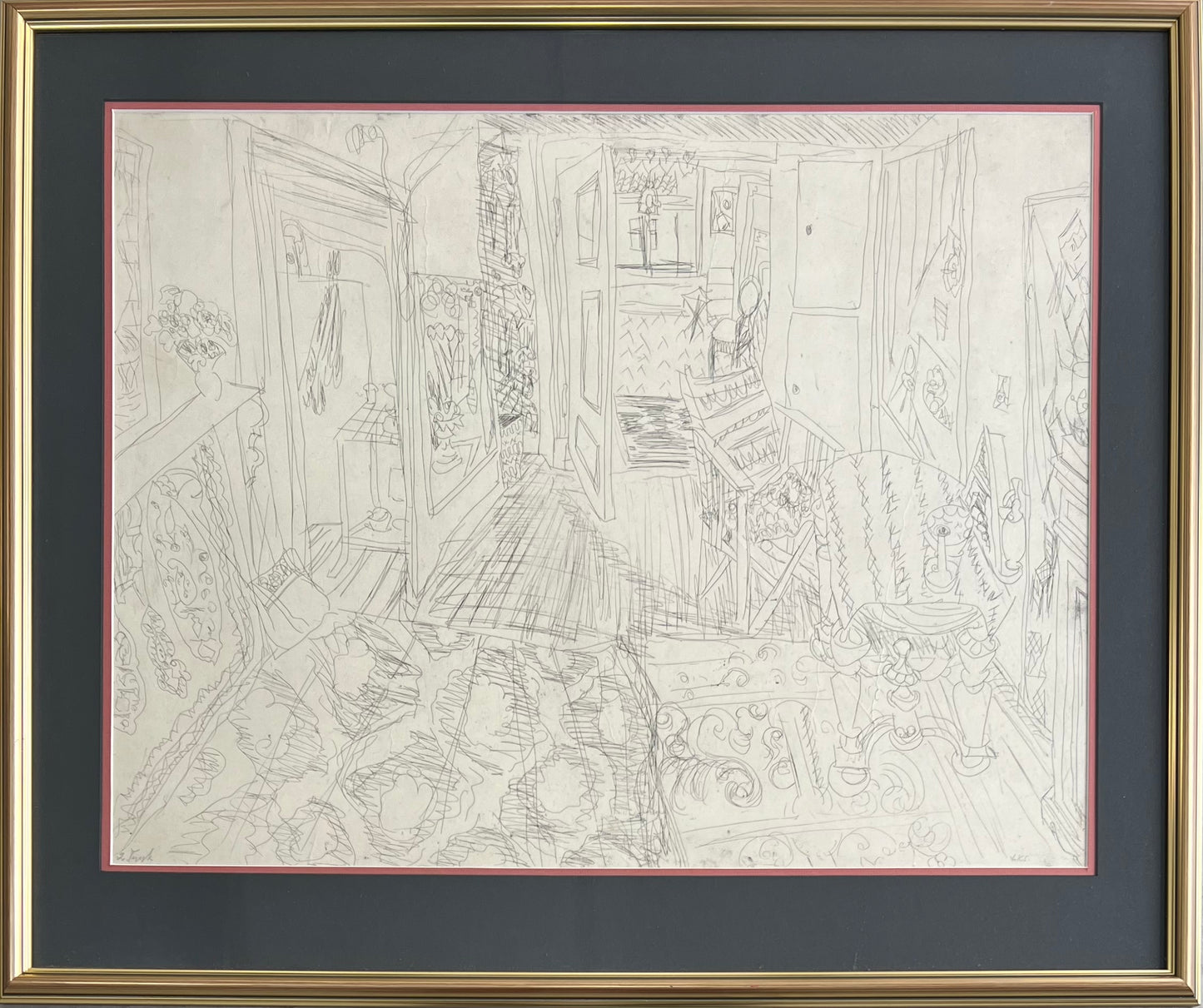 Anna Klindt Sørensen (1899-1985). Interior, etching, ed. 2, signed. 50 x 64 (67 x 78) cm.
