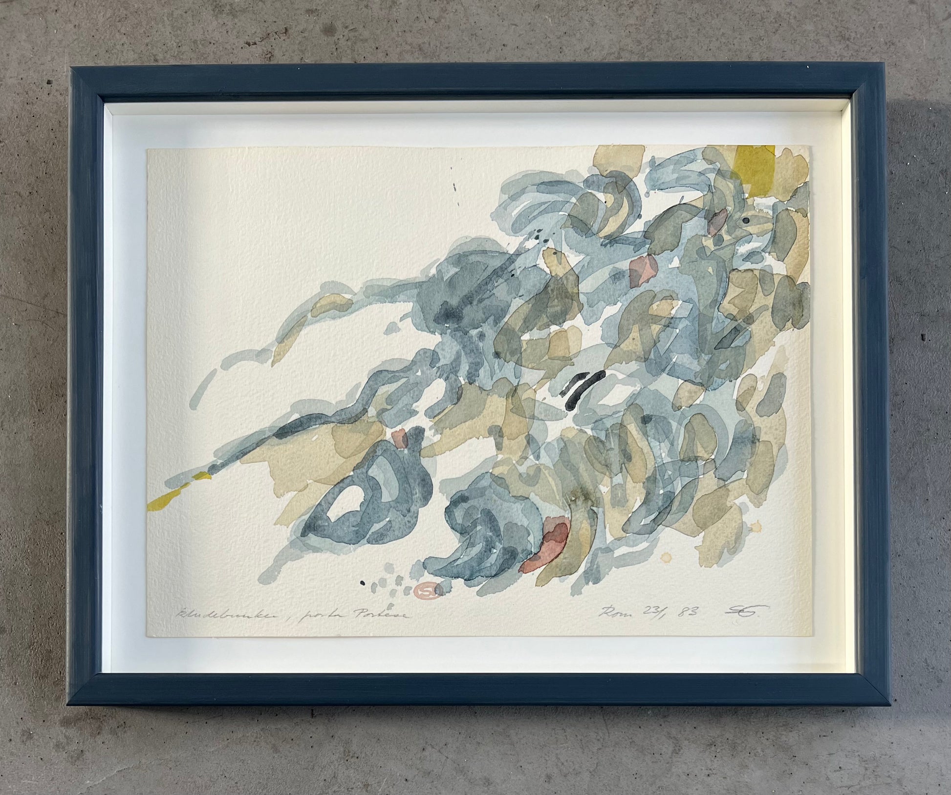 Bent Stubbe Teglbjærg (1926-2004). "Kludbunker, Porta Portese, Rome", watercolor on "Fabriano" paper, signed and dated 1983. 22.7 x 31 (29 x 37) cm. Handpainted wood frame, uv glass - acid free mounting.