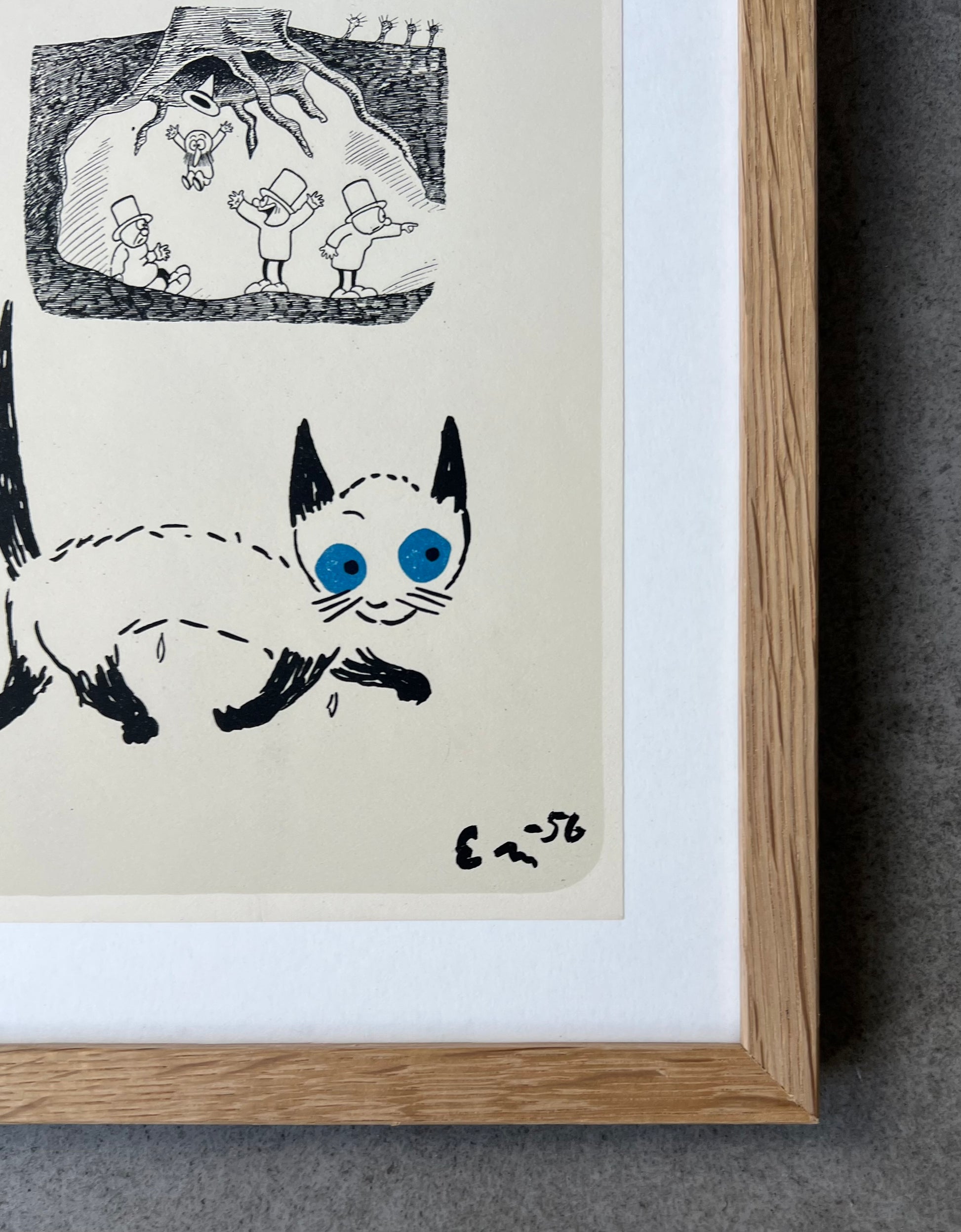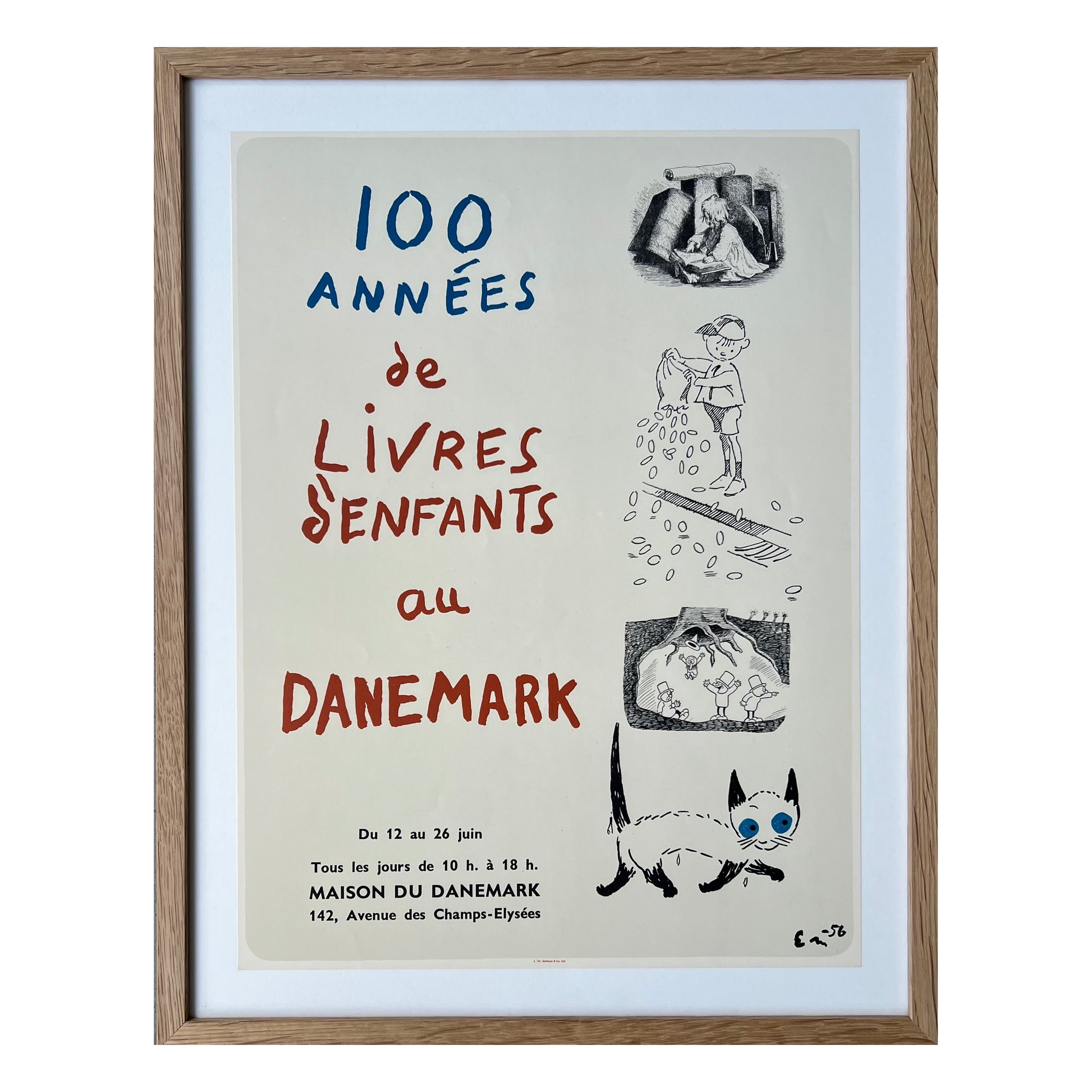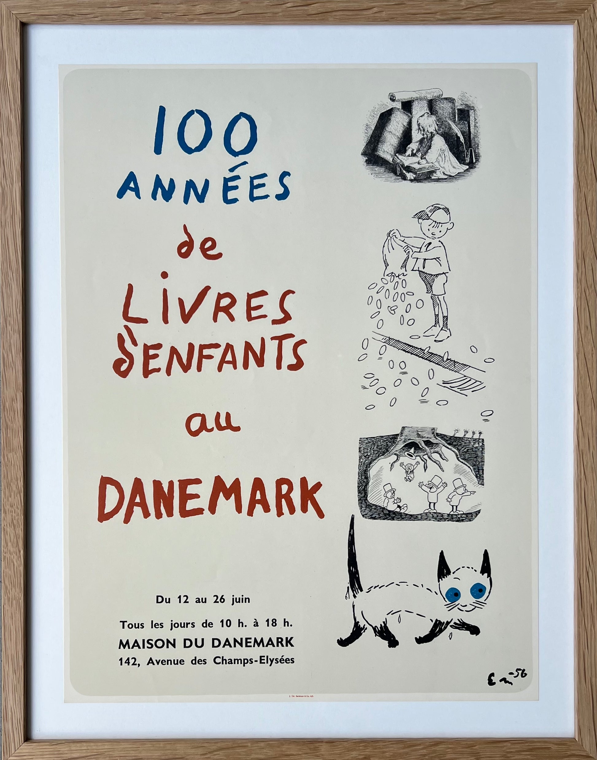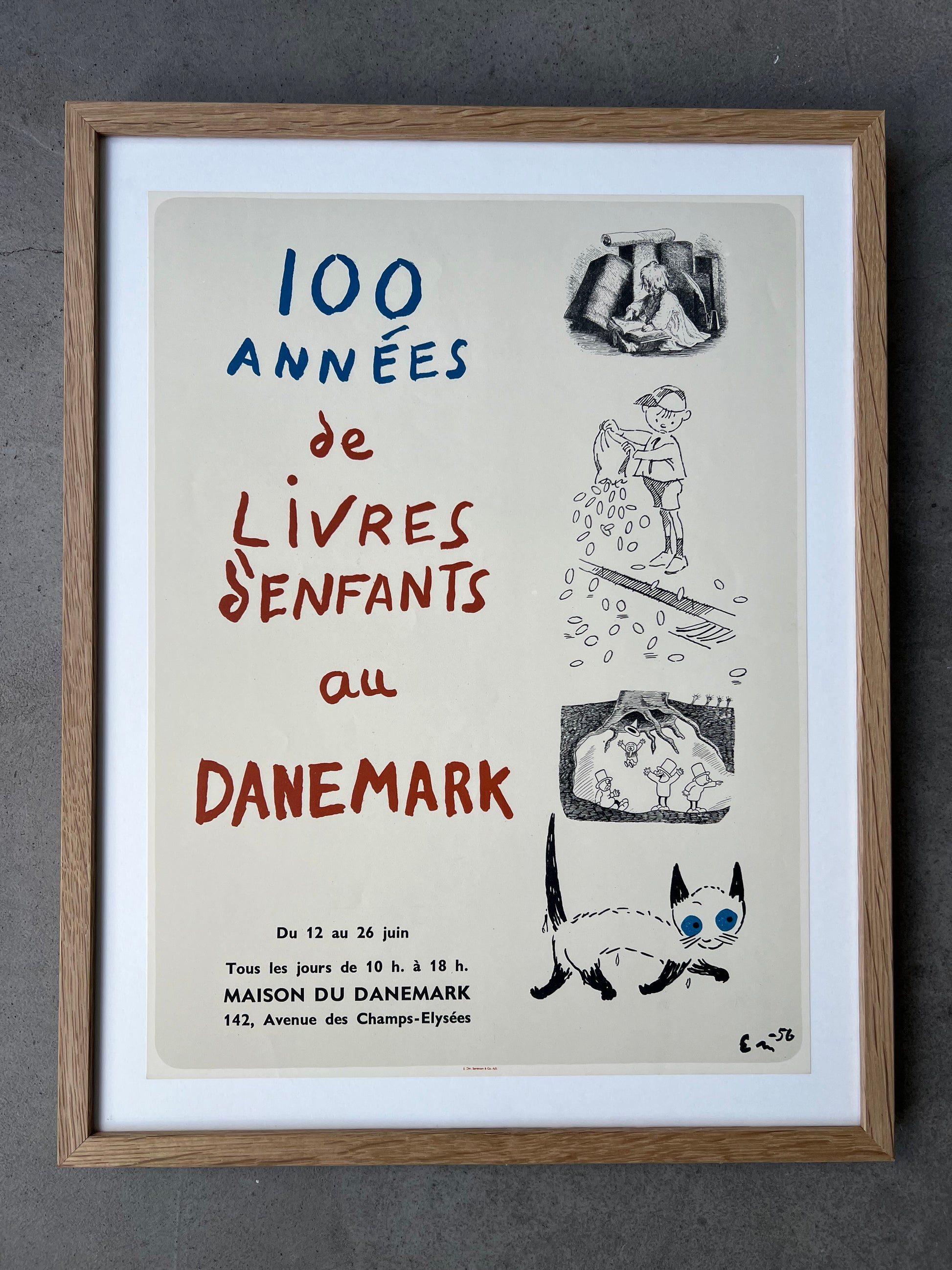 Egon Mathiesen (1907-1976). “100 années de livres d’enfants au Danemark”, exhibition poster, lithograph, printed by J. Chr. Sørensen in 1956. 39 x 29 (46 x 36) cm. New frame, museum glass.