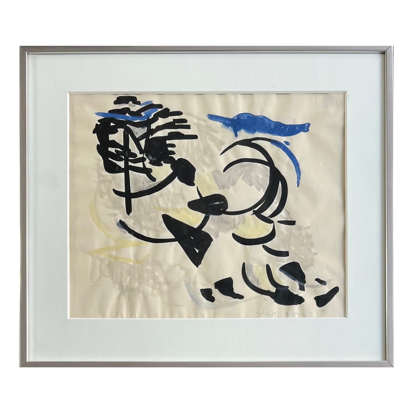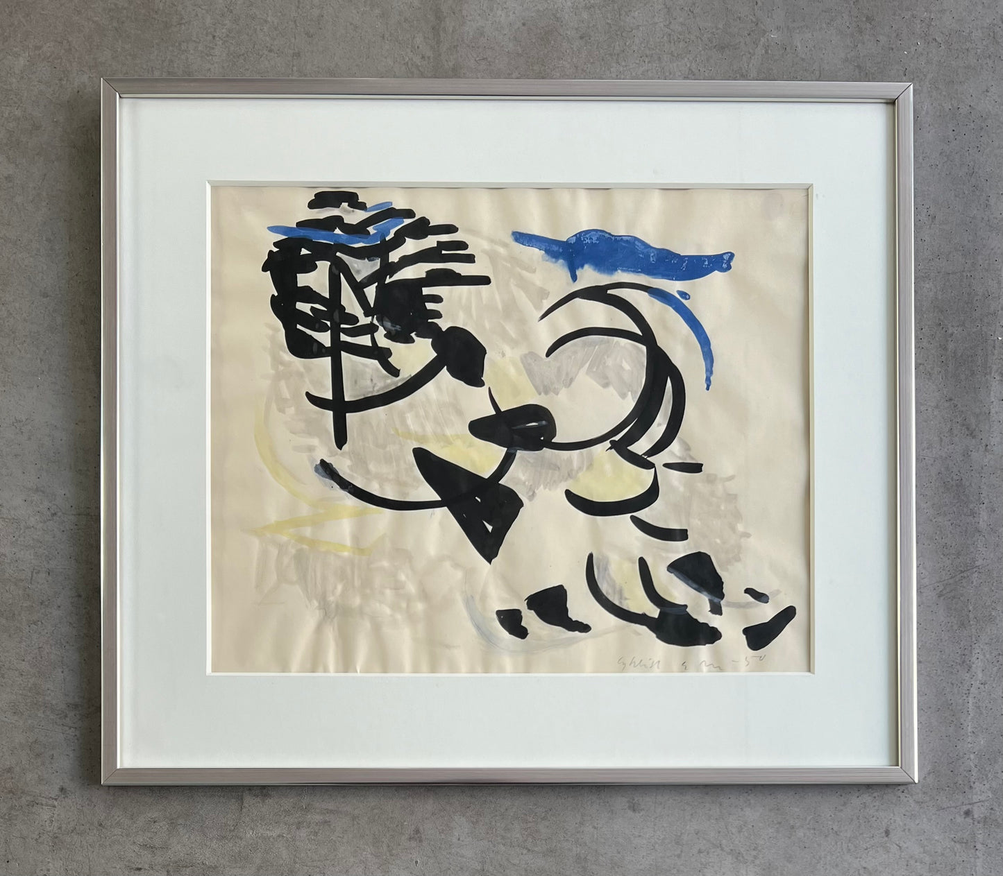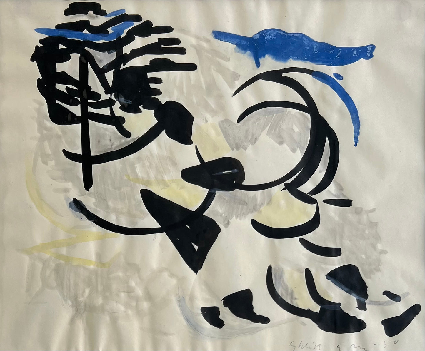 Egon Mathiesen (1907-1976). “Cyklist”, gouache on paper, signed and dated 1950. 36 x 44 (52 x 60) cm. Tear in upper right corner.