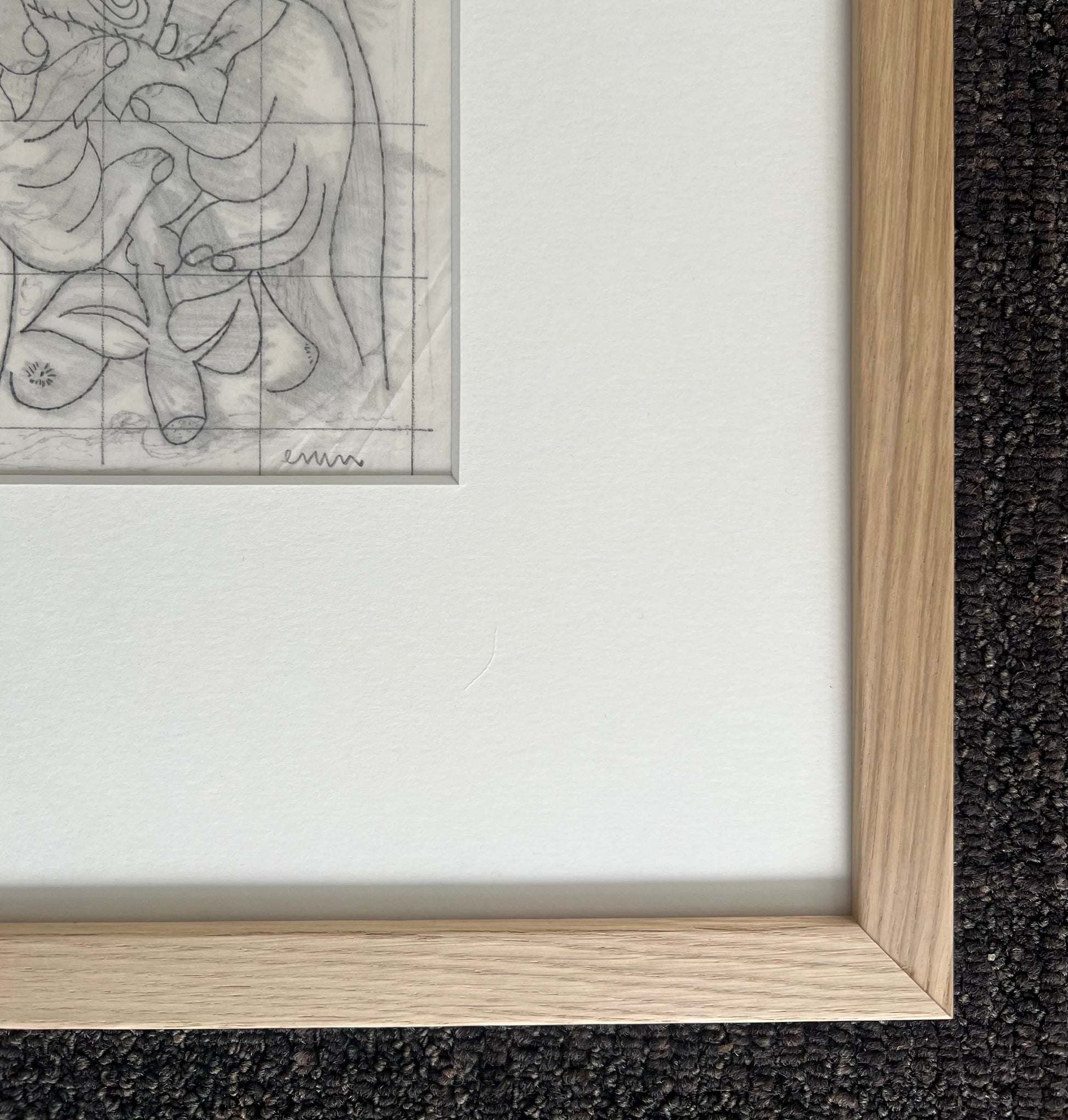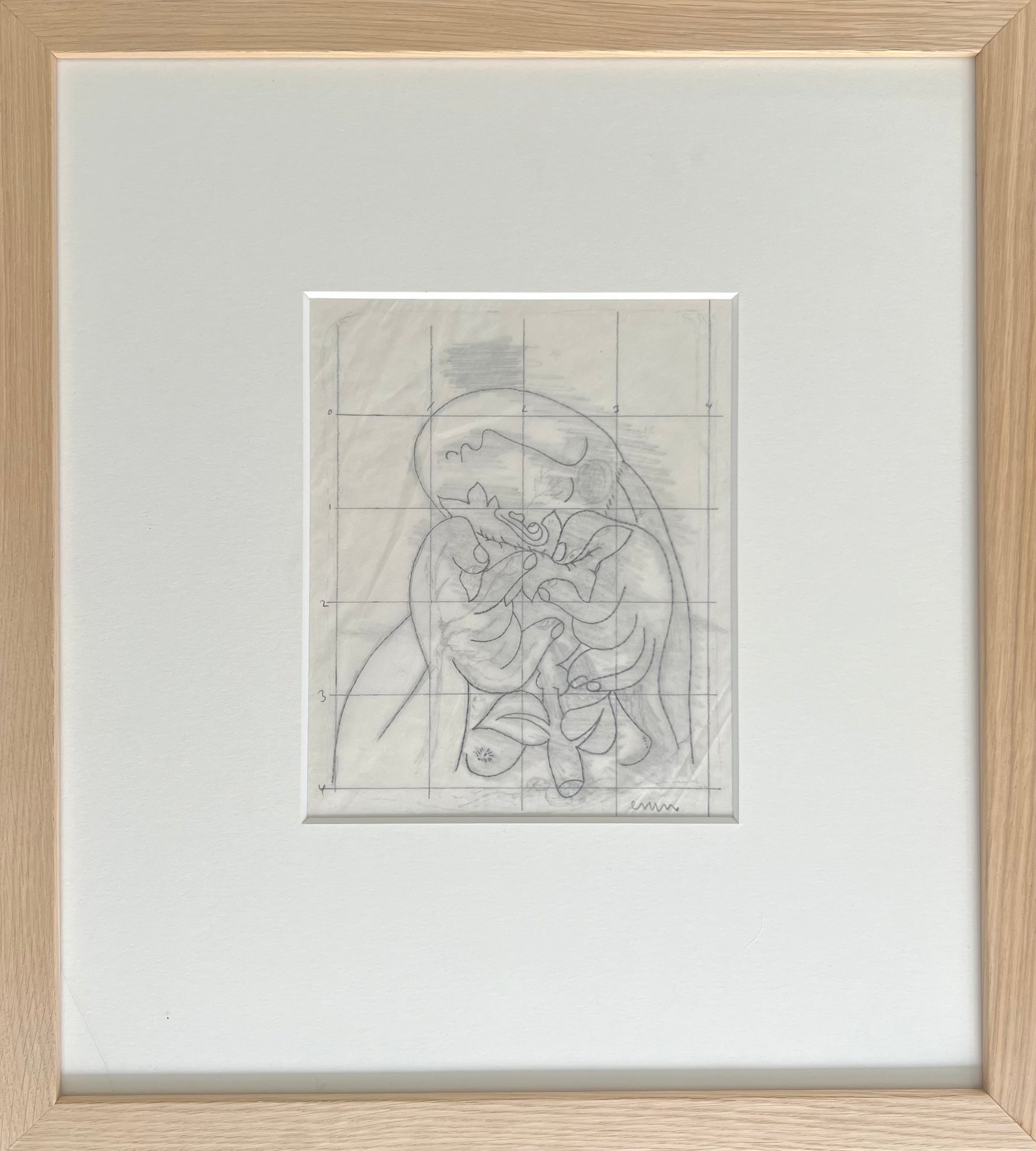 Egon Møller-Nielsen (1915-1959). Sketch for “Den blinda flicka”, Pencil on paper, ca. 1945, signed. 18 x 15 (39 x 35) cm. Oak frame, museum glass.