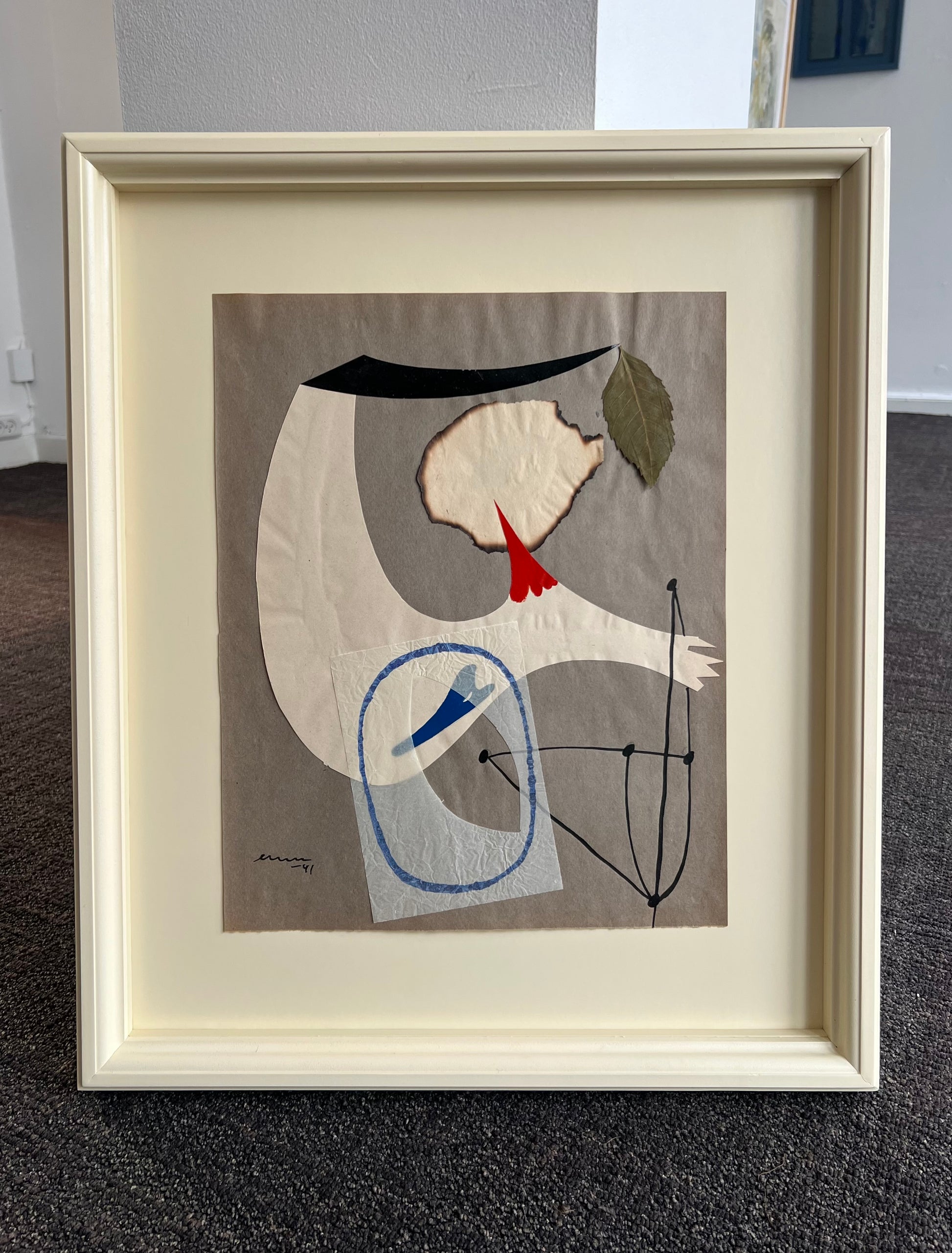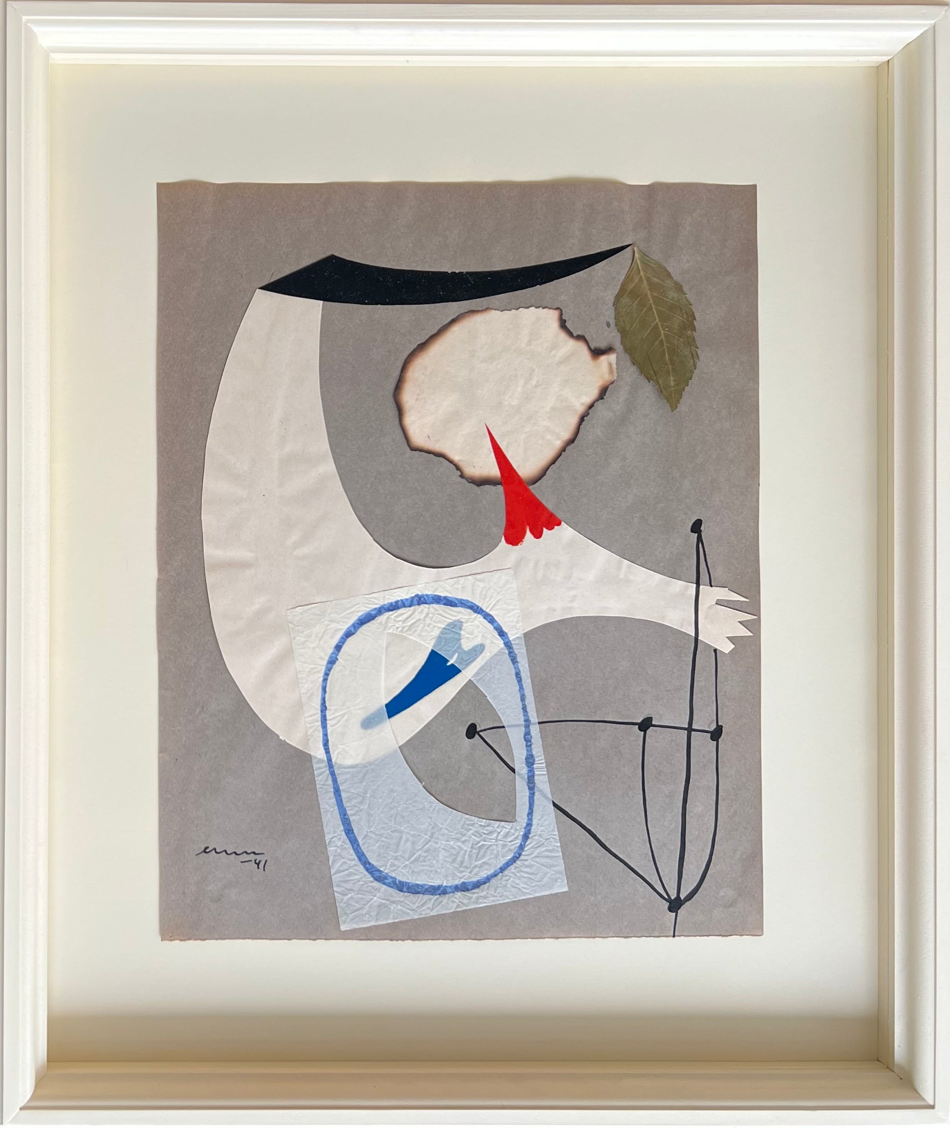 Egon Møller-Nielsen (1915-1959). “Vindflöjel”, collage on paper, edition 150. Signed and dated EMN 1941. 41 x 32 (56 x 46) cm. New handpainted wood frame, museumglass.