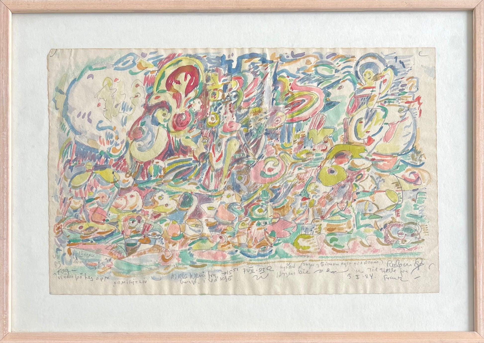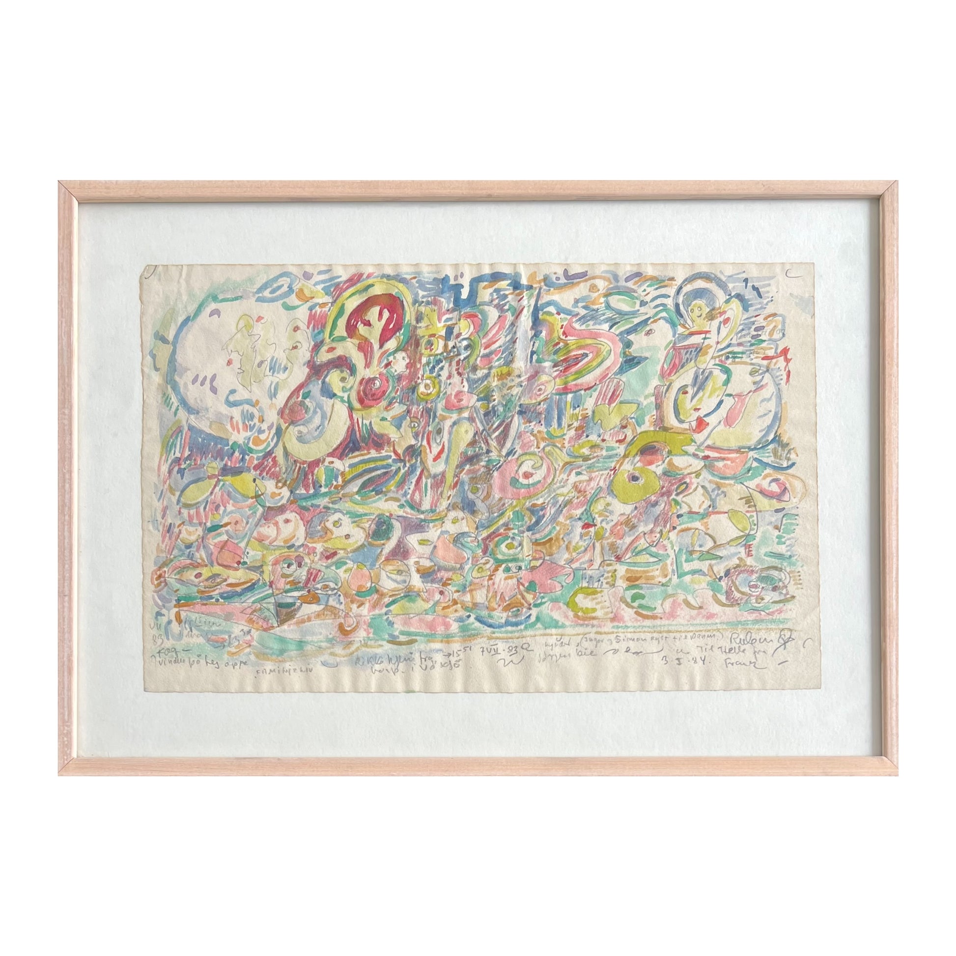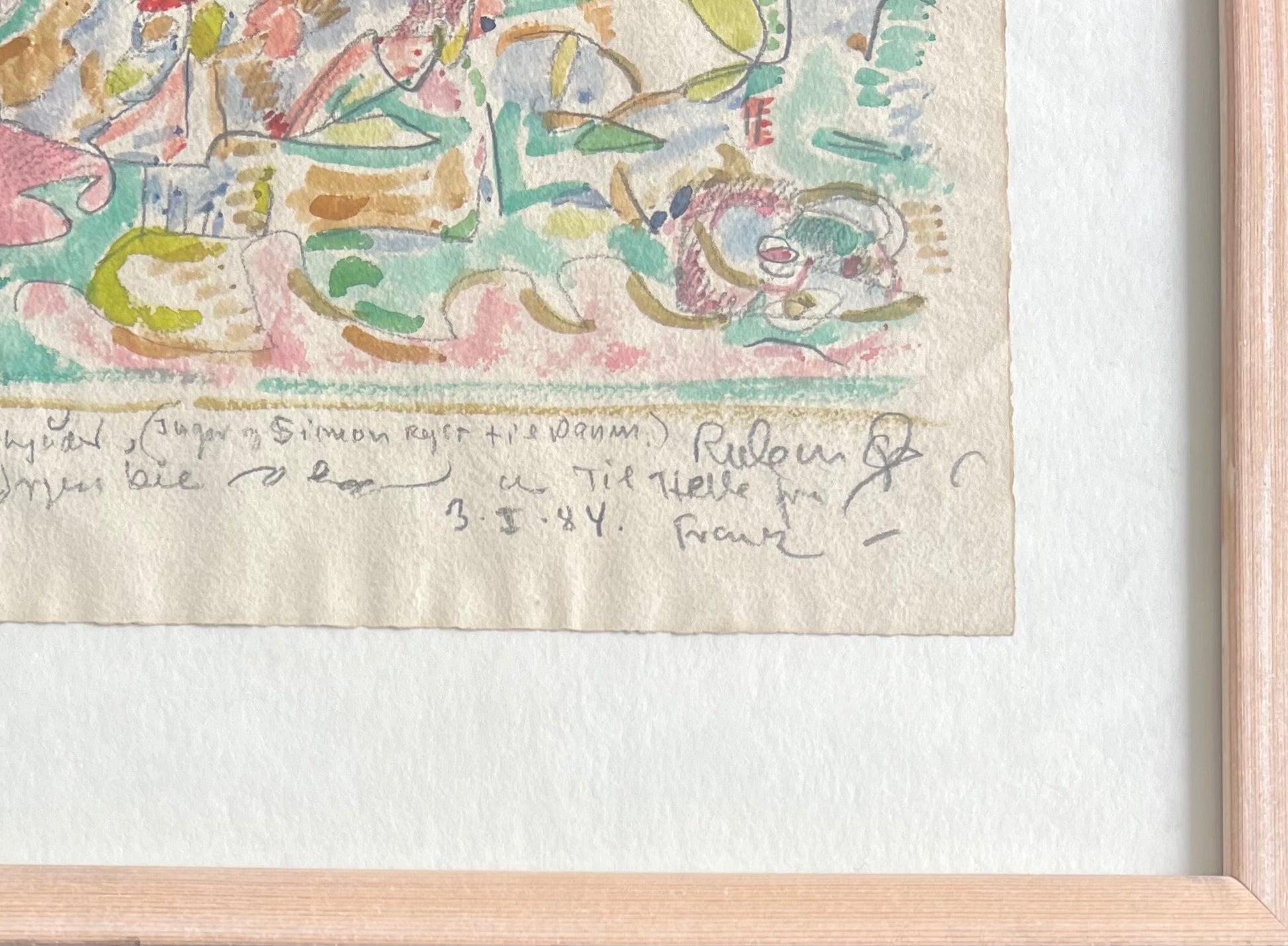Frank Rubin (1918-1990). Composition, watercolour on paper, signed. 24 x 40 (35 x 49) cm. Pine frame.