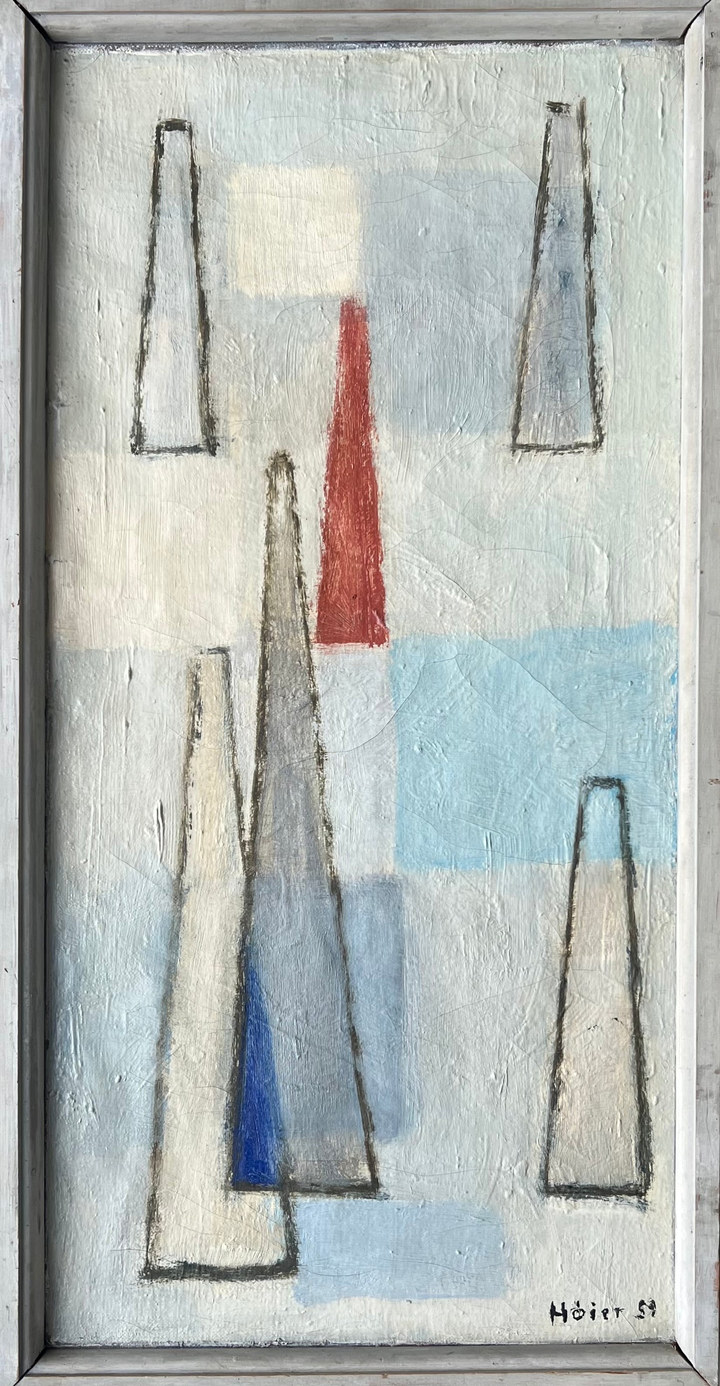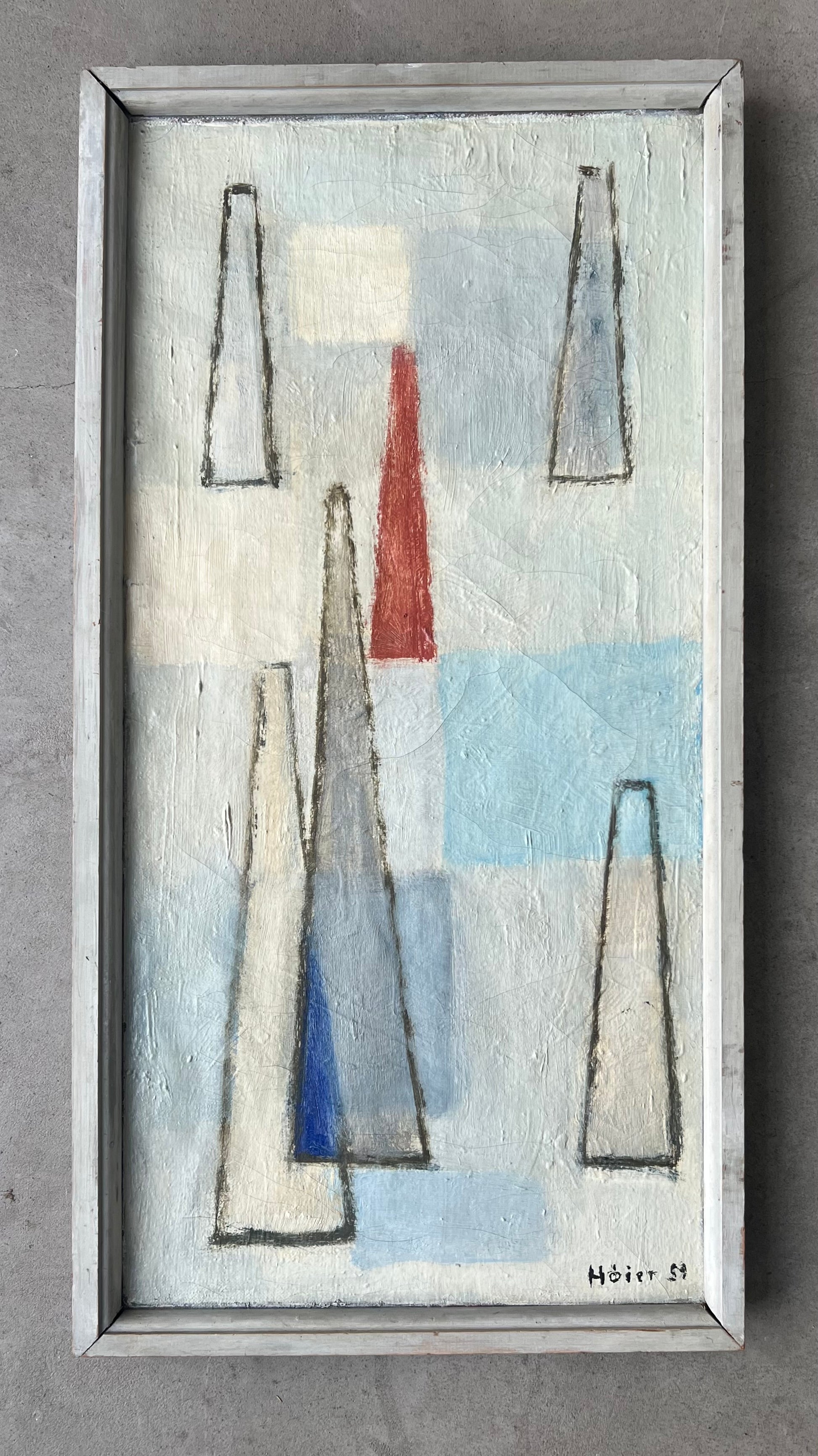 H. C. Høier (1919-2003). Composition, oil on canvas, signed and dated 1959. 68 x 33 (74 x 38) cm. Craquelures.