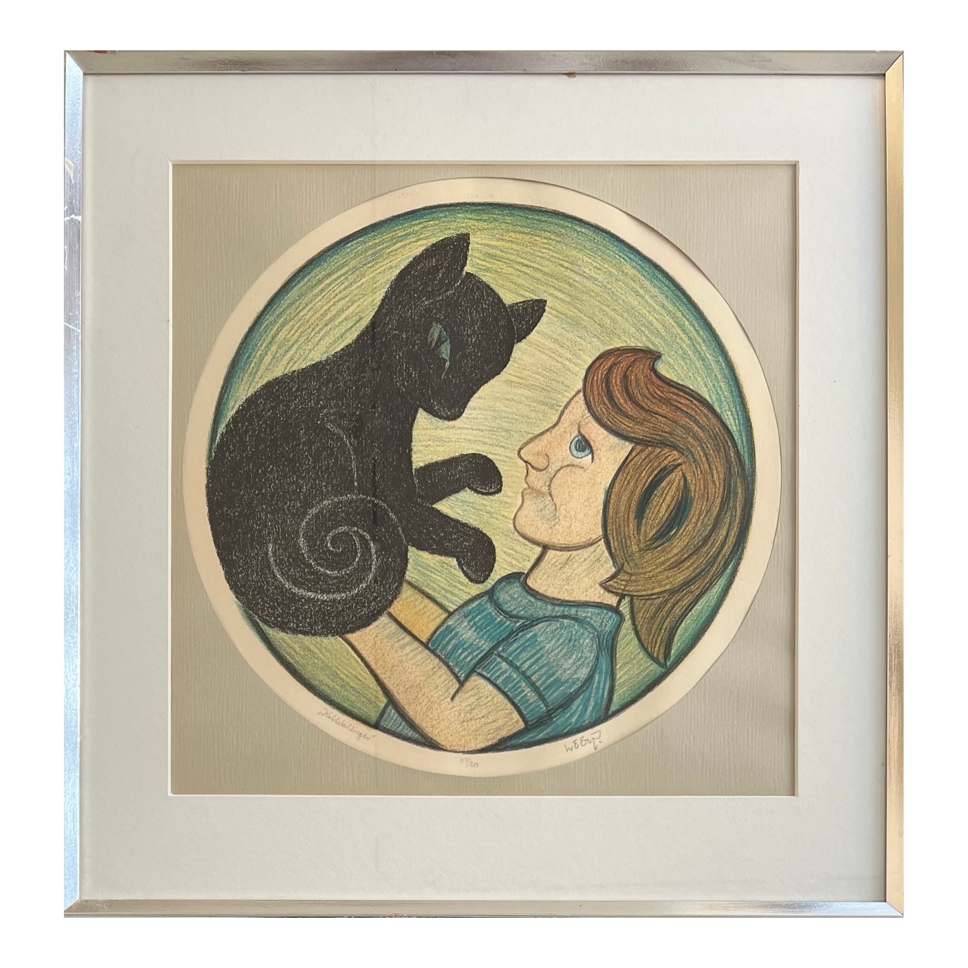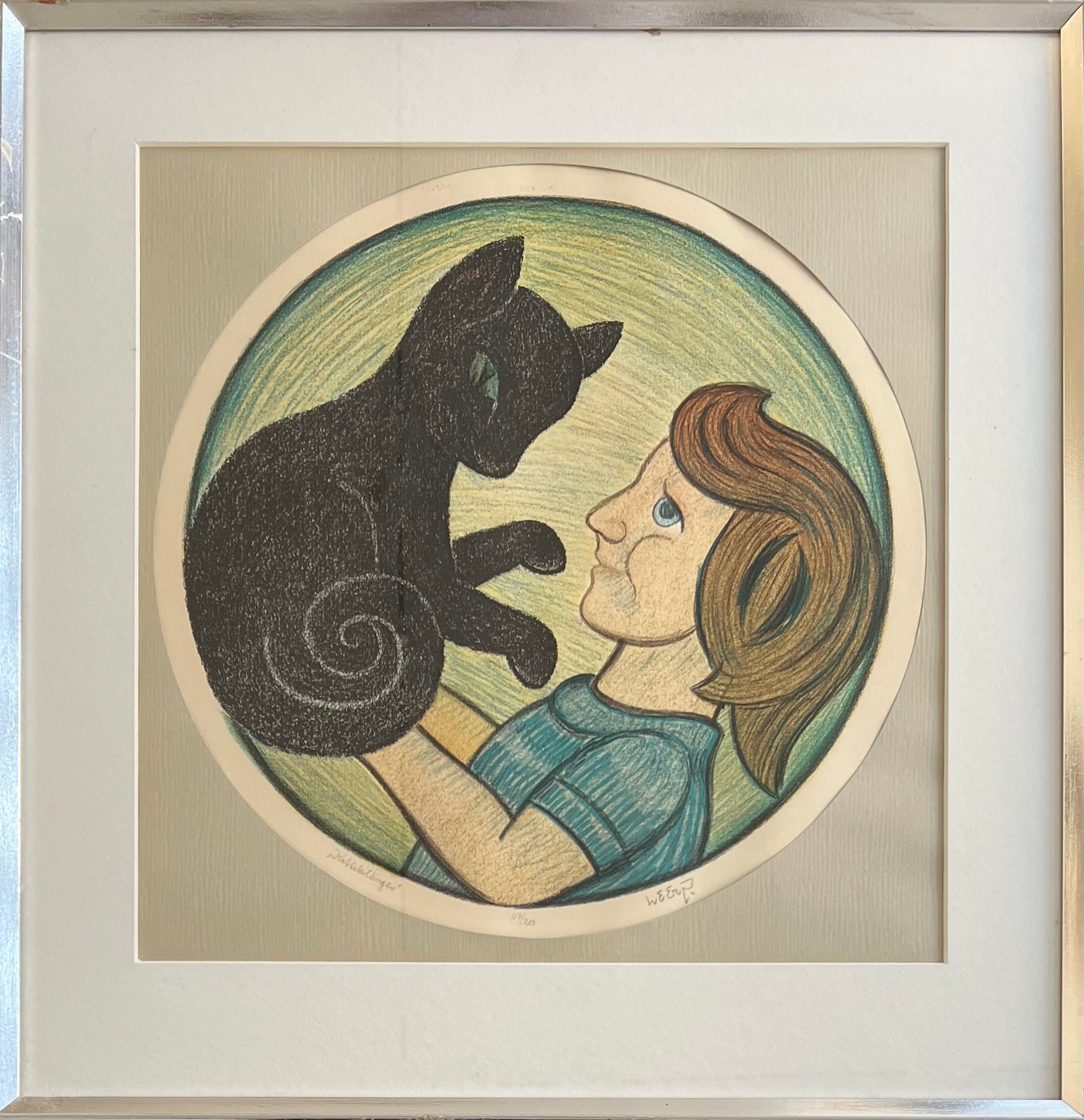 Henry Heerup (1907-1993). “Kattekillingen”, lithograph, 67/200, signed. Ø 46 (67 x 65) cm. Framed.