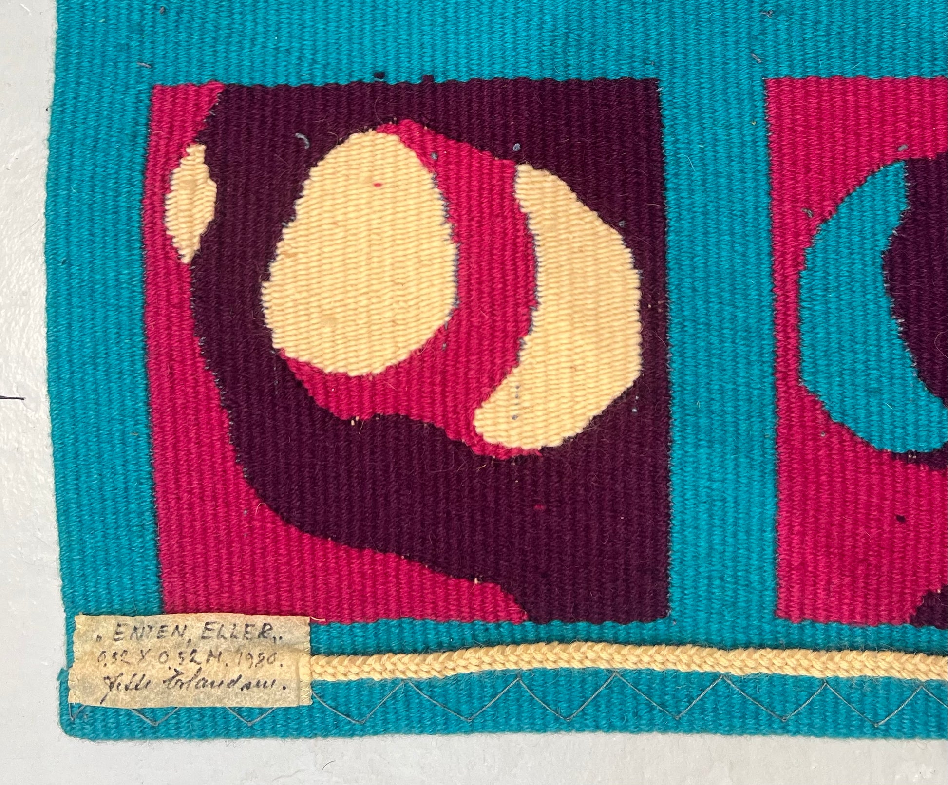 Jette Erlandsen (b. 1941). Composition, unique tapestry, wool, signed on the back. 52 x 52 cm.