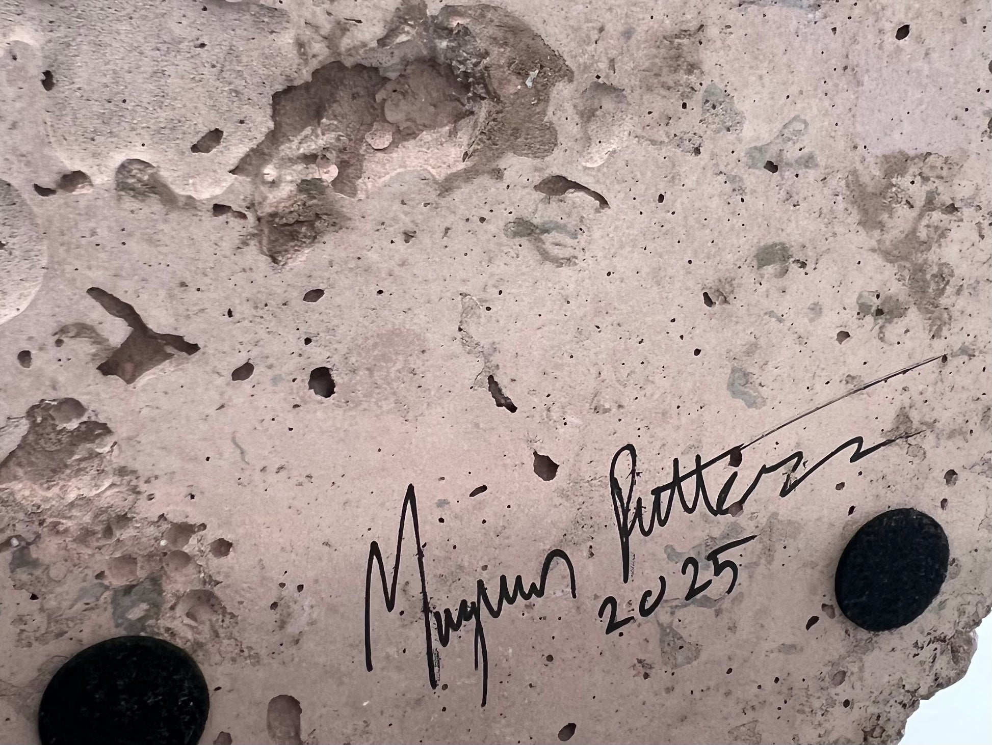 Magnus Pettersen (b. 1983). Hanging sculpture, concrete, brick and stone, mounted in steel chain for hanging. Signed and dated. H. 40/53, W. 25, D. 12 cm.