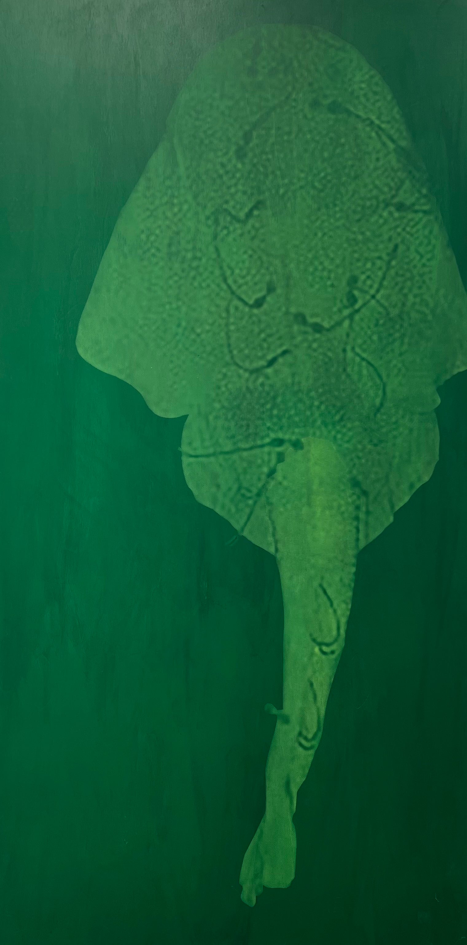 Marie Kølbæk Iversen (b. 1981). “Havengel”, unique screenprint on handpainted panel, signed on the back. 180 x 90 x 3 cm.