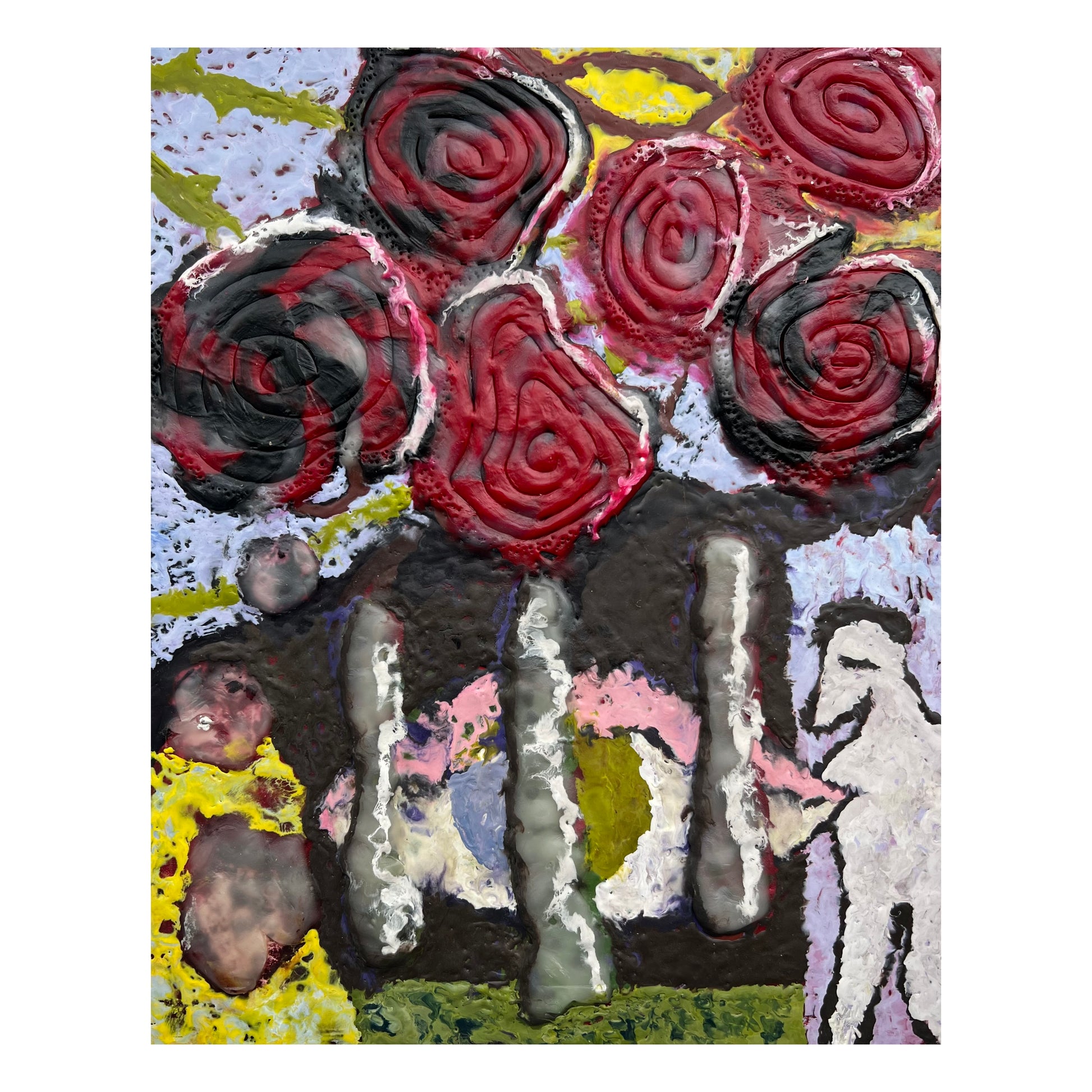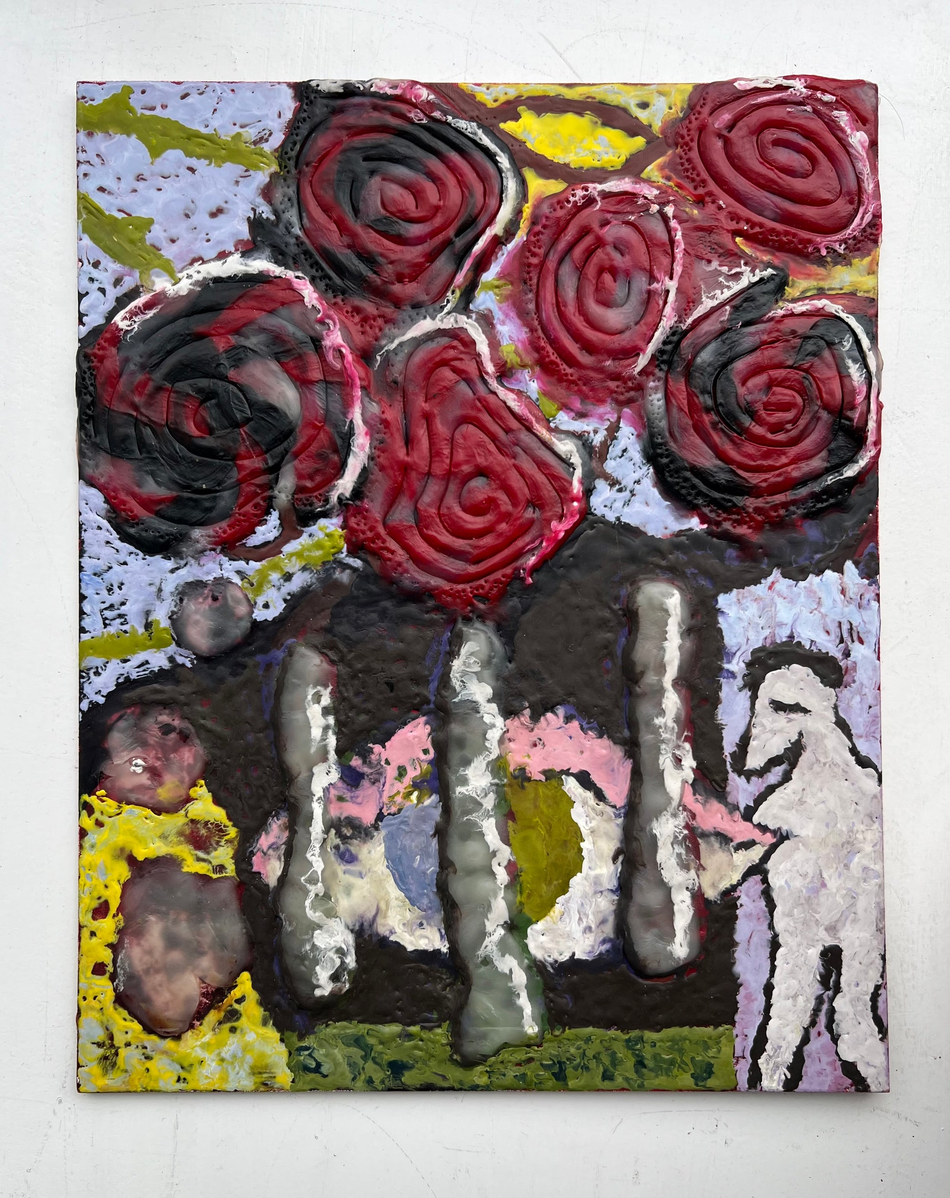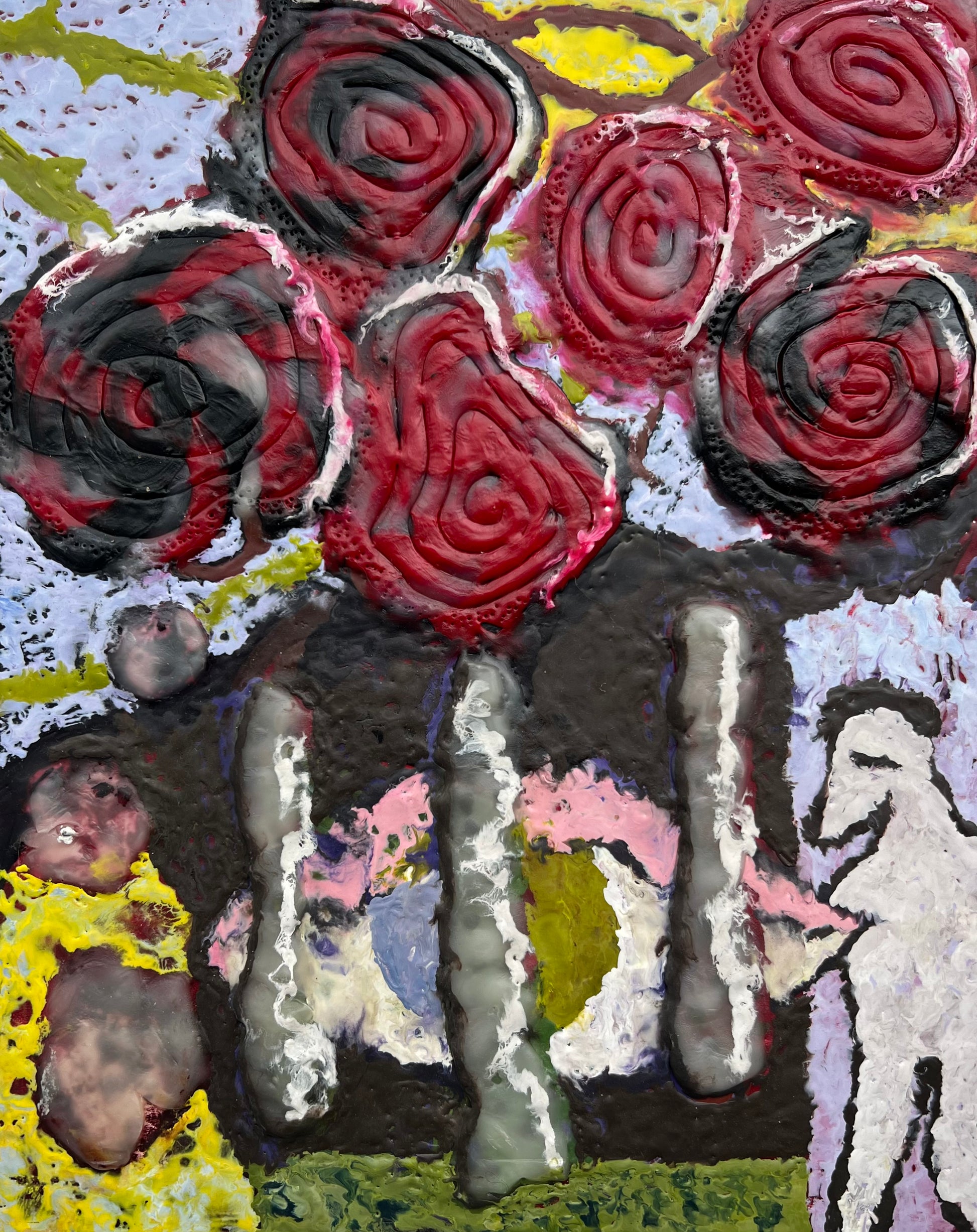 Mette Rasmussen (b. 1993). “Kræmmermarked”, modeling and encaustic wax on board. Signed. 30 x 24 cm.