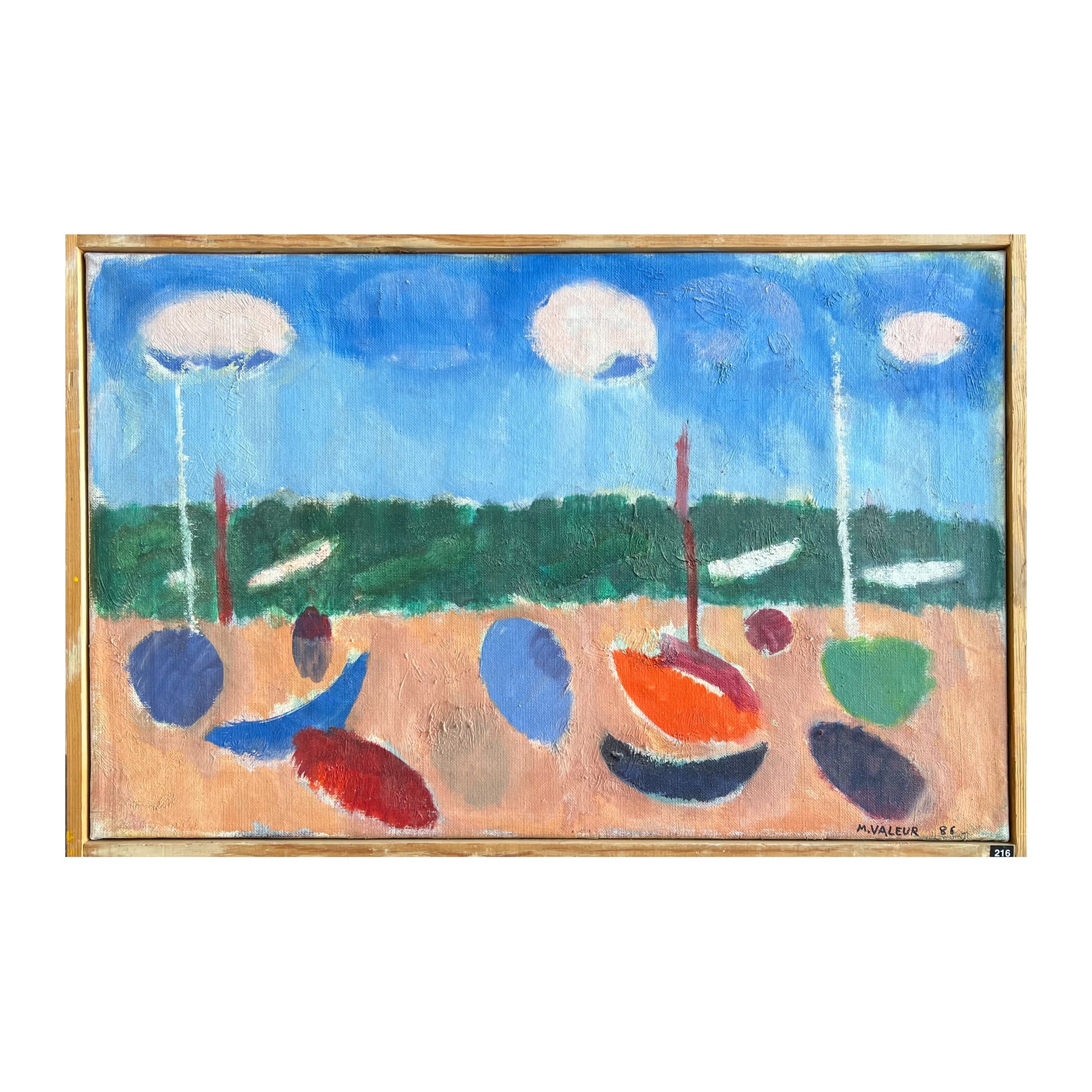 Mogens Valeur (1927-2000). Boats on the beach in the south of France, oil on canvas, signed. 35 x 55 (36 x 56) cm. Pineframe.