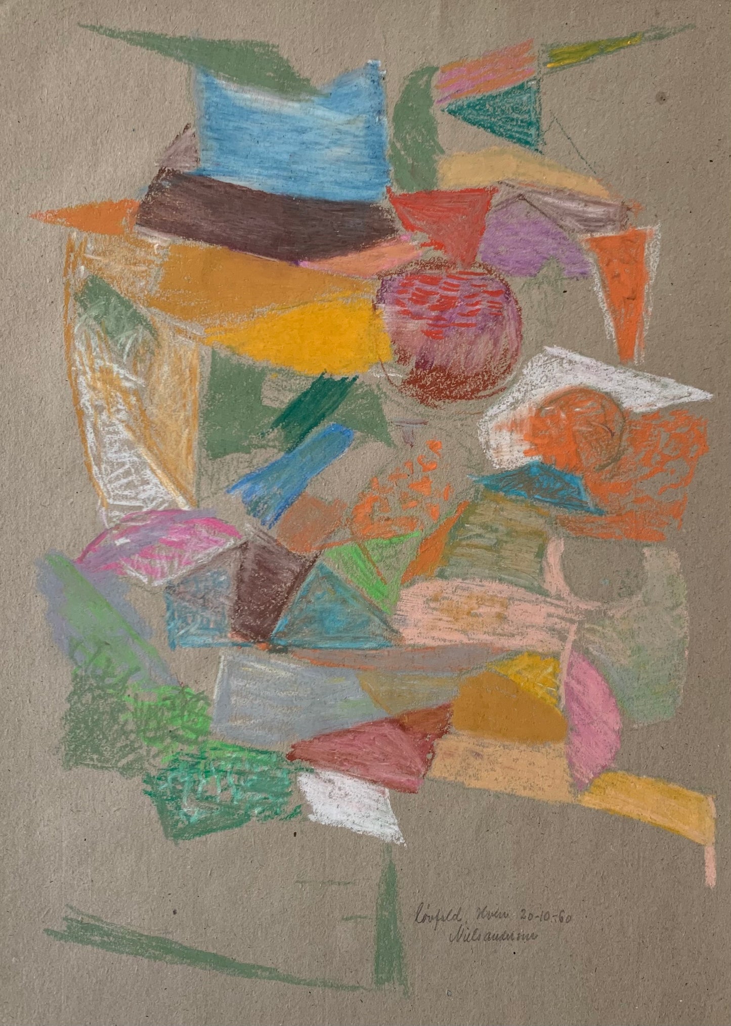 Niels Andersen (b. 1924). Composition, crayon on paper, signed. 42 x 30 cm. Unframed.