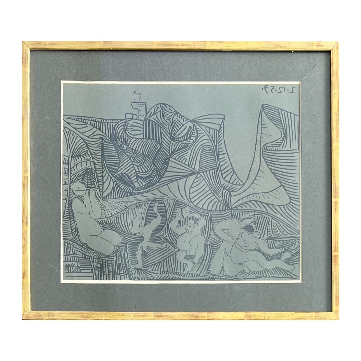 Pablo Picasso, after. Bacchanale au Hibo, linocut, unsigned. 27 x 34 (38 x 44) cm. Framed.