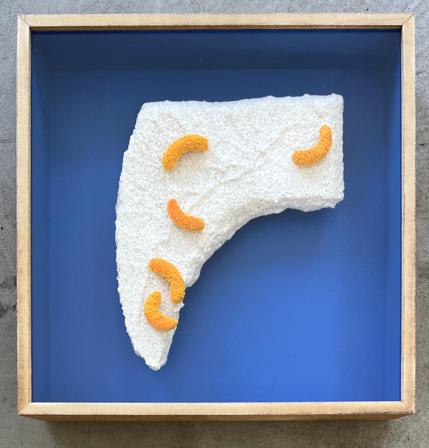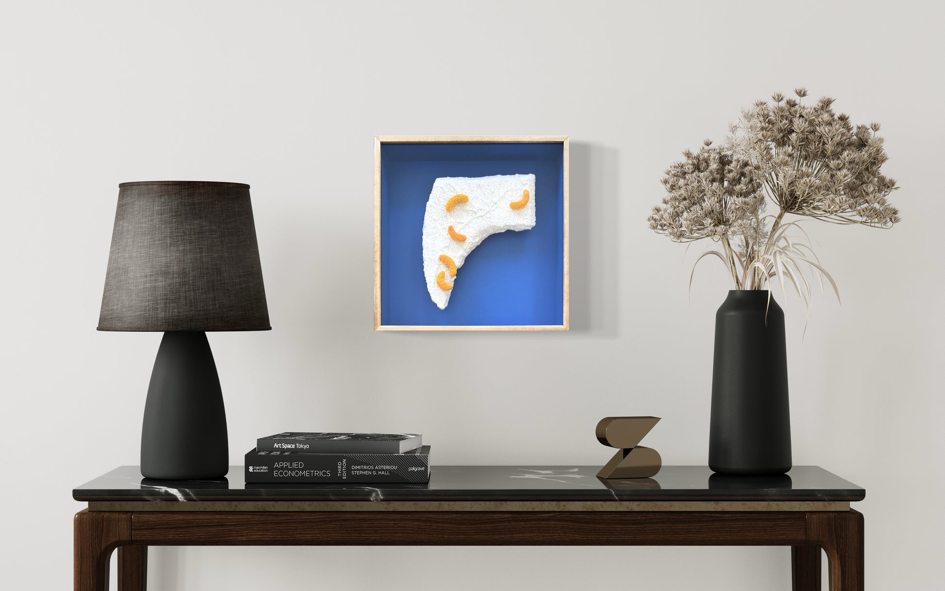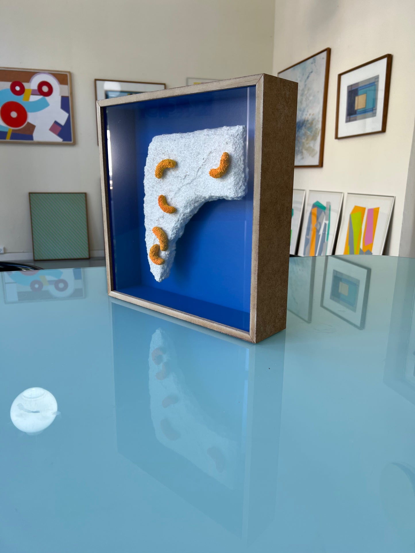 Thomas Lunden (b. 1980). "Teen Spirit", object / mixed media, signed and dated on the back. 32 x 32 x 7 cm. Framed with frosted glass.