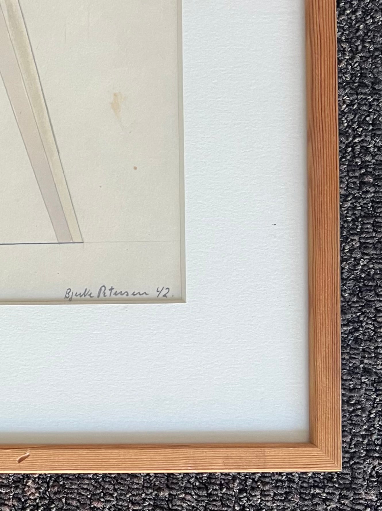 Vilhelm Bjerke Petersen (1909-1957). Sketch for a lamp, mixed medie on paper, signed and dated 1942. 37 x 26 (50 x 39) cm. Pineframe.