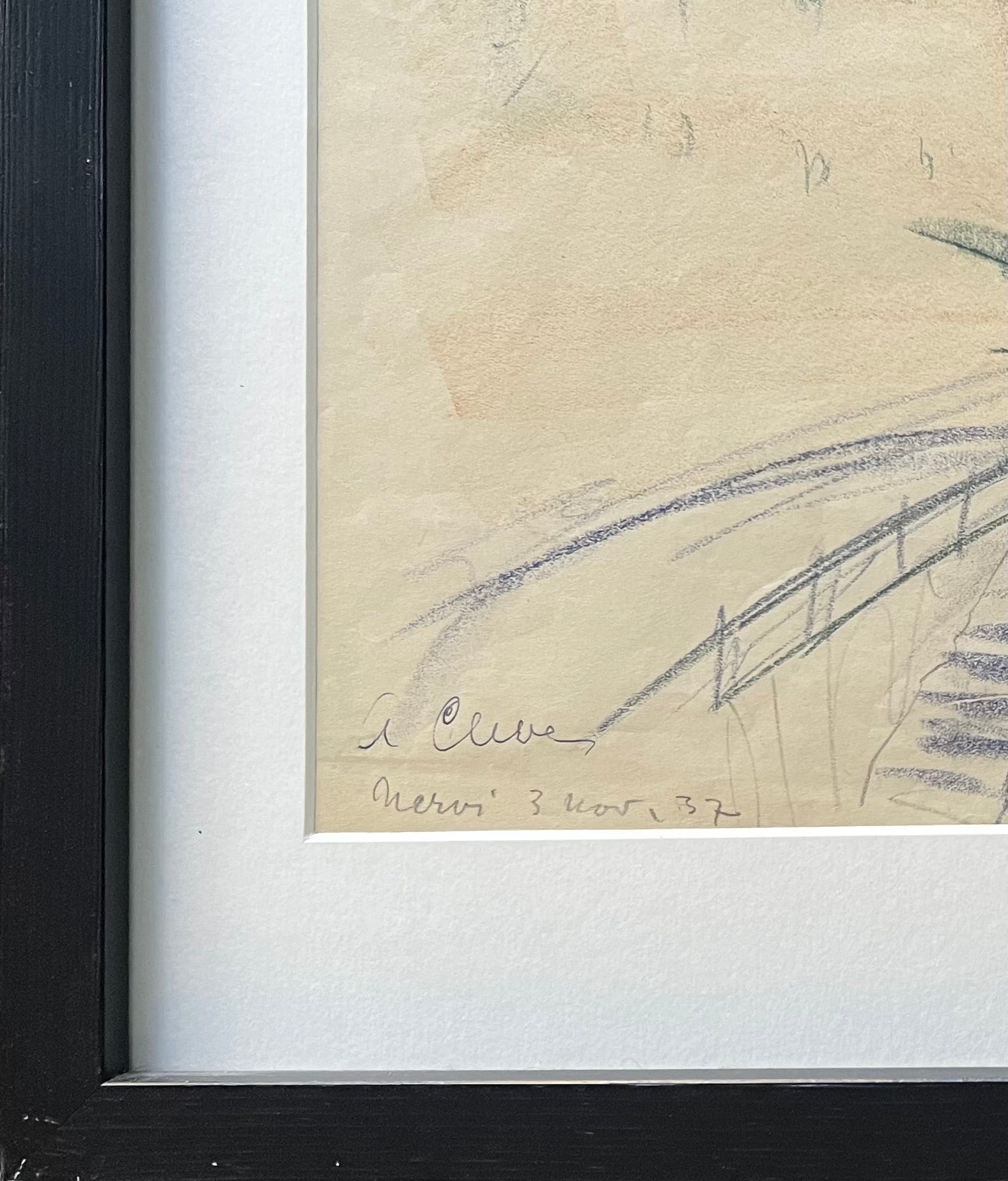 Agnes Cleve (1876 - 1951). “Nervi”, oil chalk in paper, signed a Cleve and dated 37. 33 x 25 (46 x 36) cm. Black wood frame.