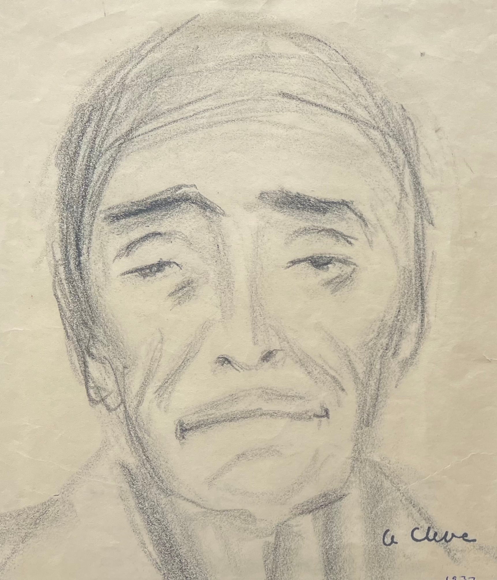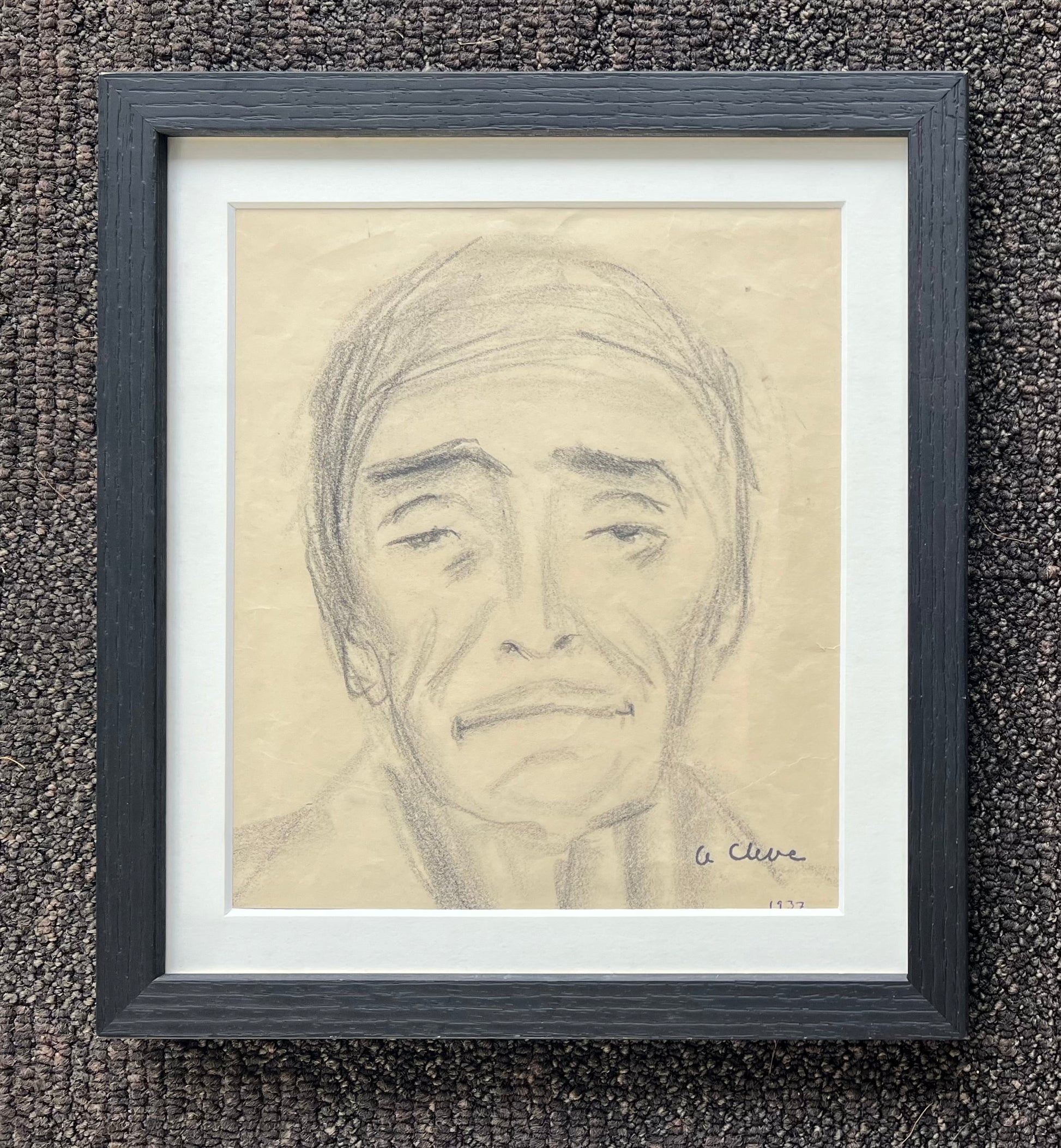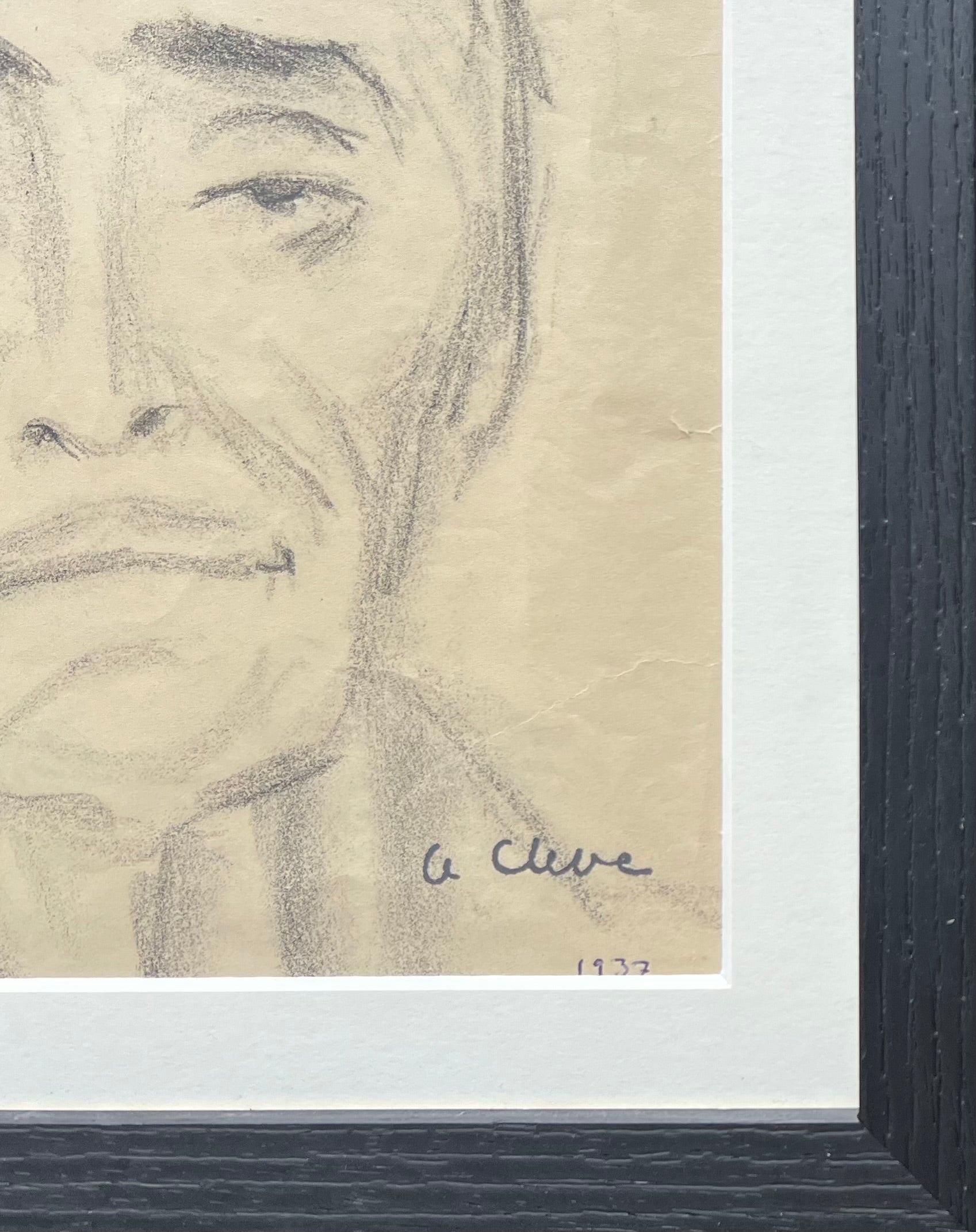 Agnes Cleve (1876 - 1951). Portrait, oil chalk on paper, signed Cleve and dated 37. 23 x 19 (30 x 26) cm. Black wood frame.