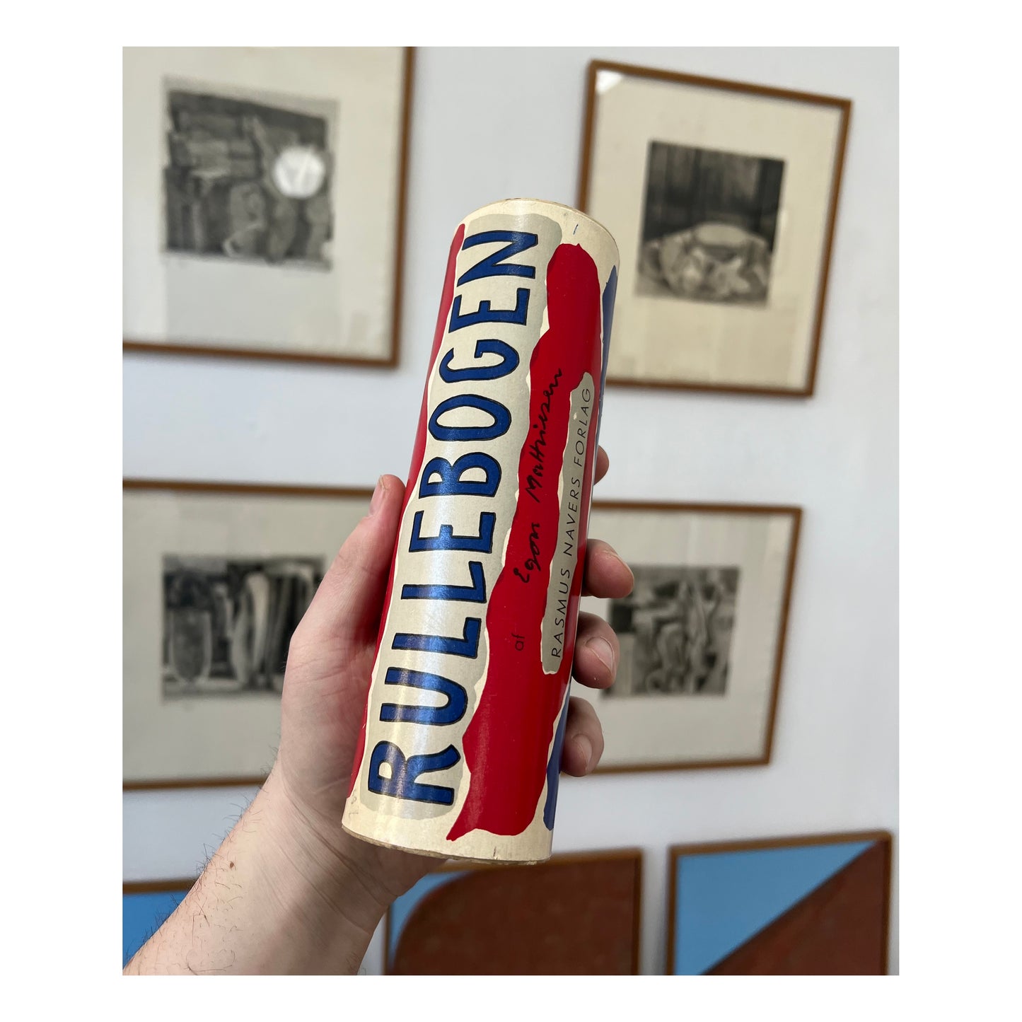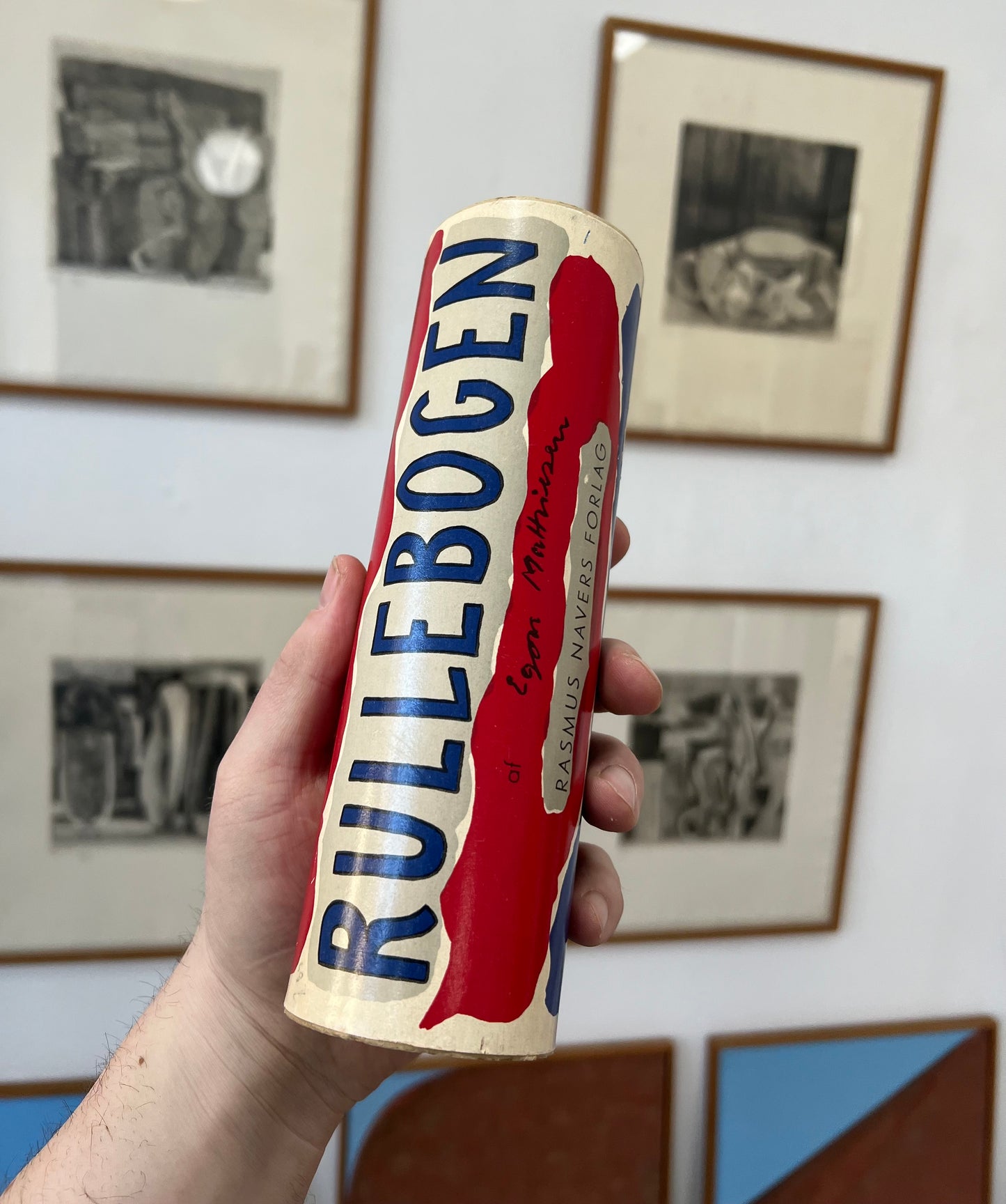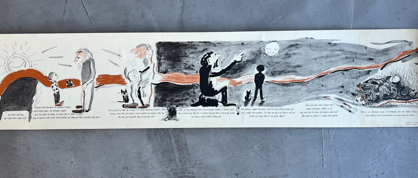 Egon Mathiesen (1907-1976). “Rullebogen”, roll out childrens book, including original cover/tube, Rasmus Navers Forlag 1953, printed by a/s Recato, very rare. 21 x 310 cm. Some wear.