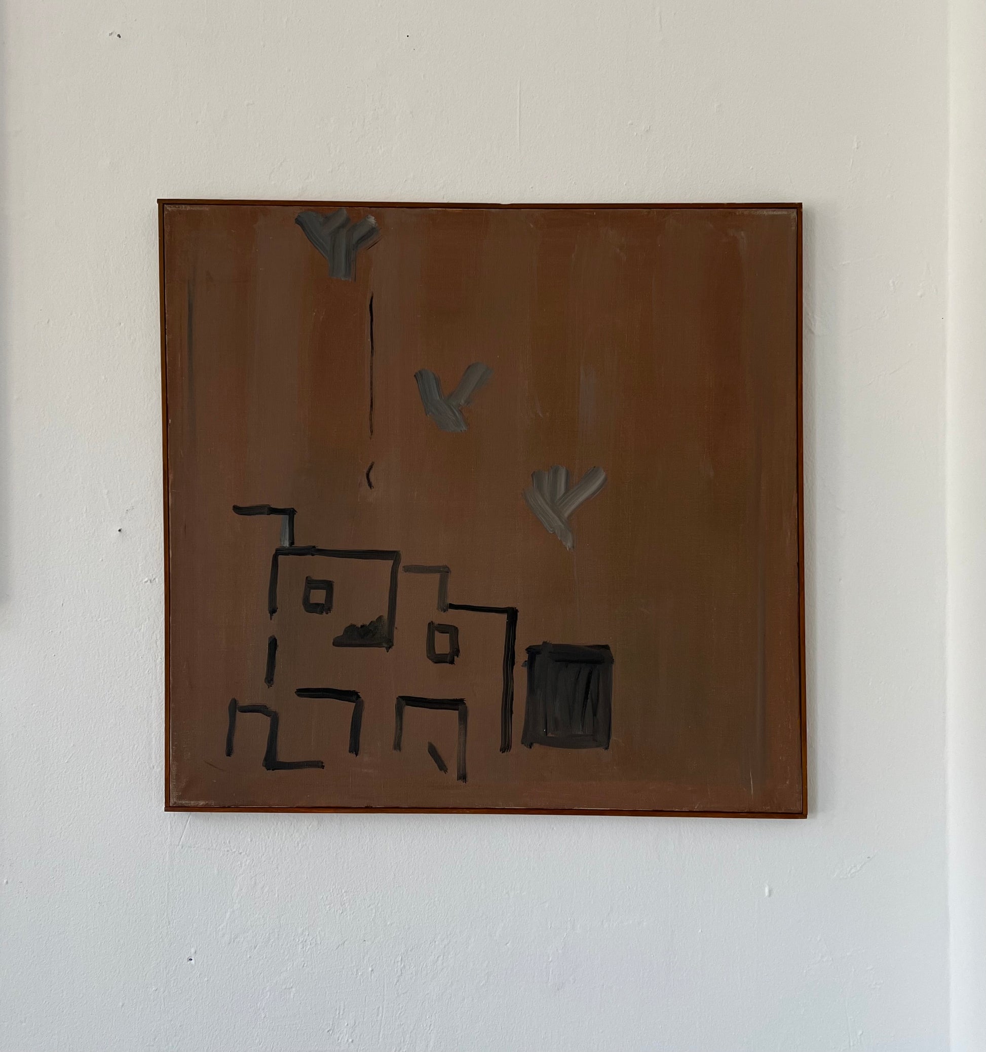 Else Fischer-Hansen (1905-1996). Composition, oil on canvas, signed and dated 1974. 78 x 82 (79 x 83) cm. Pine frame.