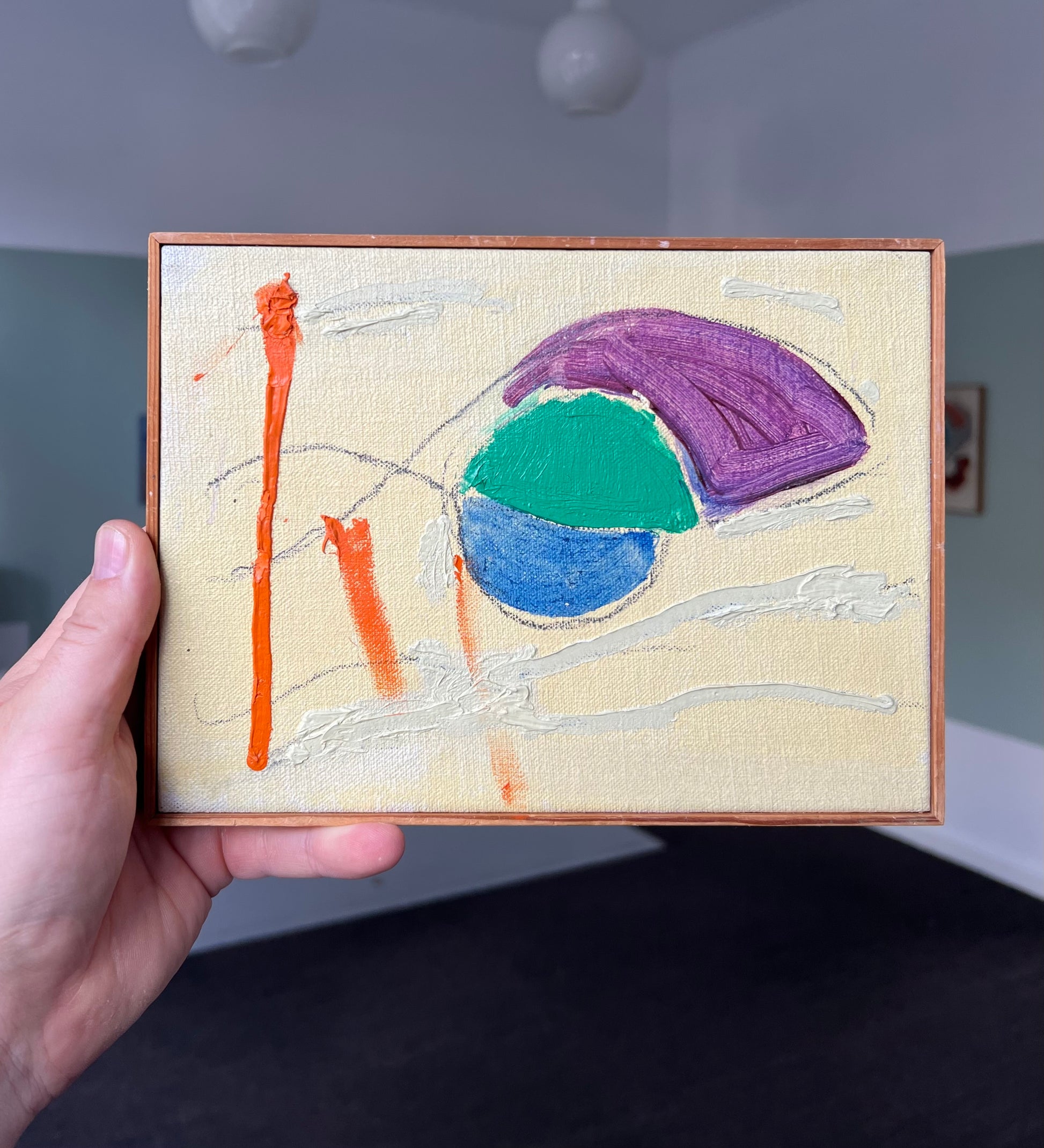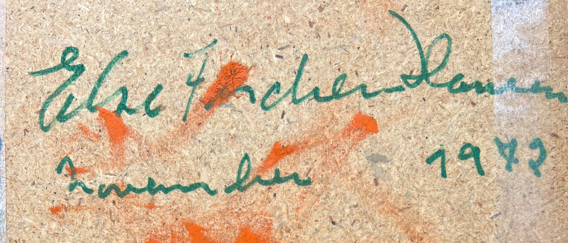 Else Fischer-Hansen (1905-1996). Composition, oil on canvas mounted on board, signed and dated 1972. 16 x 23 cm. Pine frame.