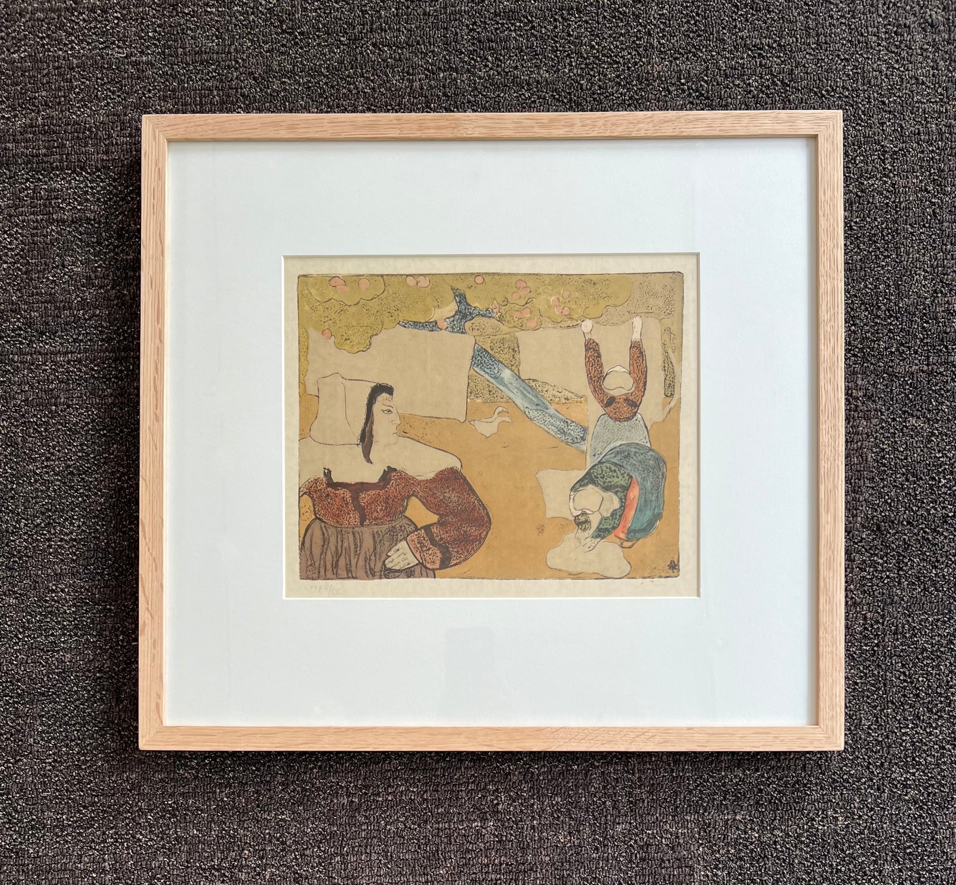 Émile Bernard (1868 - 1941). “Bretonne étendant le linge”. Signed. E. Bernard, zincography, CXXXII/CC. 38×47 cm.