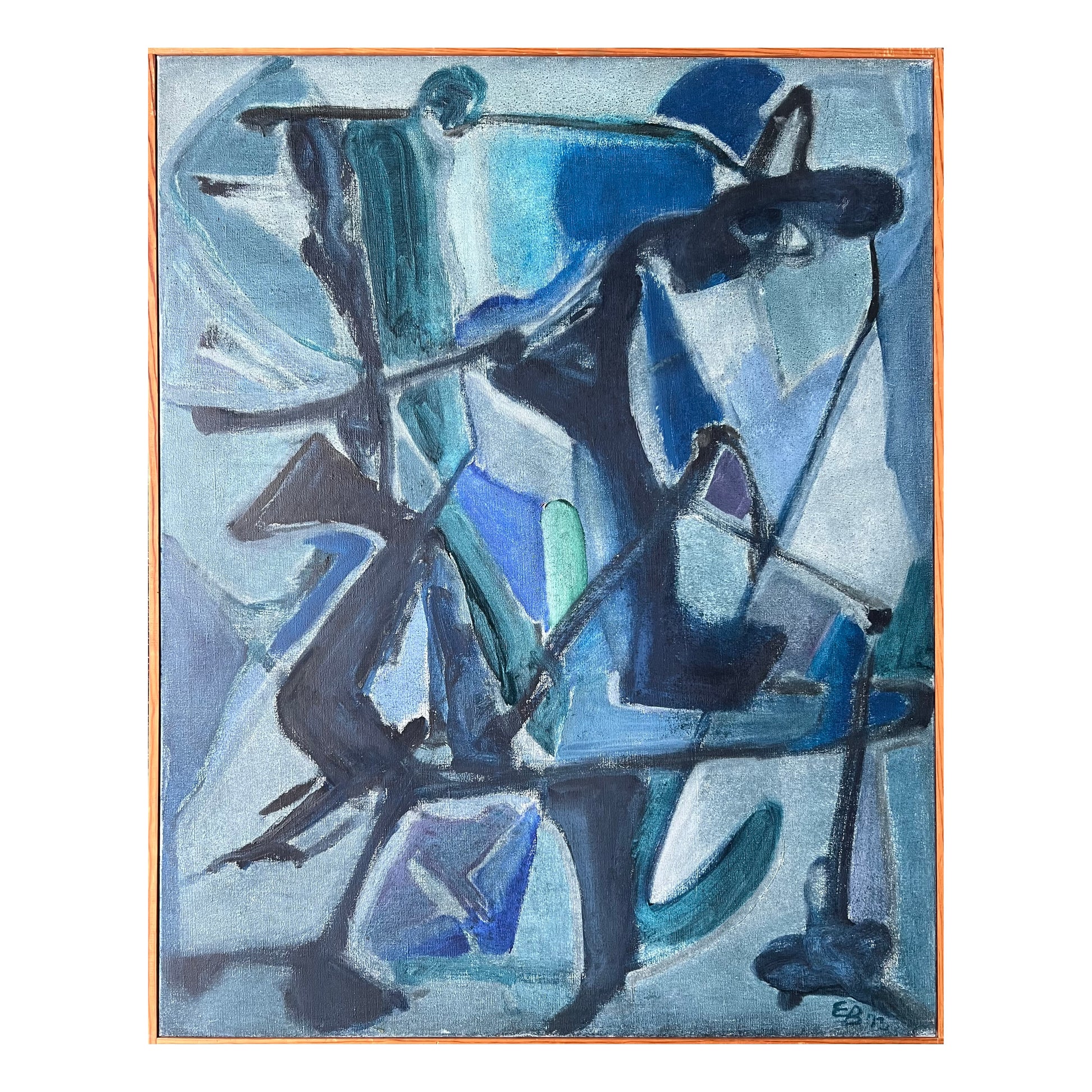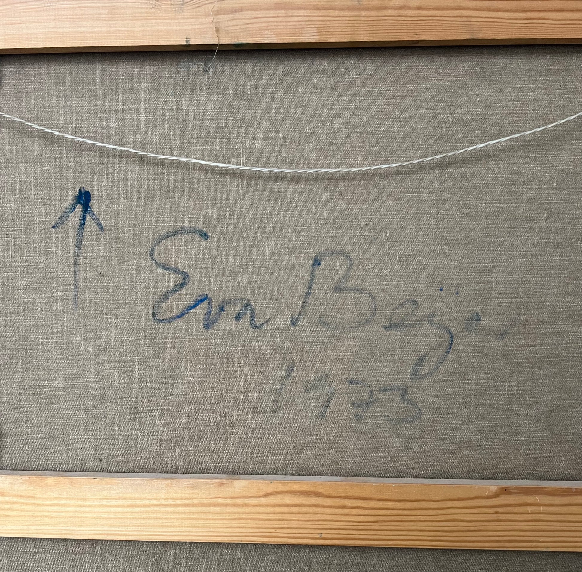 Eva Beyer (1921-2004). Composition, oil on canvas, signed and dated 1973. 92 x 73 (93 x 74) cm. Pineframe.