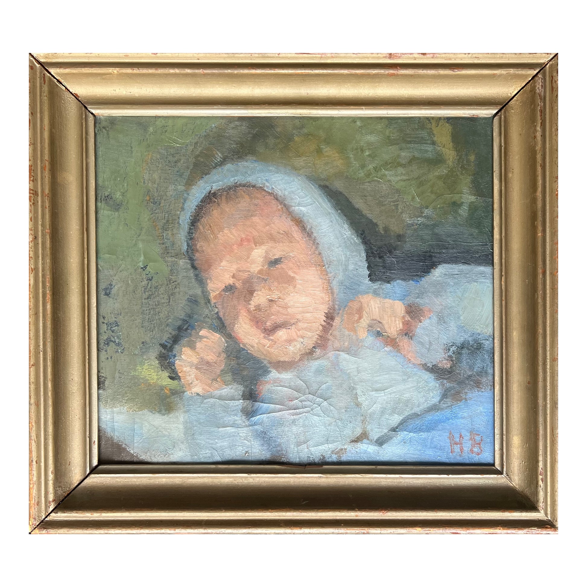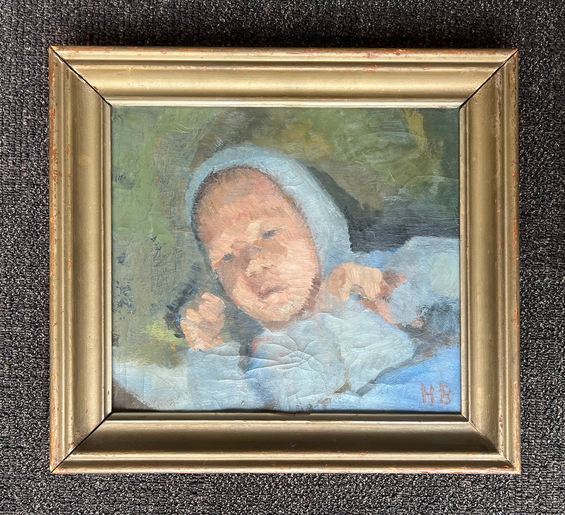 Hedvig Brandt (1881-1946). “Den lille blå”, Oil on canvas, signed. 30 x 34 (39 x 43) cm. Framed. Craquelures.