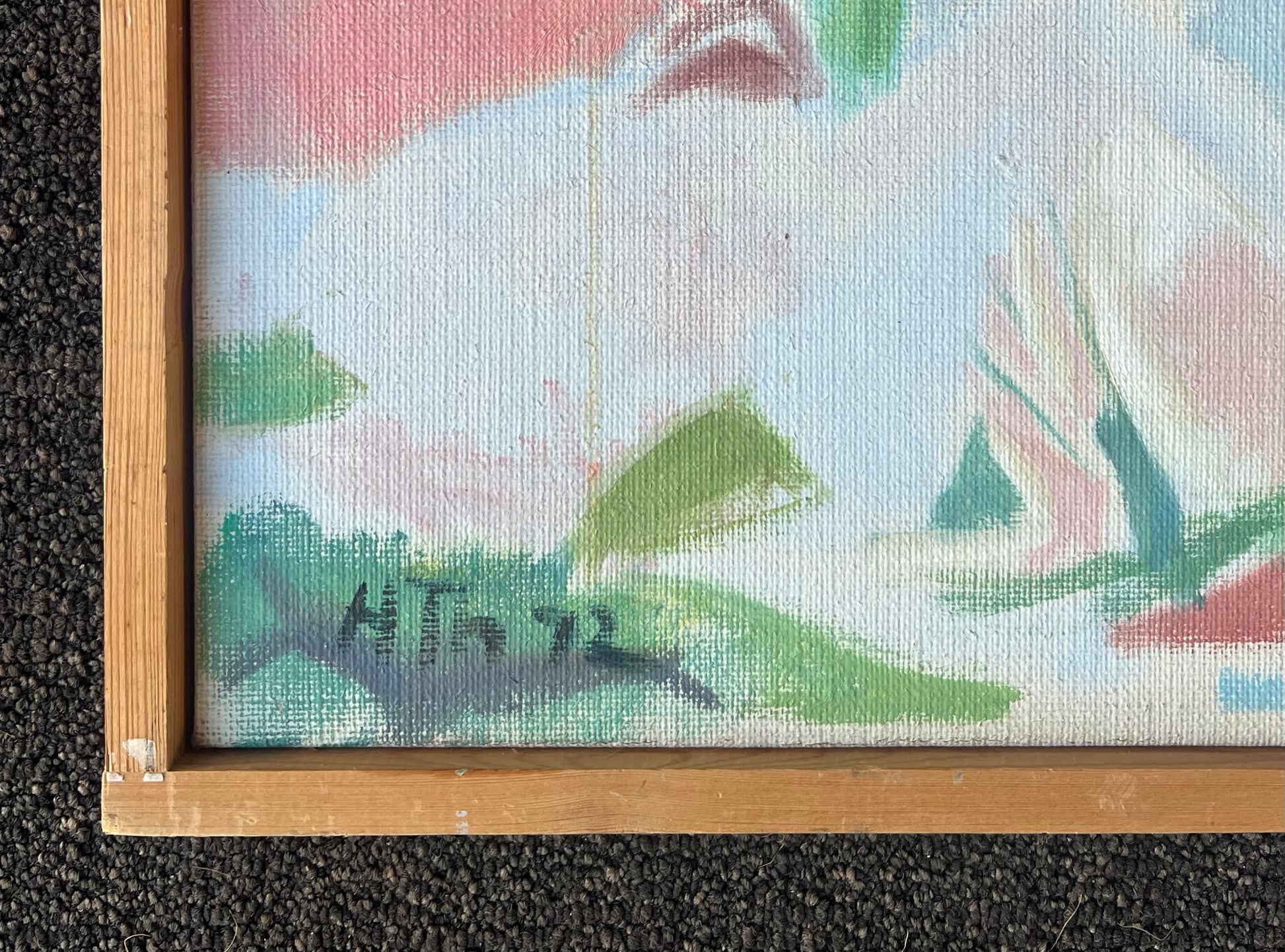 Helle Thorborg (1927-2025). Composition, Oil on canvas, signed and dated 72. 56 x 60 (60 x 64) cm. Pineframe. Some wear.