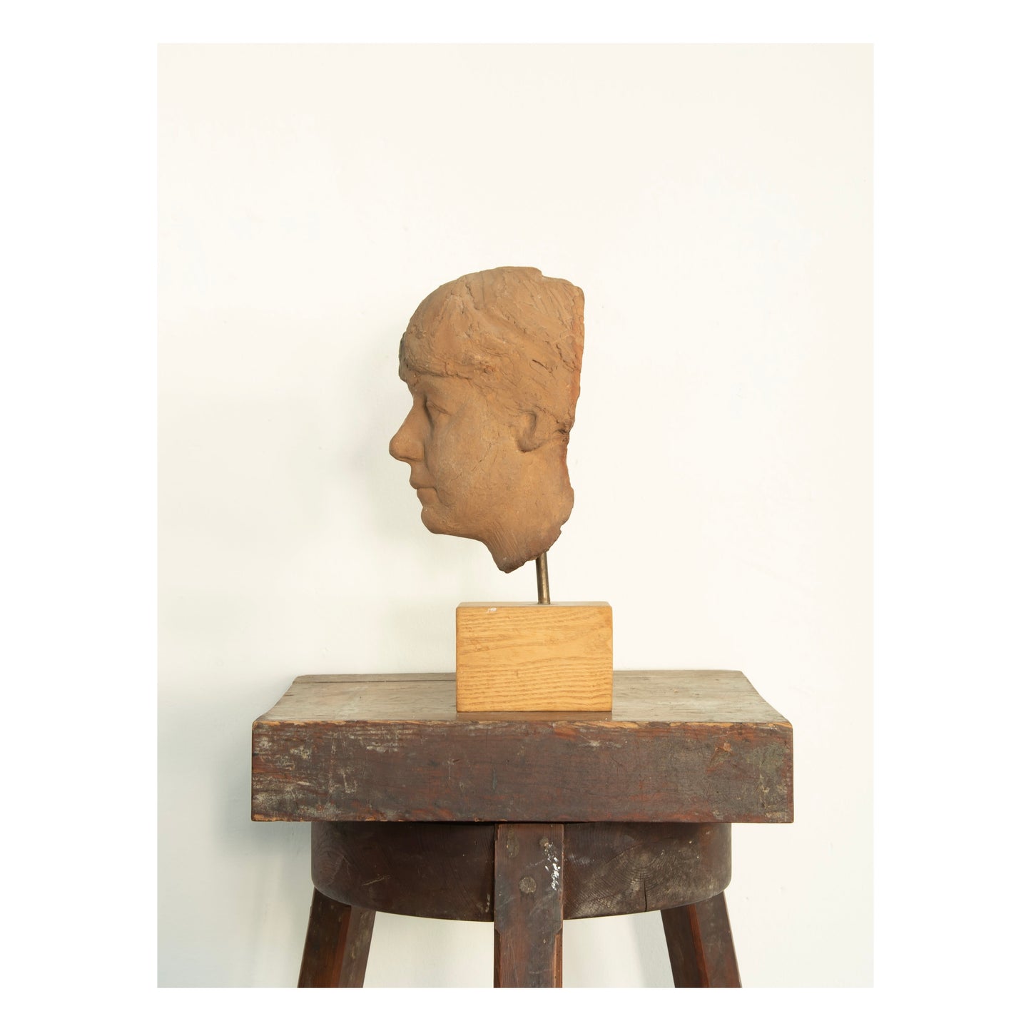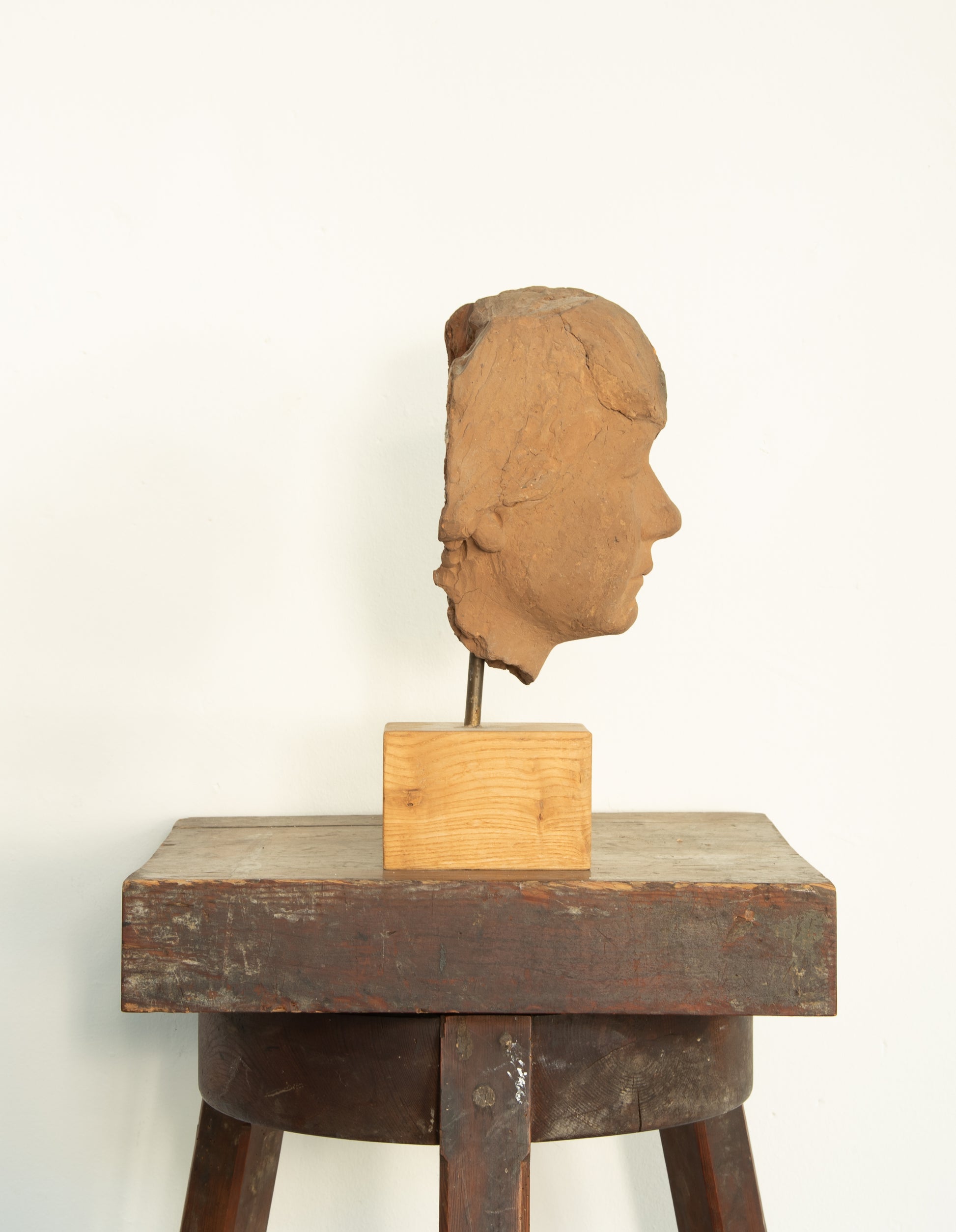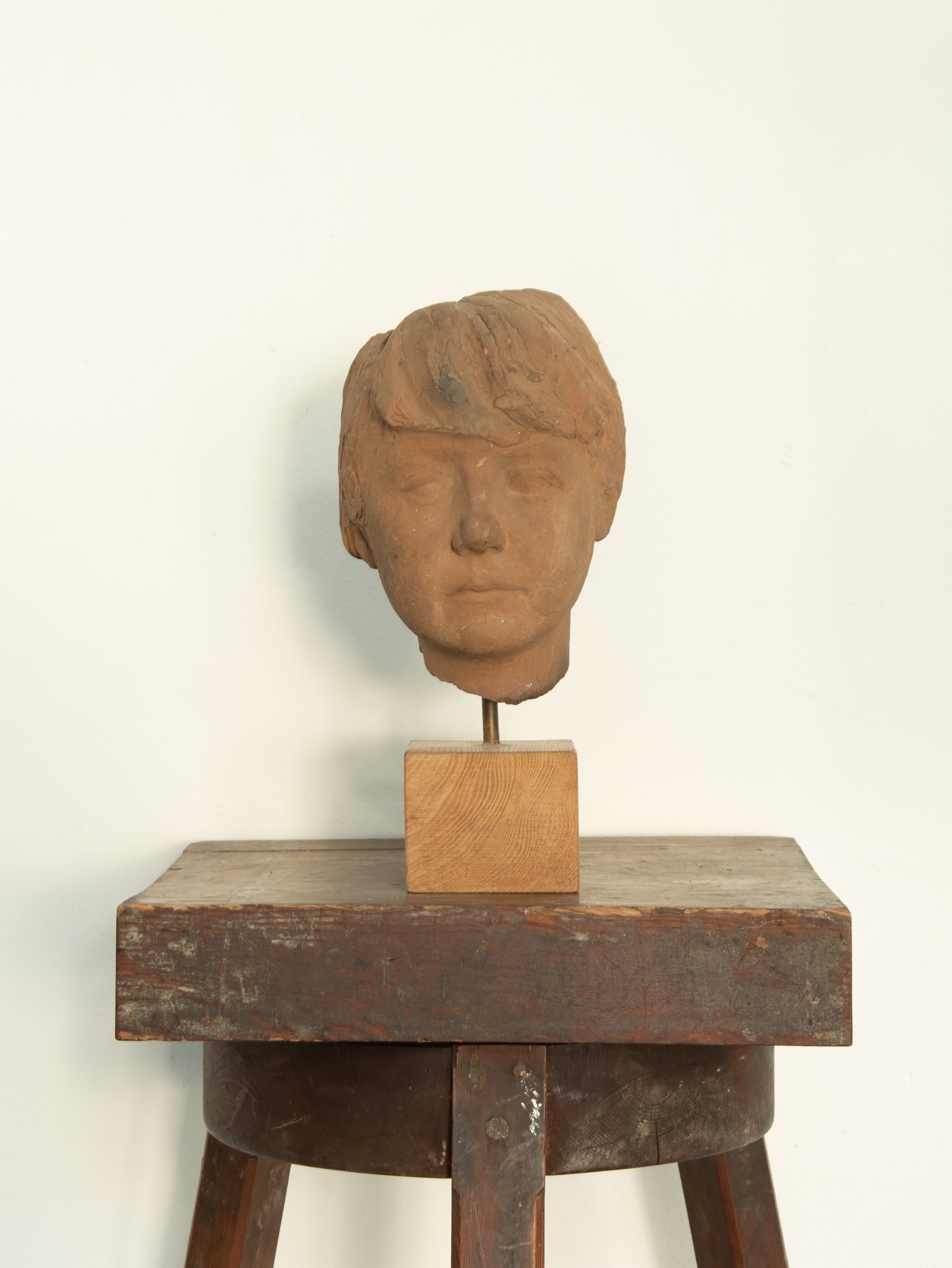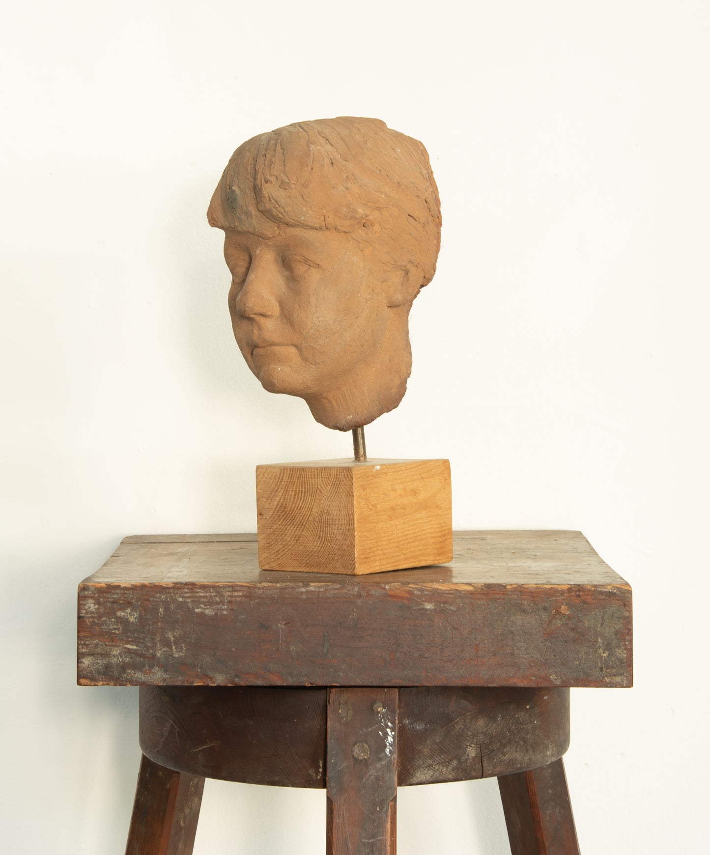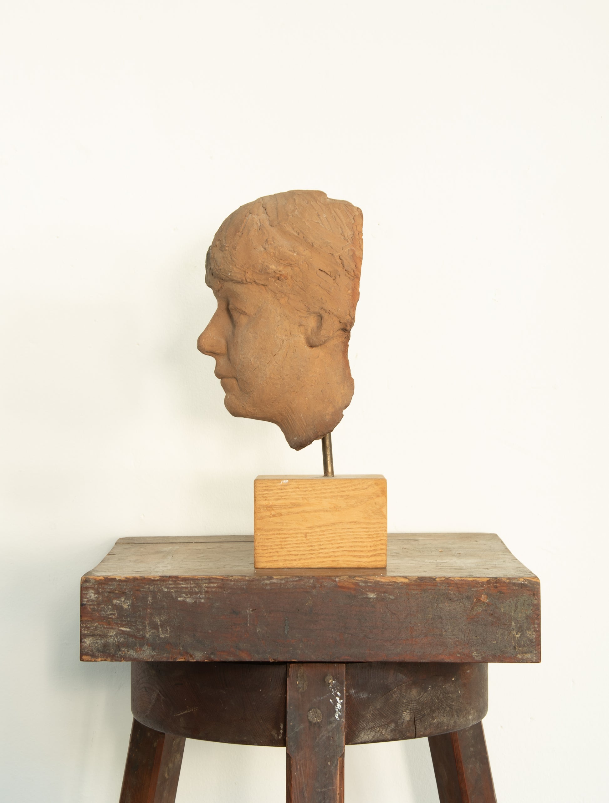 Henry Luckow-Nielsen (1902-1992). Portrait of a woman, burnt clay mounted on wood base, unsigned. H. 36 cm. One crack on the backside