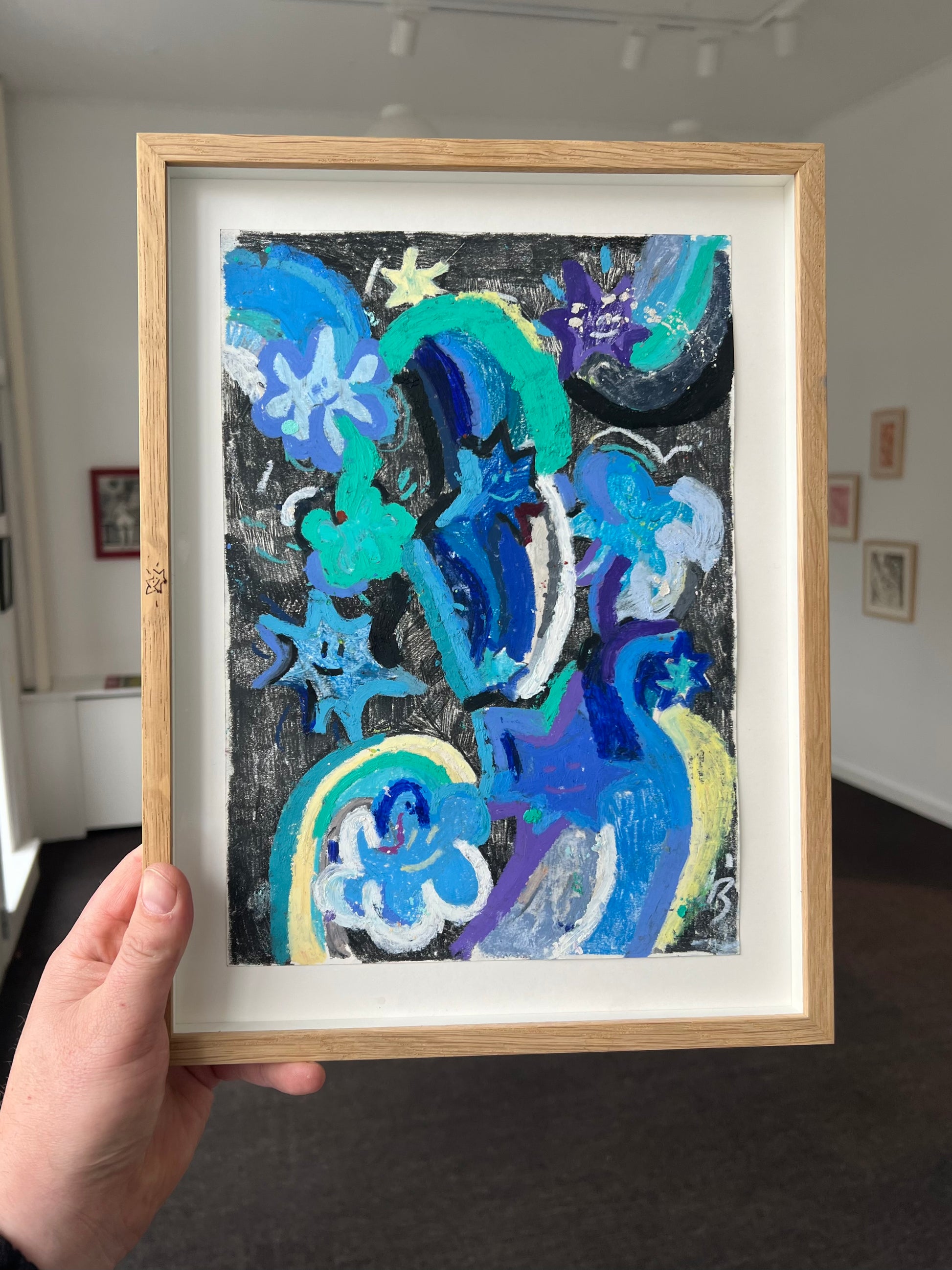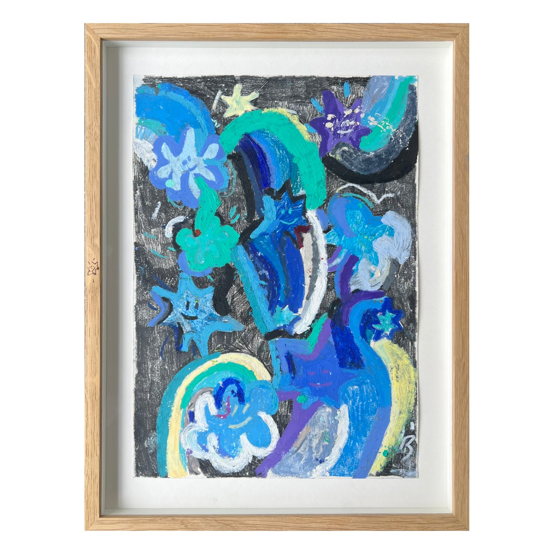 Laura Julie Brage (b. 1992). Composition, pastel on paper, signed. 30 x 20 (36 x 27) cm. Oakframe.