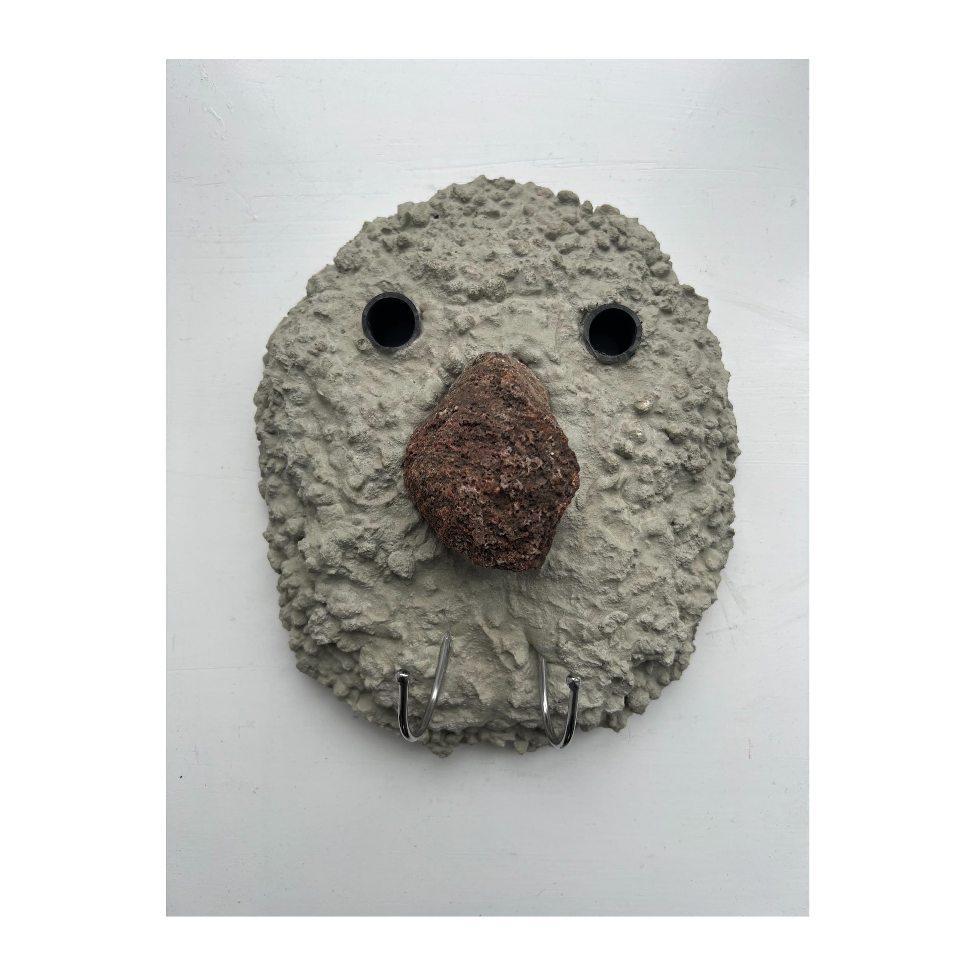 Magnus Pettersen (b. 1983). Coat rack, concrete and stone, mounted with two metal hooks. Signed and dated 2025. 27 x 23, D. 12 cm.
