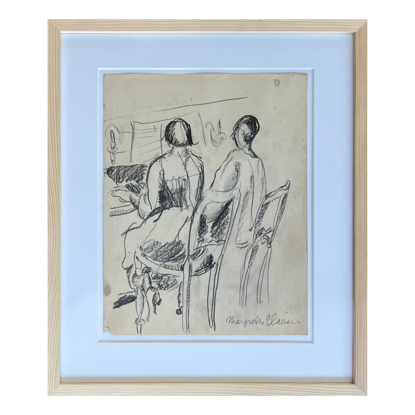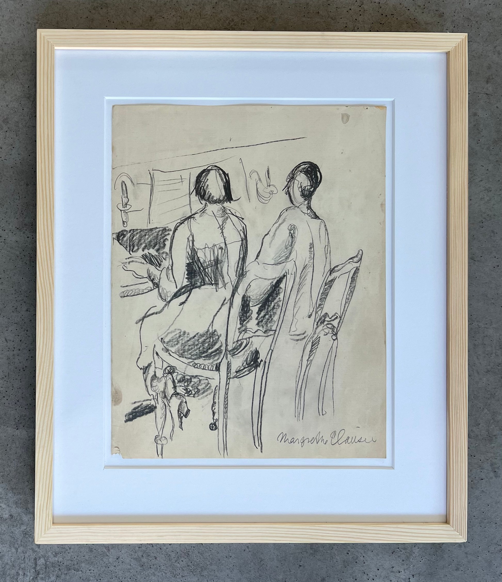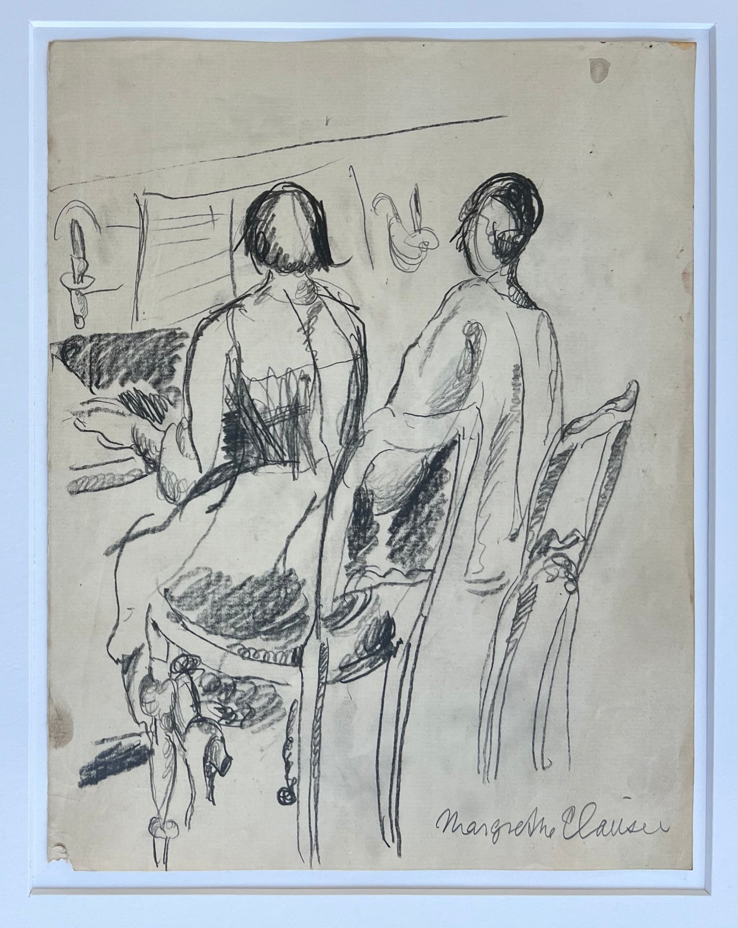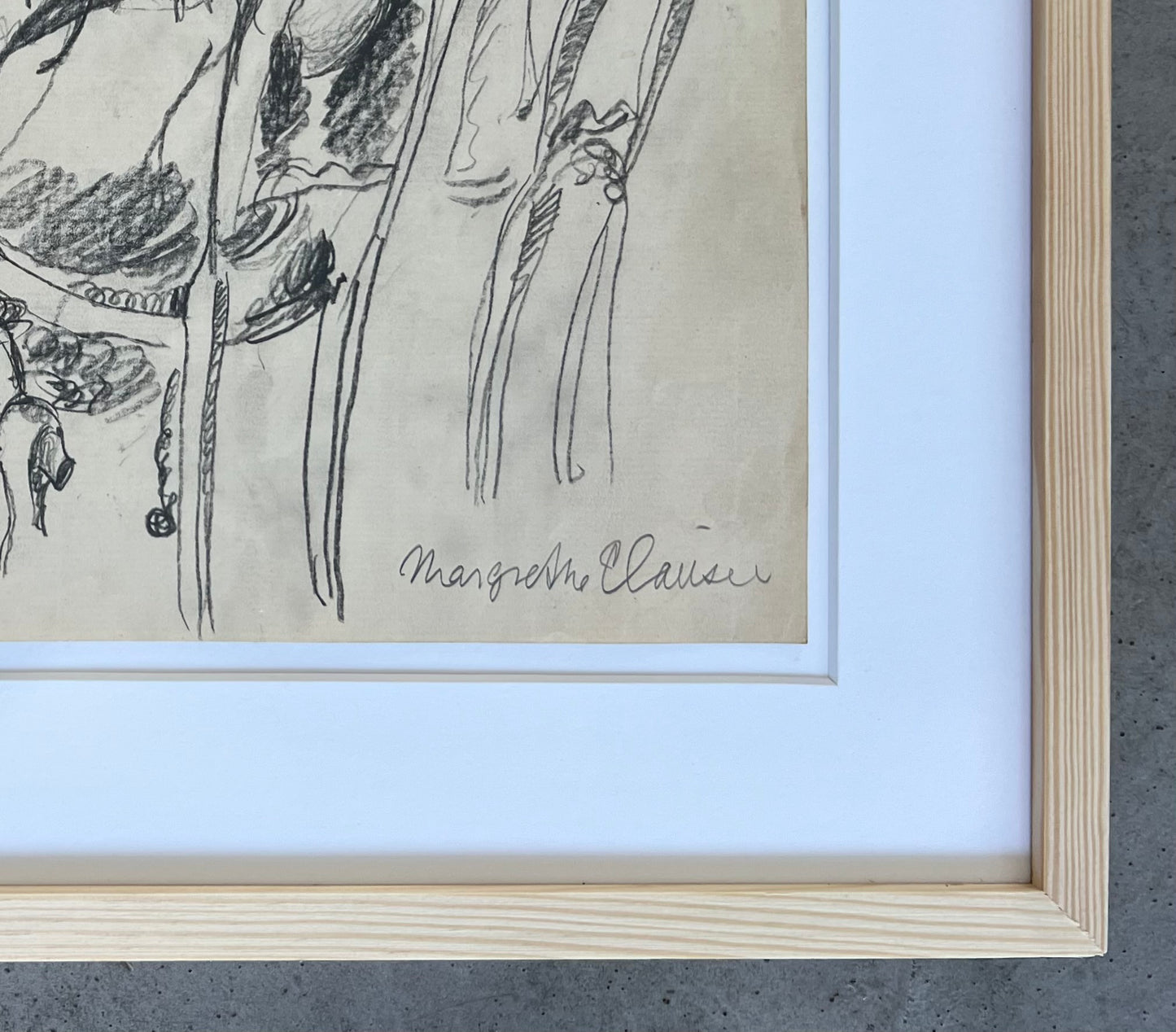 Margrethe Clausen (1901-1985). Ladies playing the piano, pencil on paper, 1920’s signed. 28 x 21 (41 x 34) cm. New pine frame, museum glass.