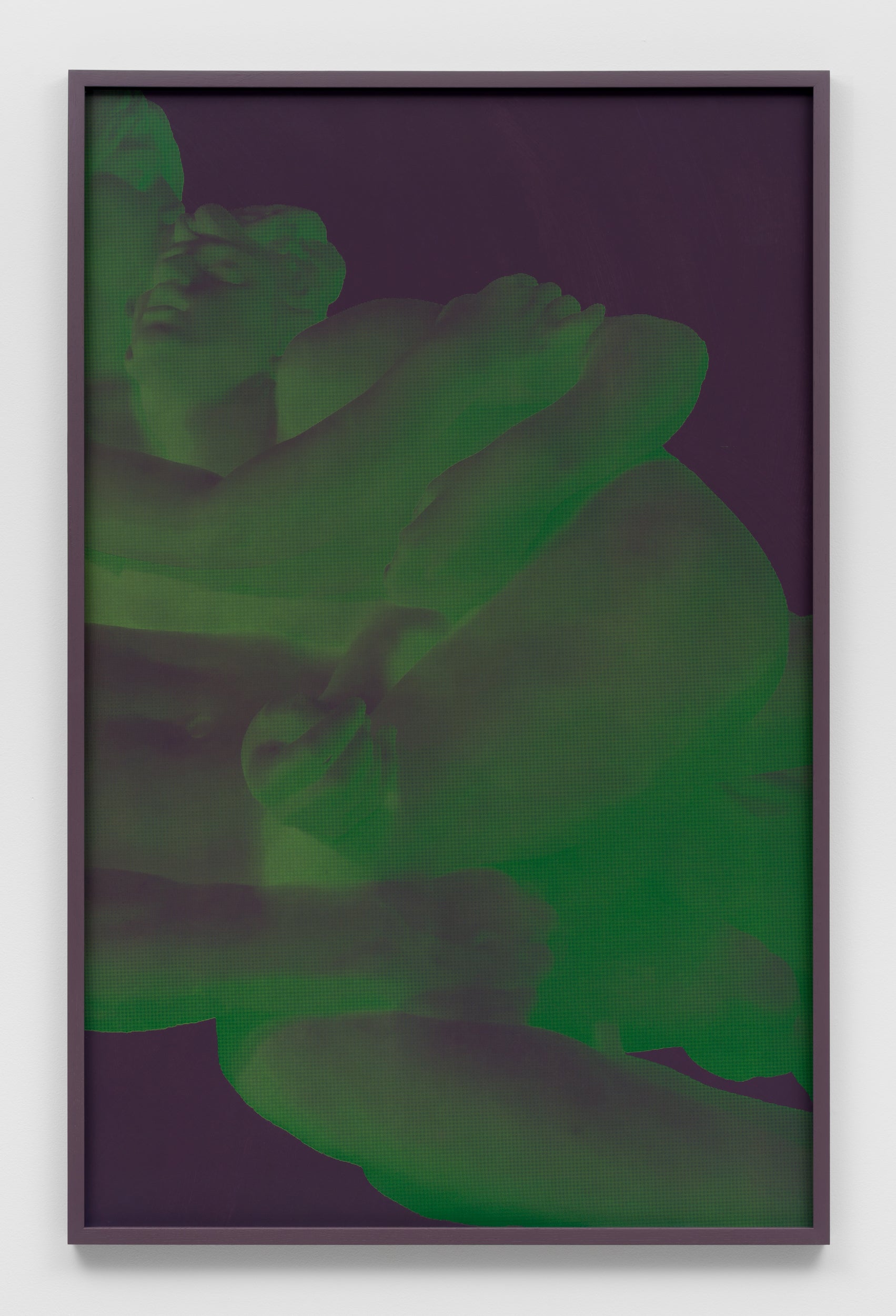 Marie Kølbæk Iversen (b. 1981). “A.M.O.C”, unique screenprint on handpainted Hanhnemühle paper, signed on the back. 142,5 x 92,5 x 4,5 cm. Framed.