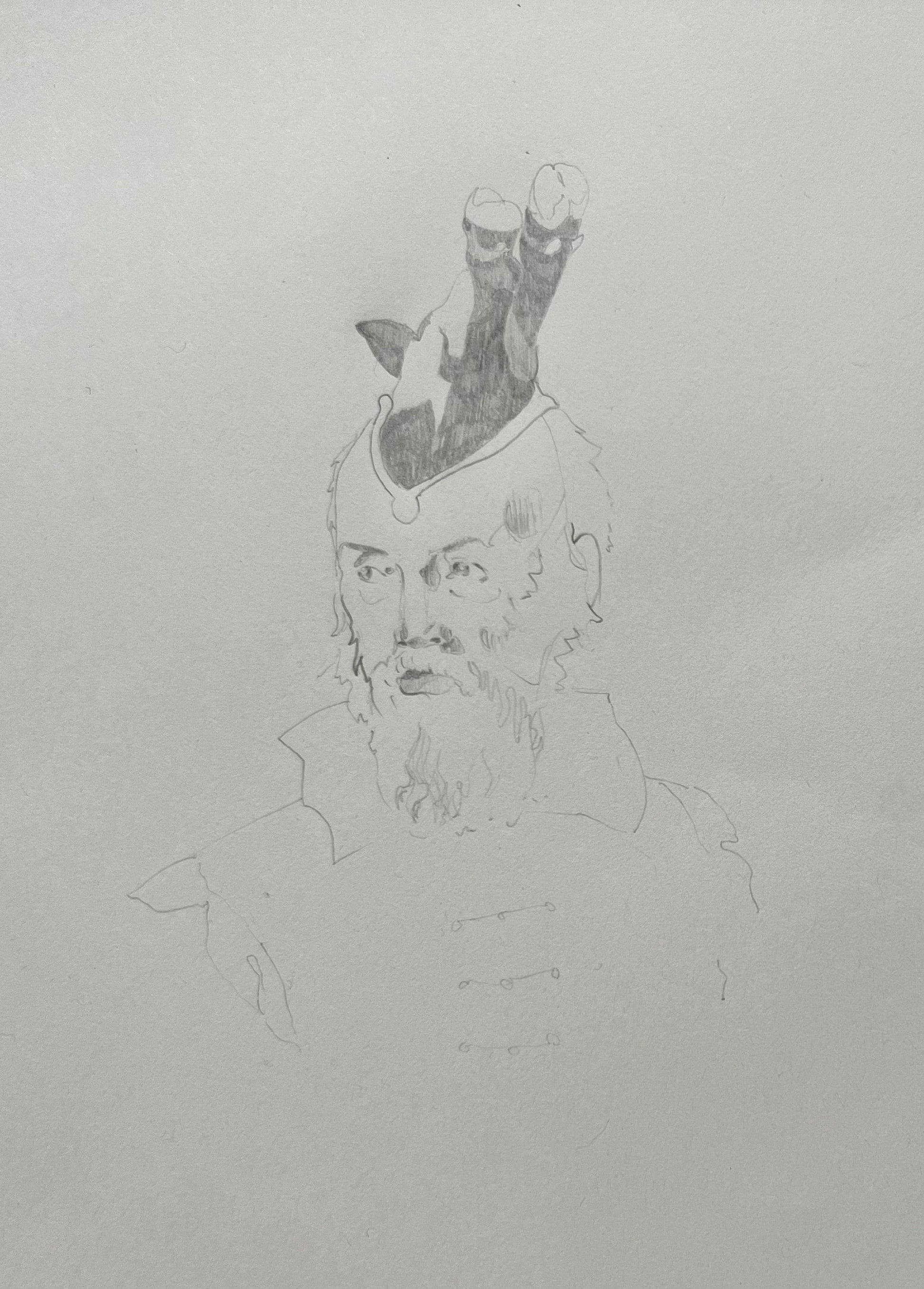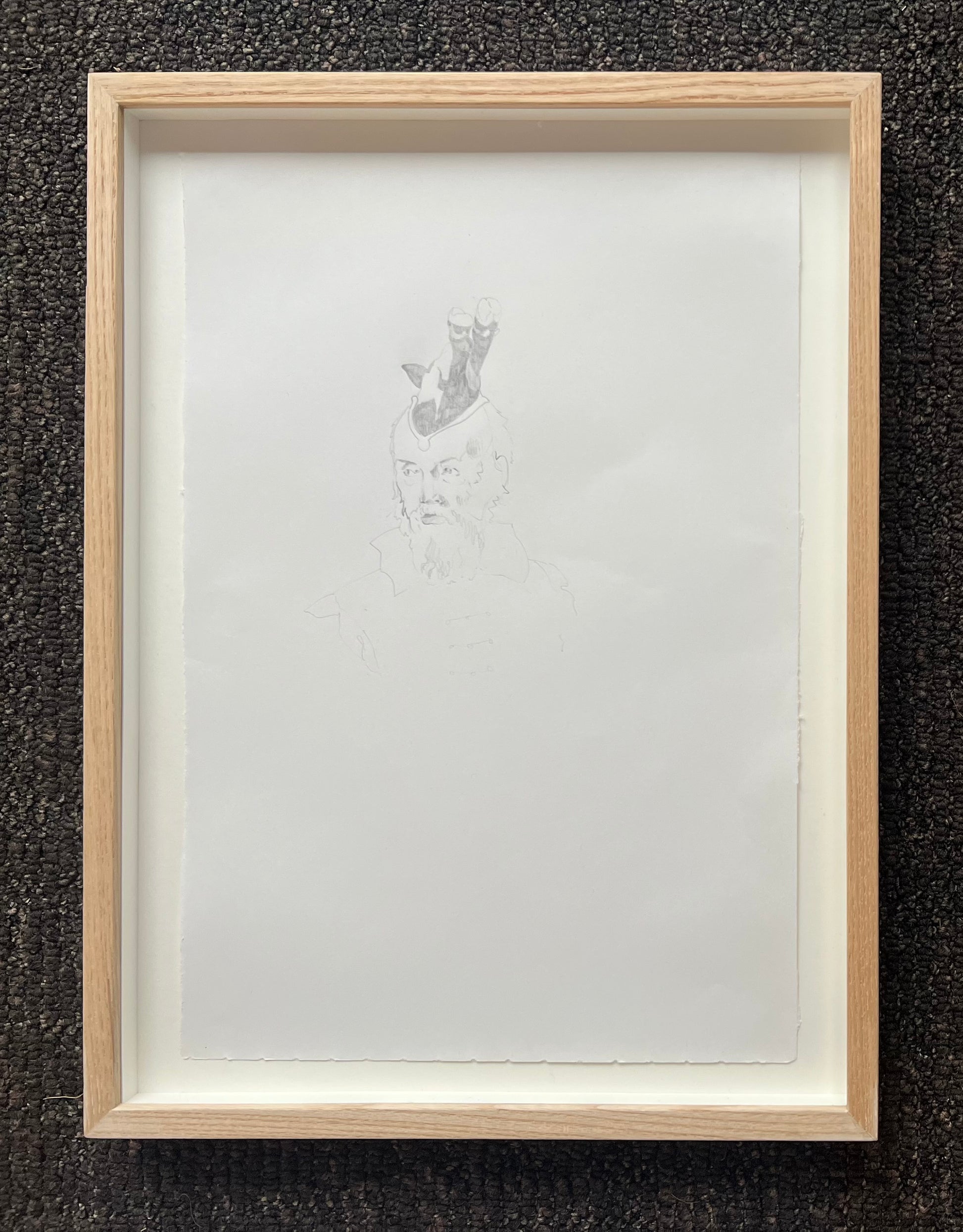 Marie Kølbæk Iversen (b. 1981). “Galileo, den Hvide Ko”, pencil on paper, signed and dated 2018. 31 x 21 (36 x 27) cm. Oakframe.