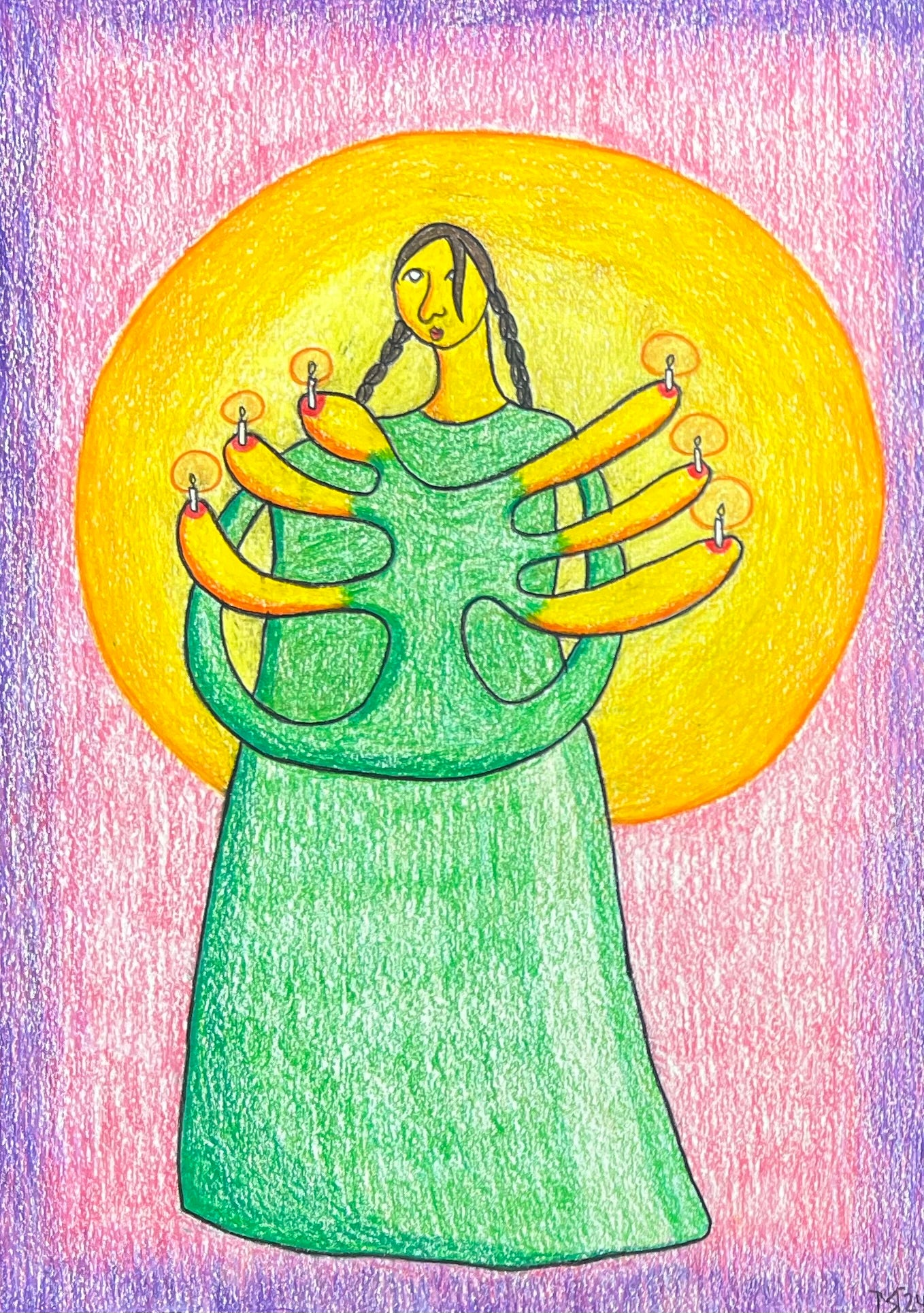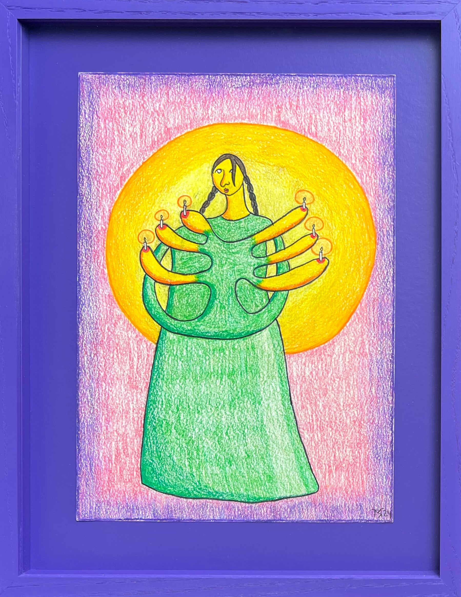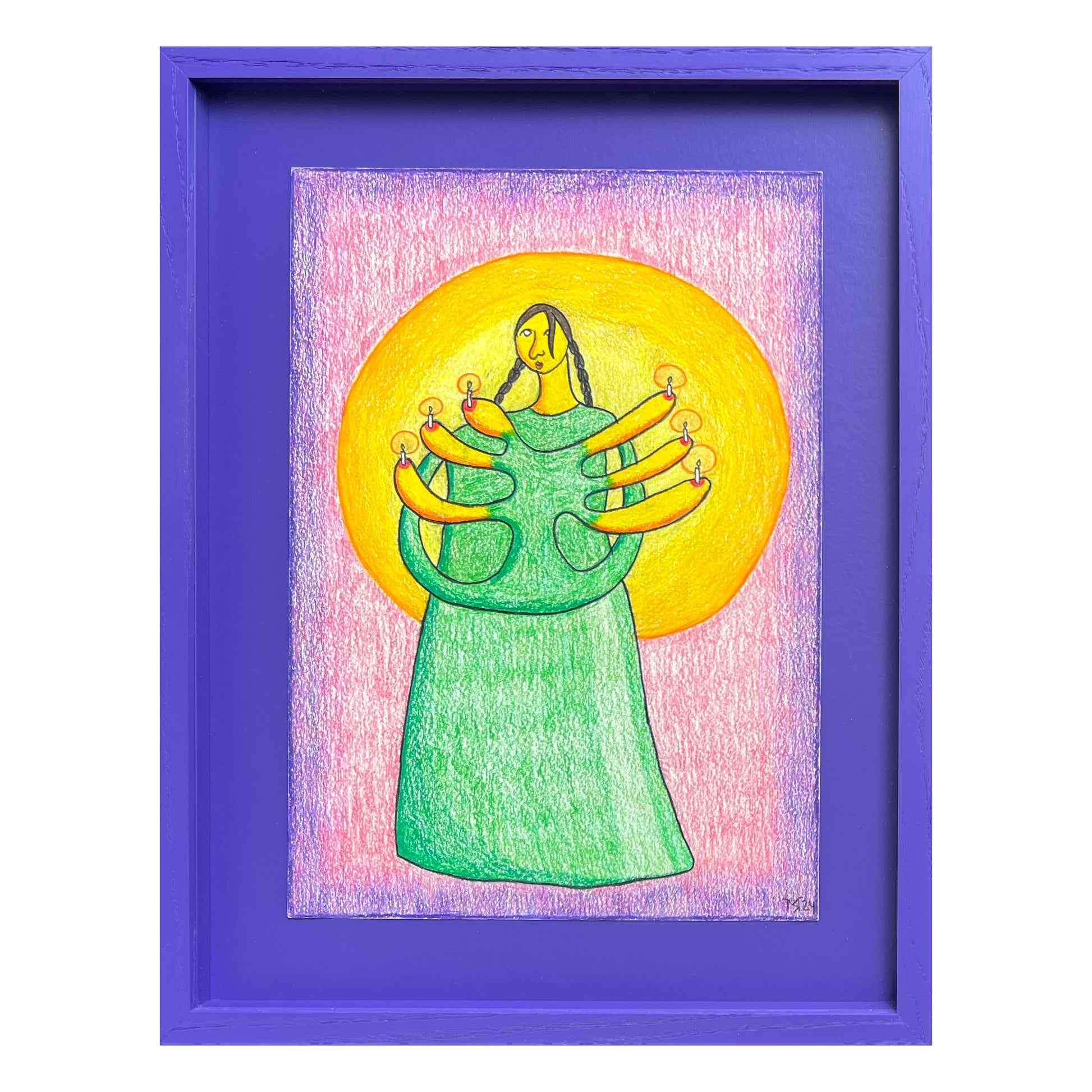 Mette Rasmussen (b. 1993). “Bære lys III”, colored pencil on paper, signed and dated 2024. 29 x 21 (39 x 30) cm. New handpainted wood frame, museumglass.