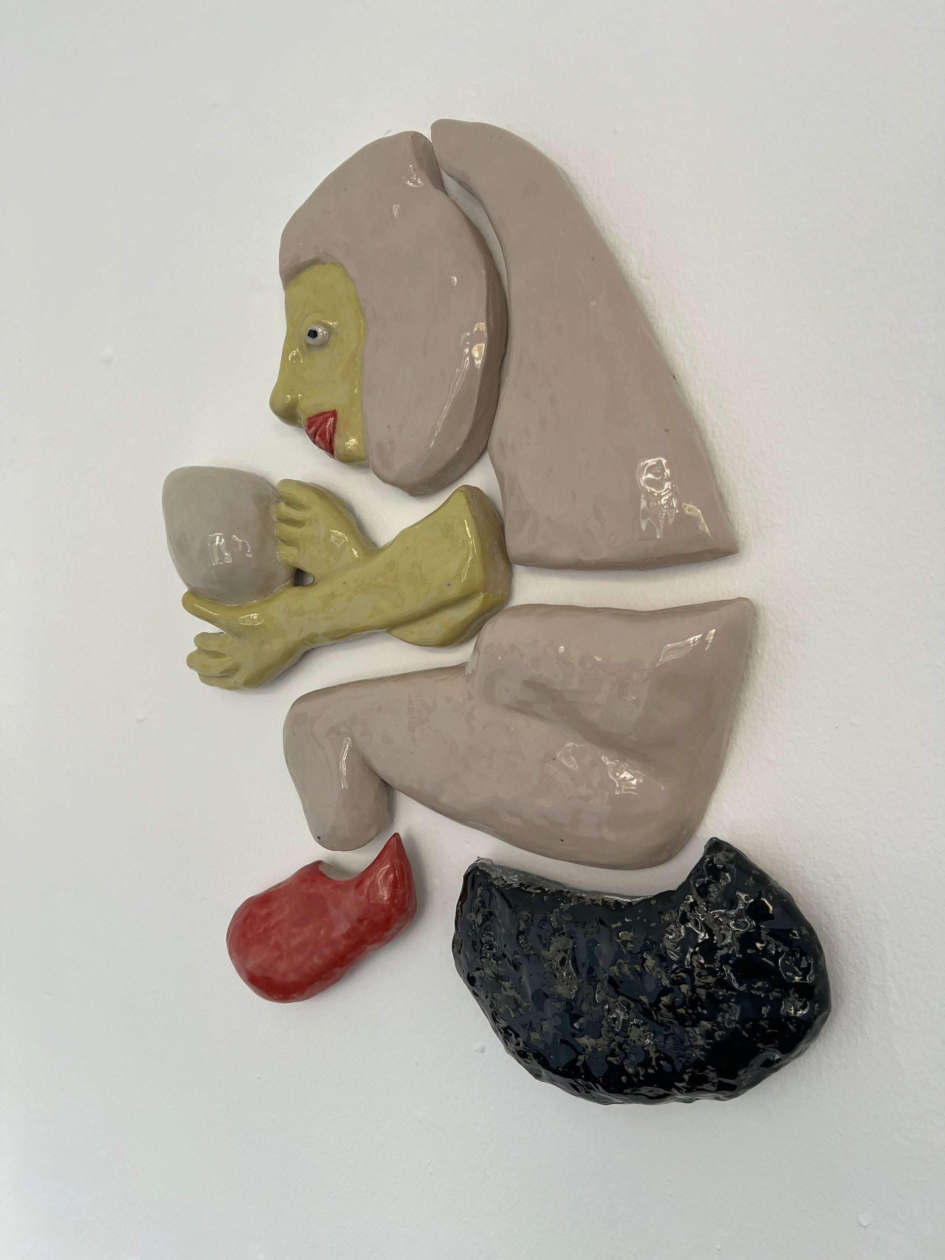 Mette Rasmussen (b. 1993). “The egg”, ceramic relief in 6 parts, signed. 65 x 50 cm.