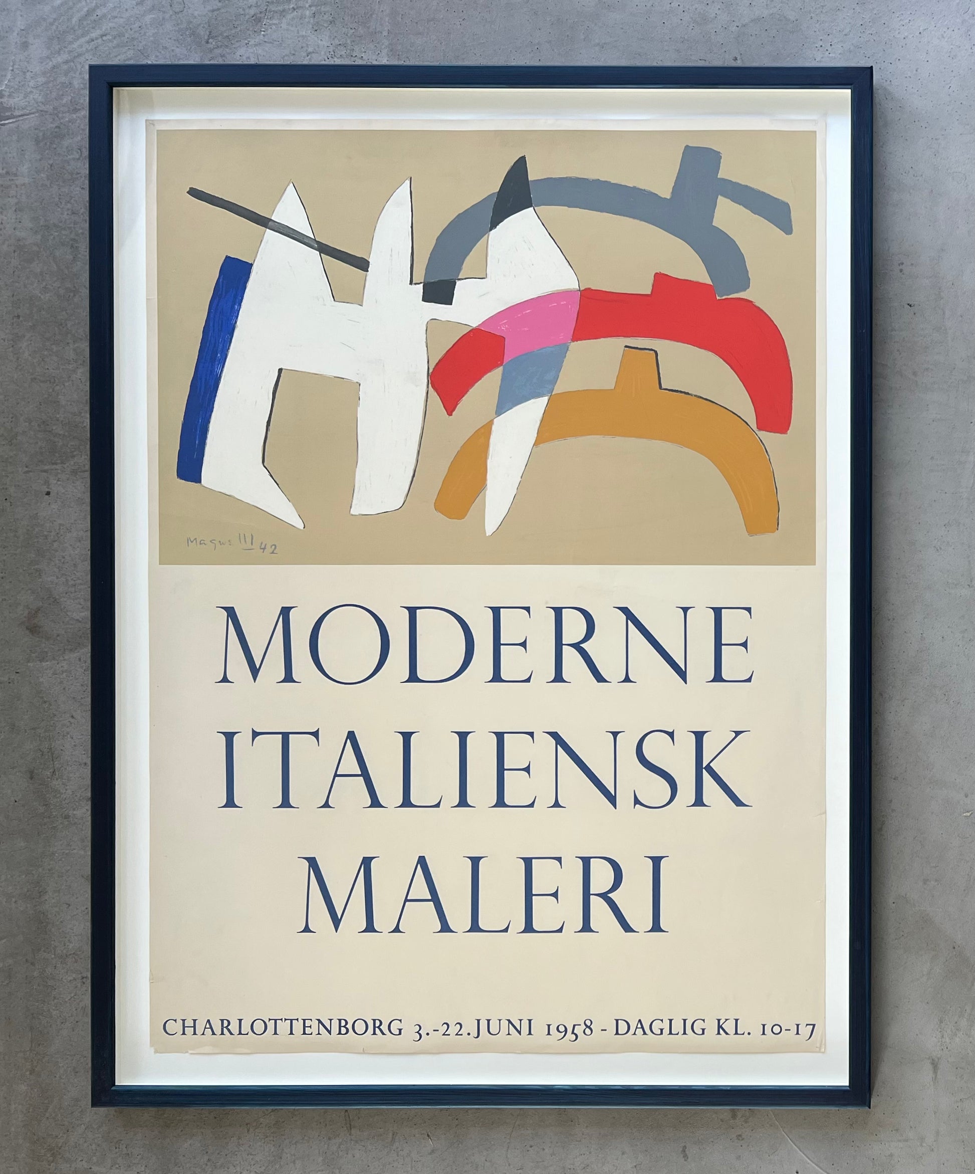 “Moderne Italiensk Maleri, Charlottenborg, 1958”, exhibition poster, screen print, with screenprint after Alberto Magnelli. 84 x 61 (94 x 70) cm. New handpainted frame, acid free mounting.