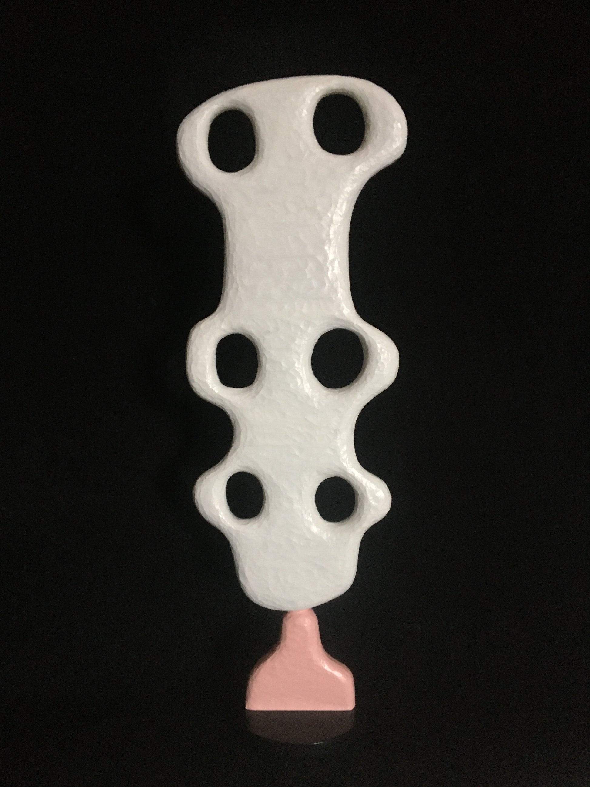 Nicholas Imms (b. 1968). “Bewildered form”, sculpture of plywood, signed. H. 42 cm.