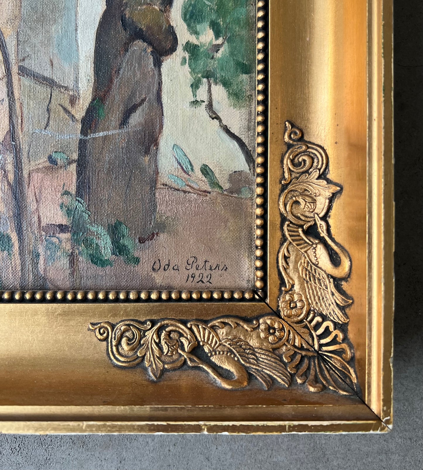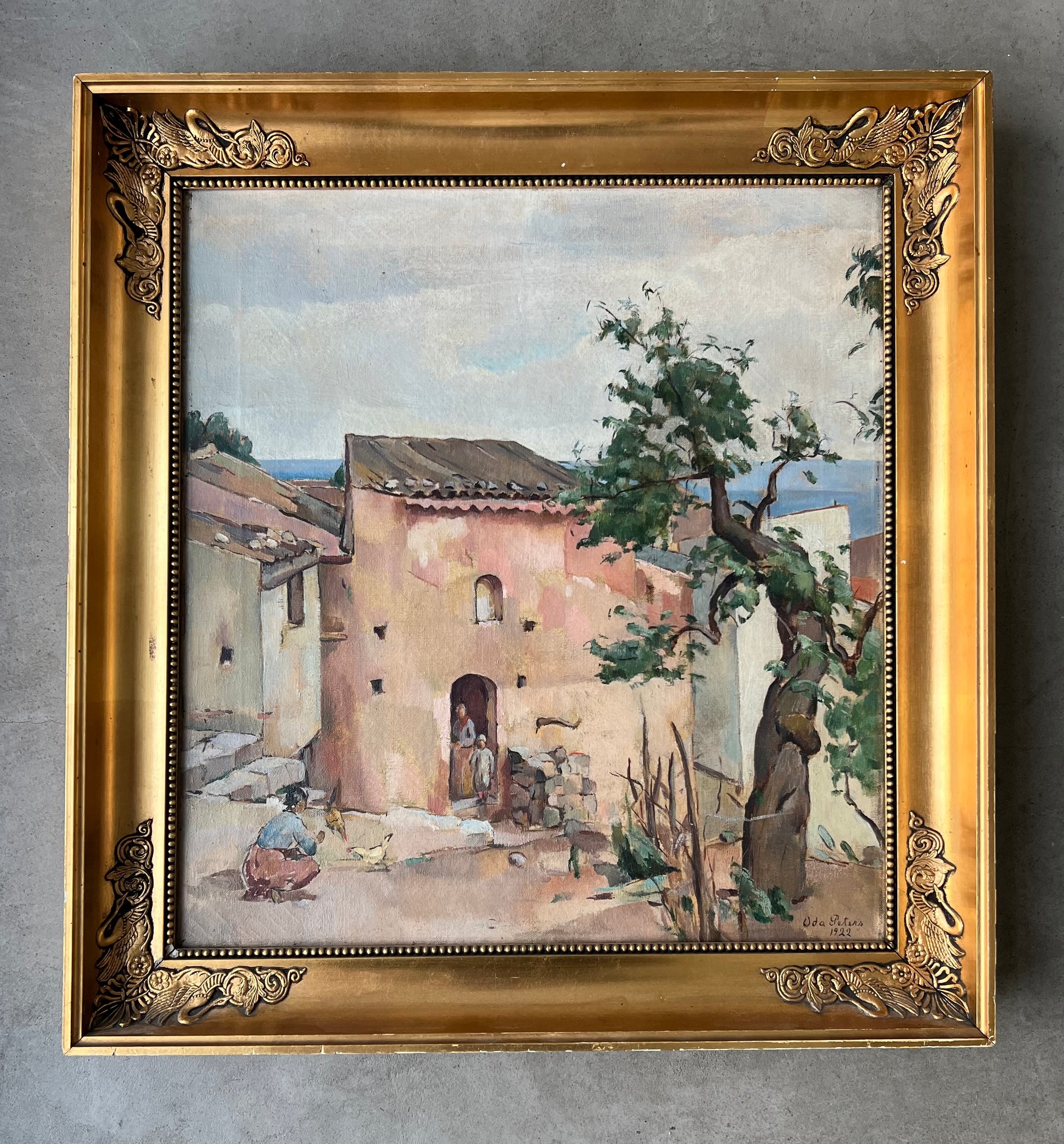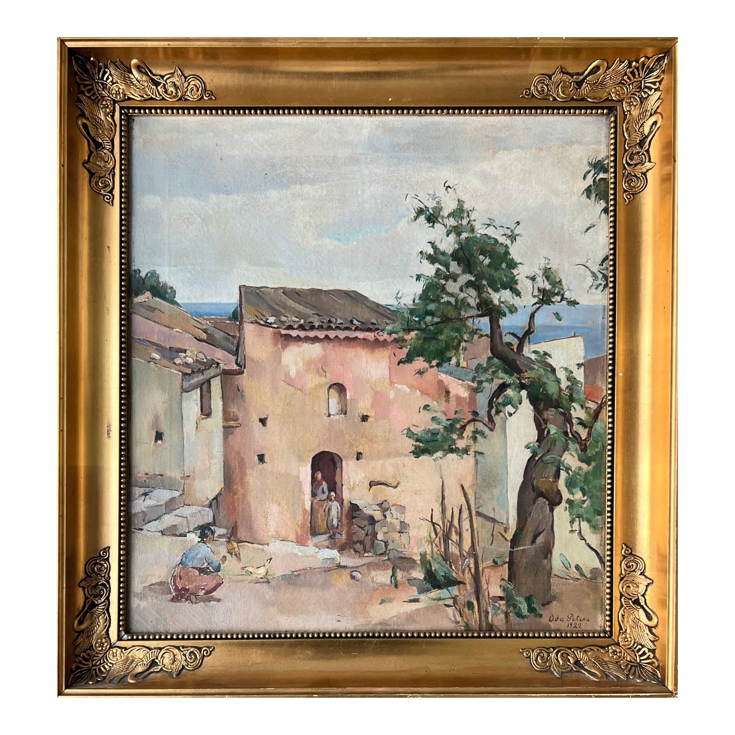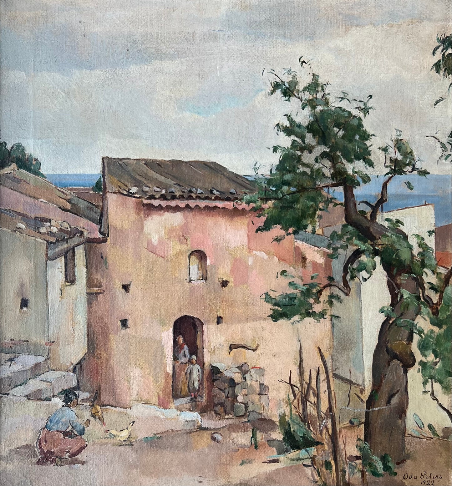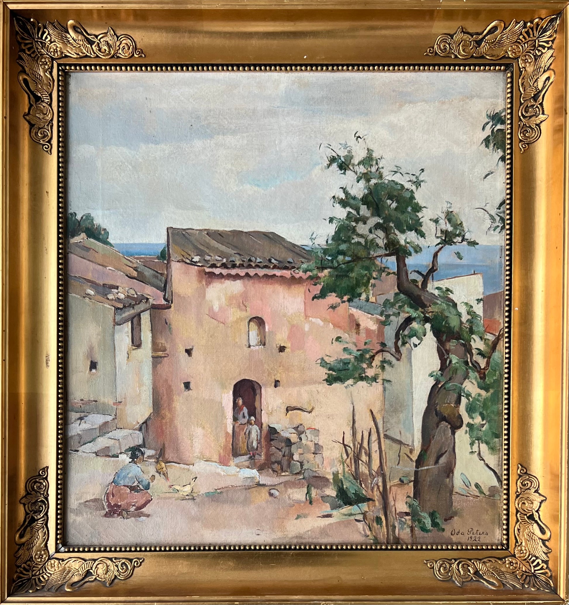 Oda Peters (1895-1987). Italian village, oil on canvas, signed and dated 1922. 49 x 45 (58 x 54) cm.