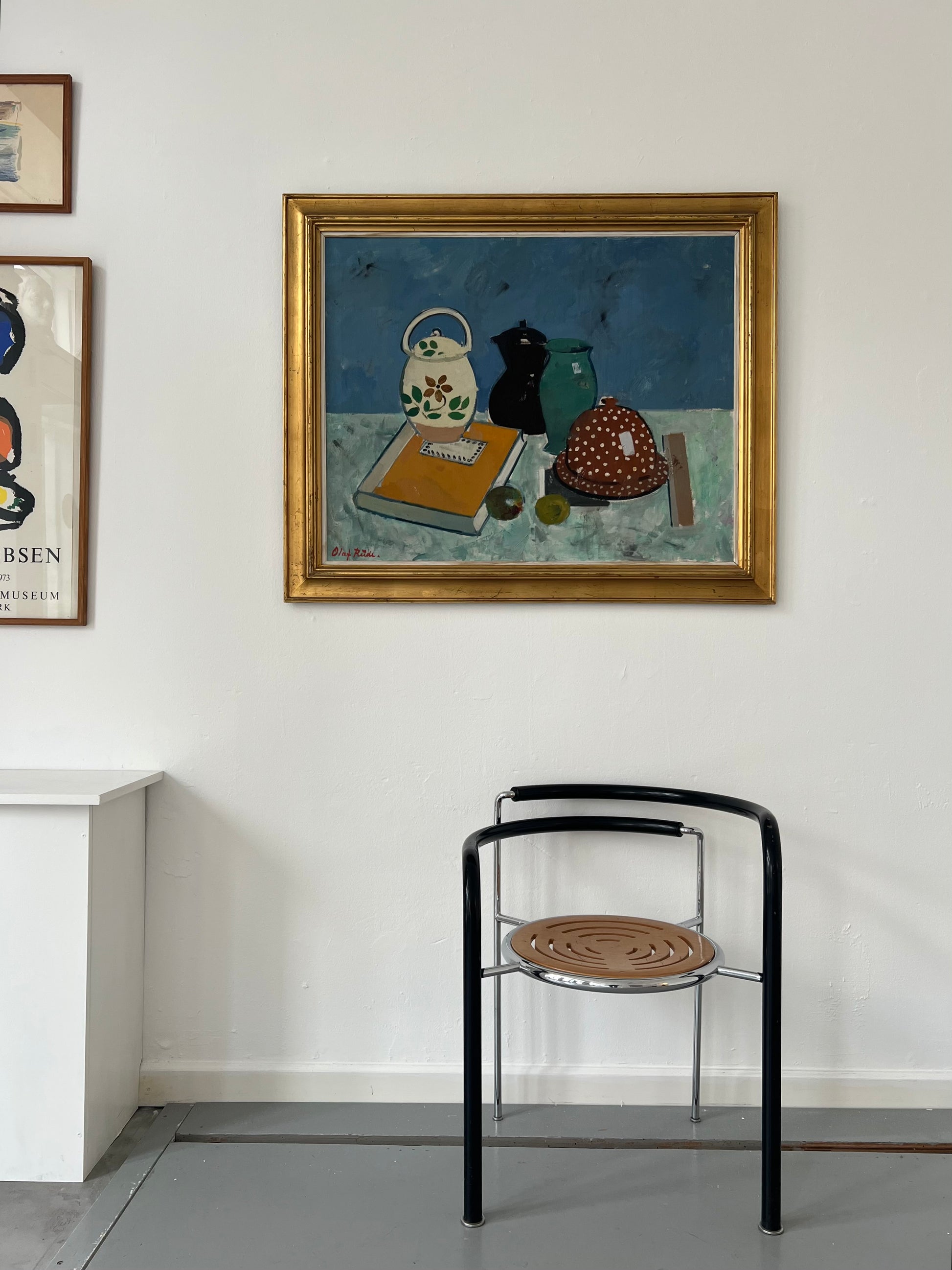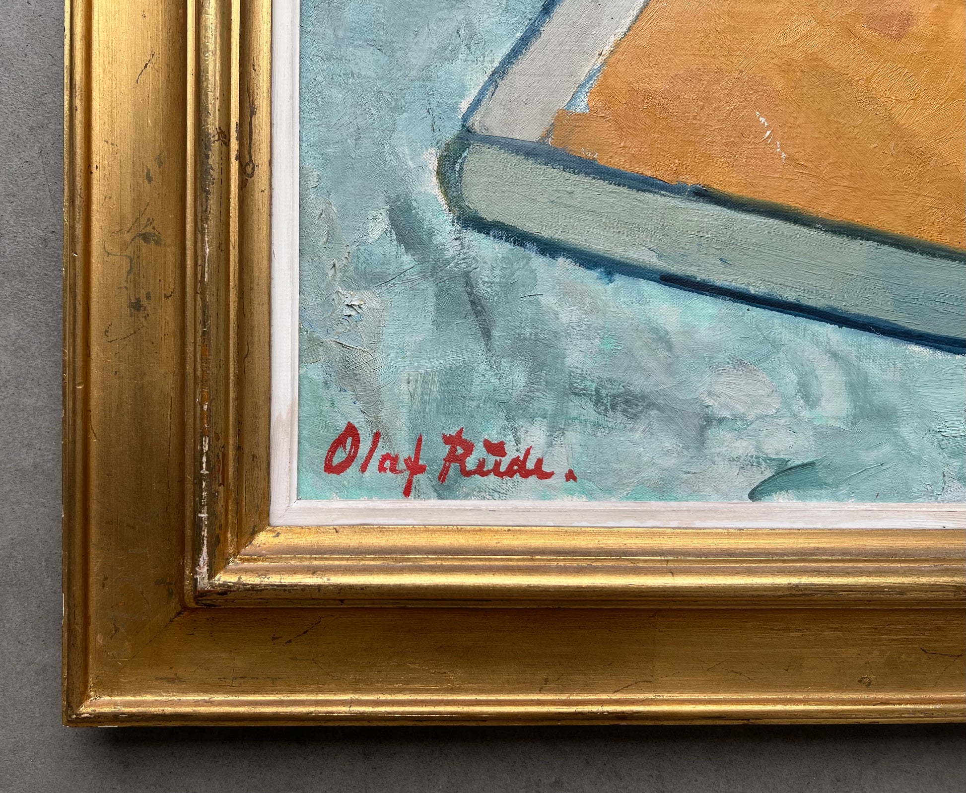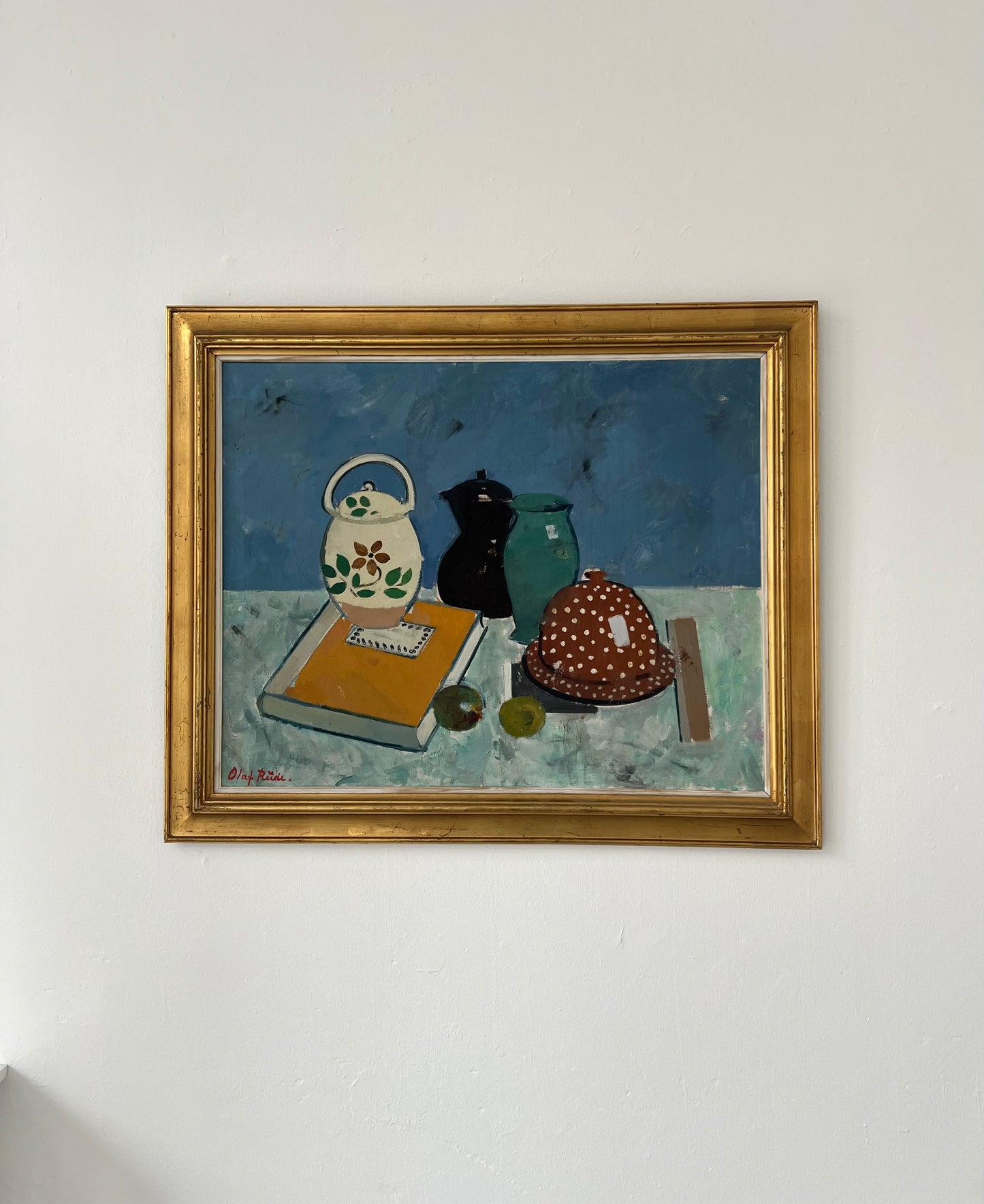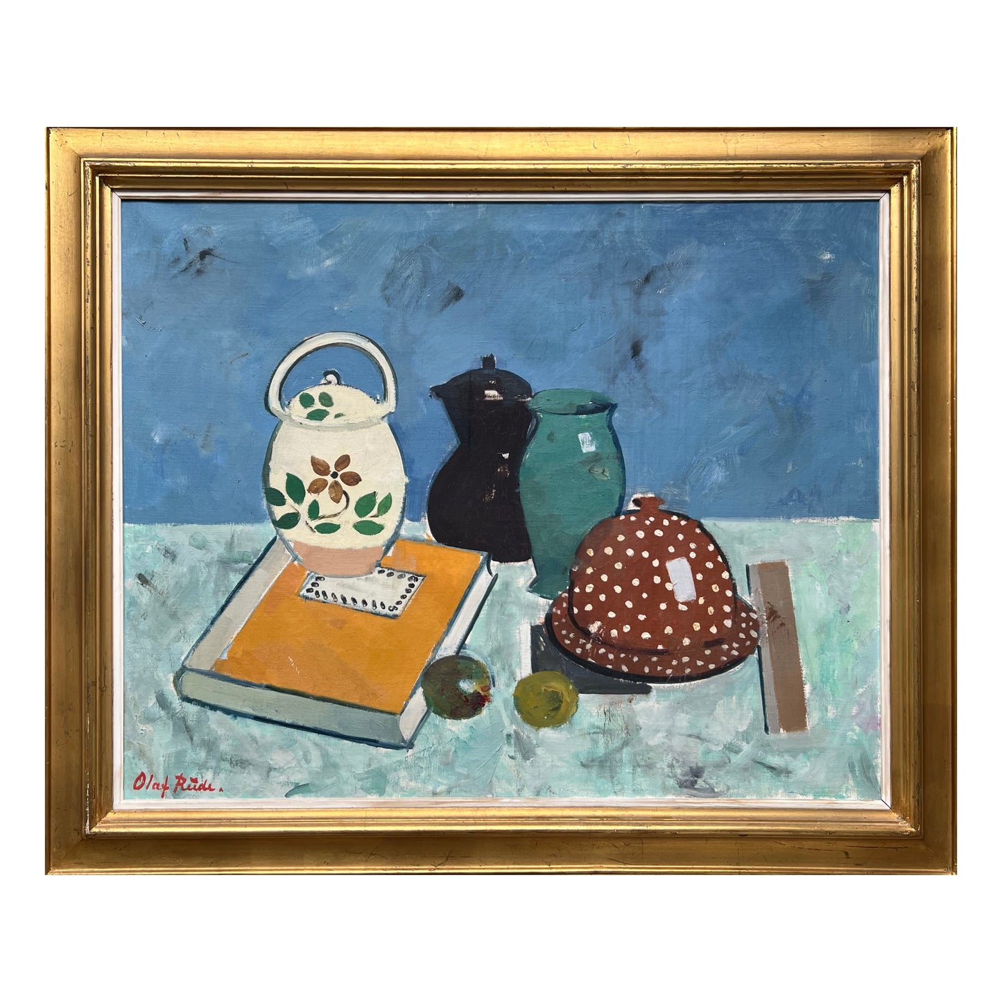 Olaf Rude (1886-1957). Stillife with book and ceramics, oil on canvas, signed Olaf Rude. 73 x 93 (91 x 109) cm.