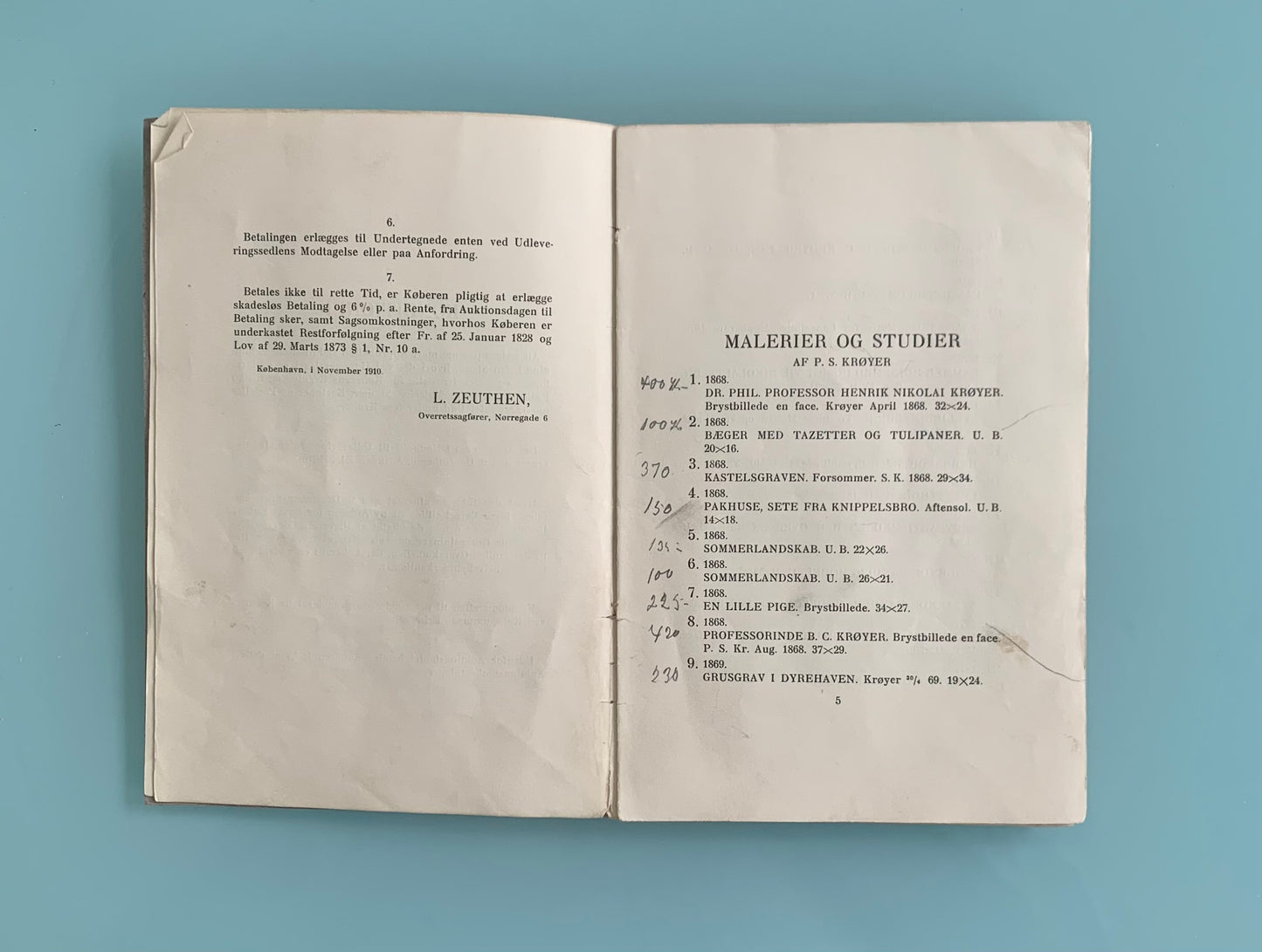 P. S. Krøyer. Catalogue from the artists estate auction, 1910