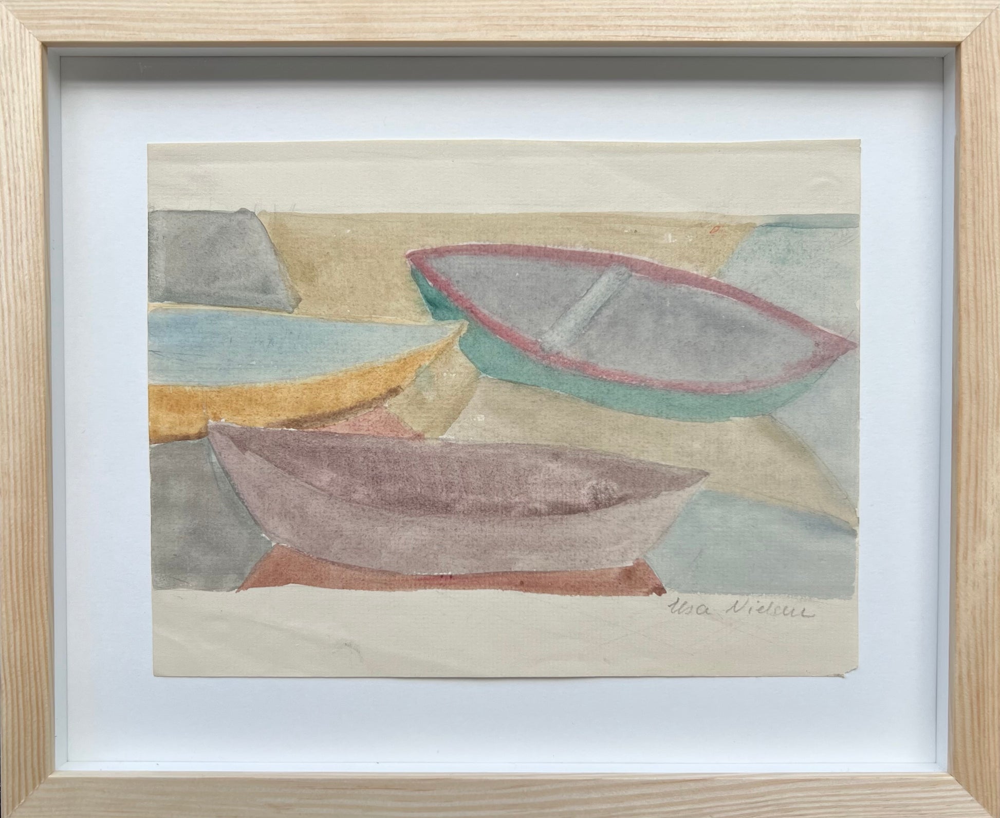 Elsa Nielsen (1923-2011). Study of boats, watercolour on paper, signed. 17 x 22 (25 x 30) cm. New pine frame, museumglass.
