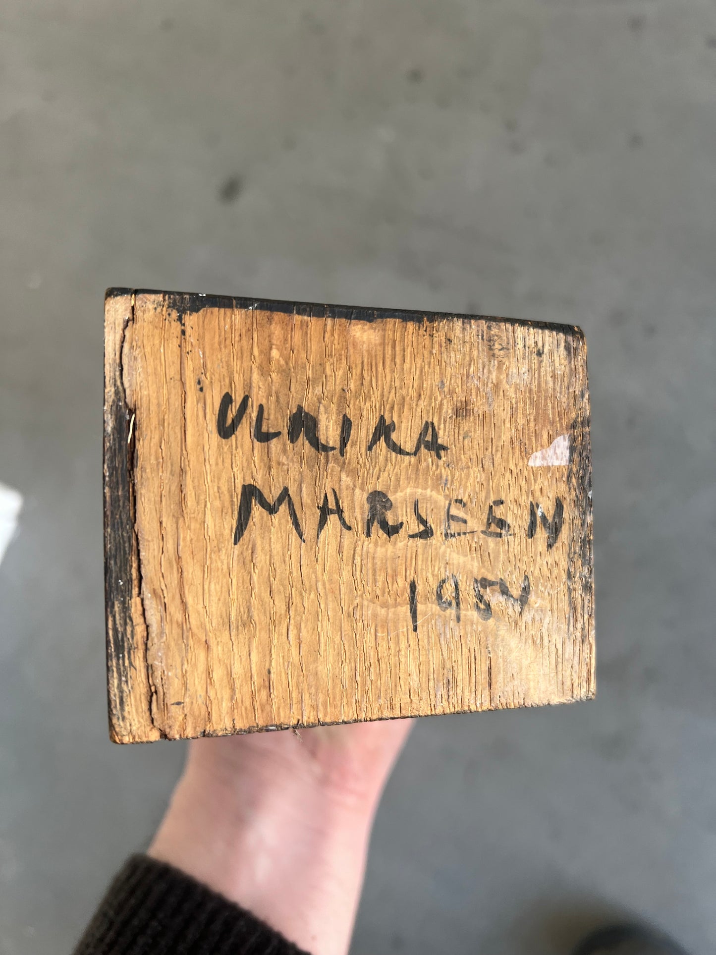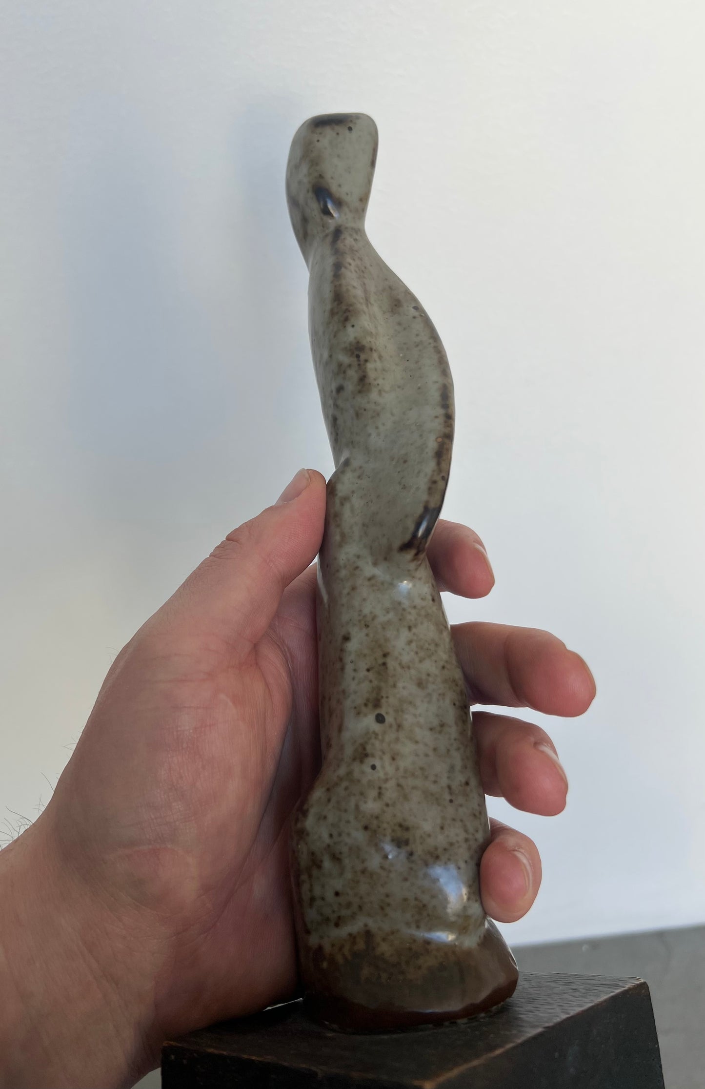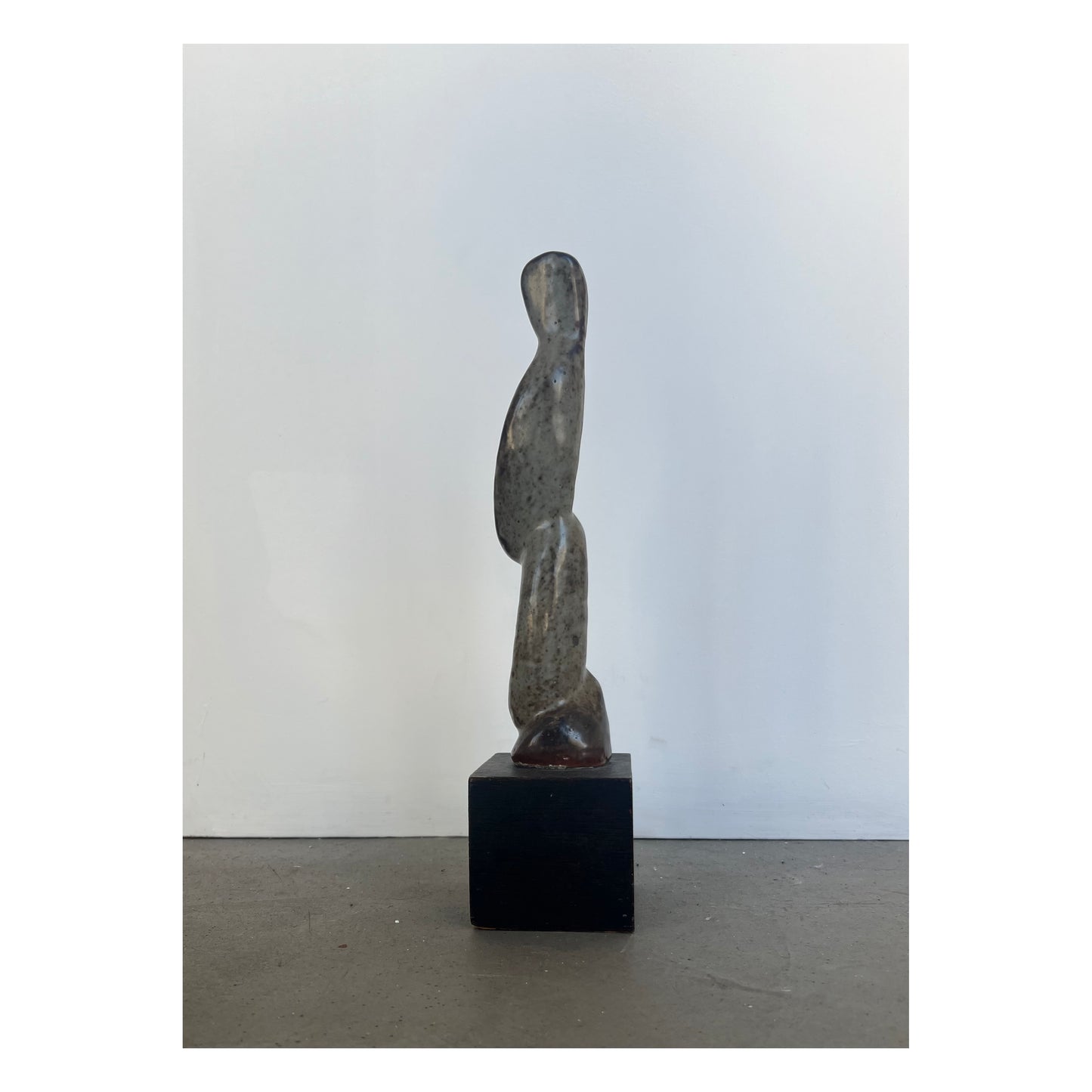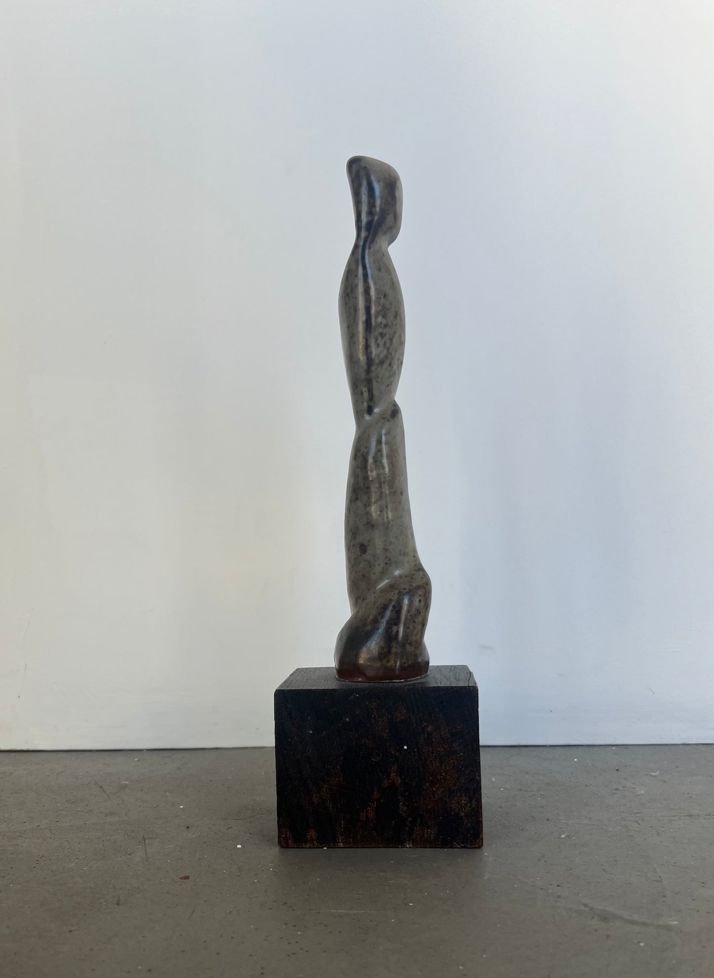 Ulrika Marseen (1912-2007). Unique sculpture of stoneware mounted on wood base, signed and dated Ulrika Marseen 1954. H. 26/33,5 cm.
