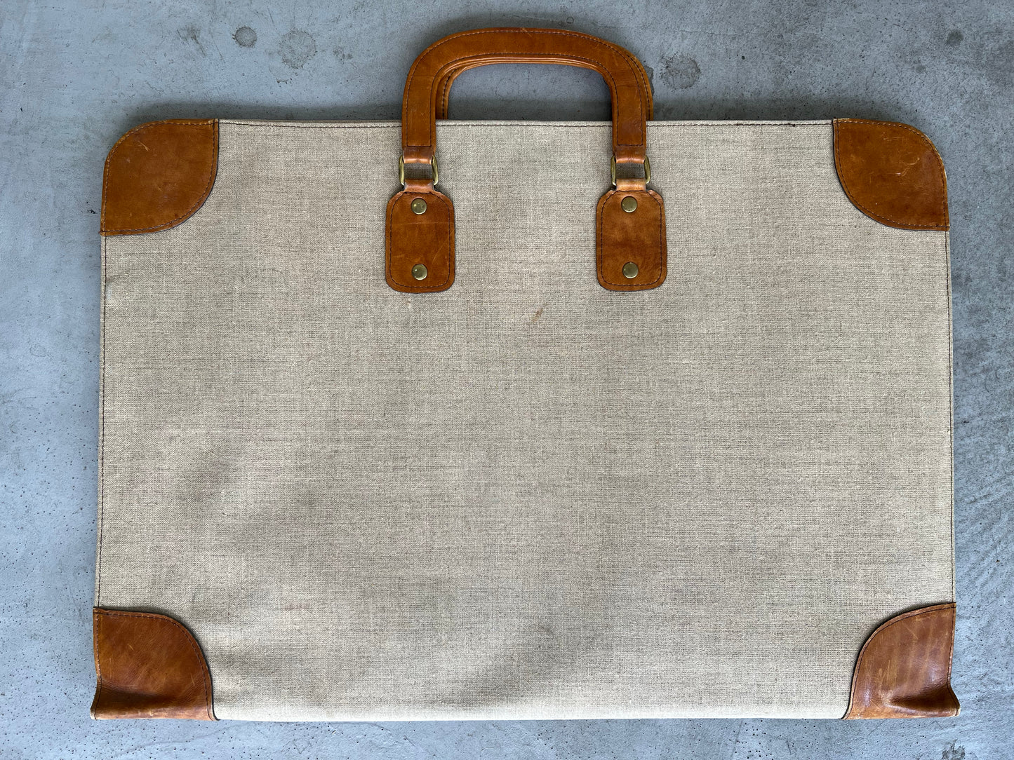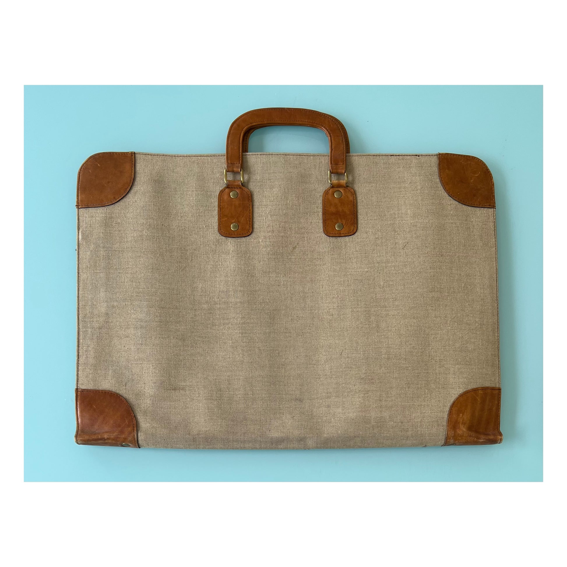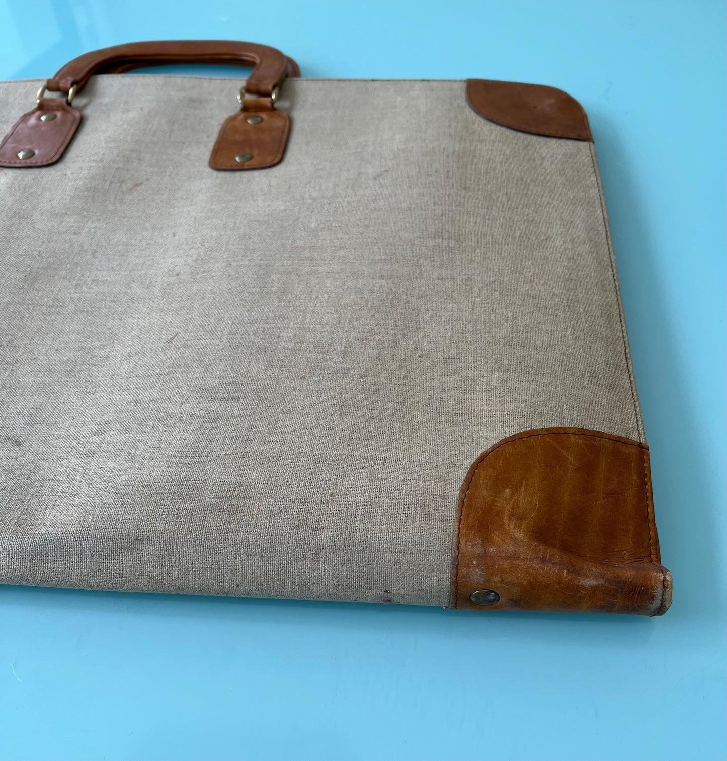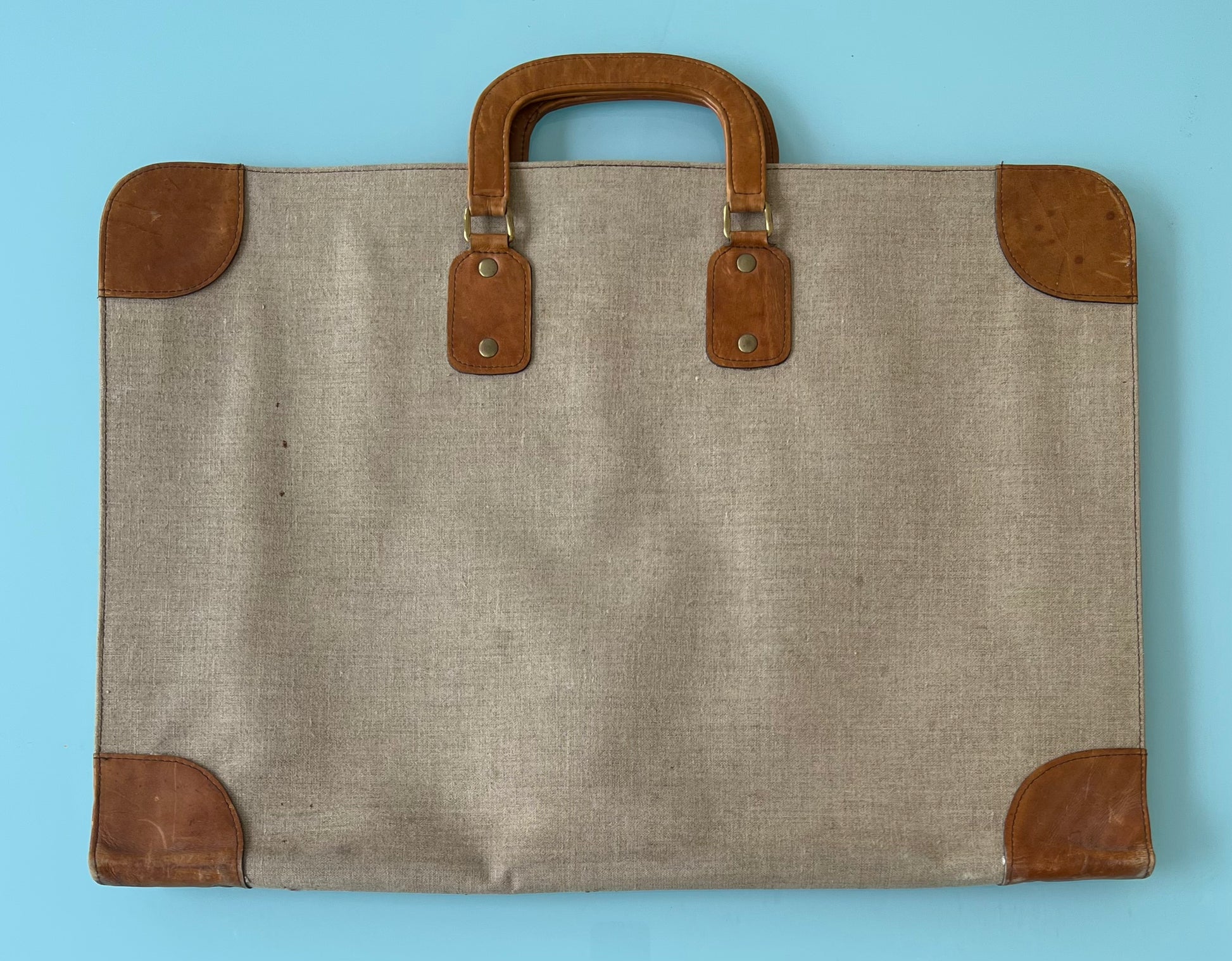 Vintage artists case for graphics, canvas and patinated leather, brass details. Inside with two small pockets. 50 x 70 cm. Small spots and some signs of use.